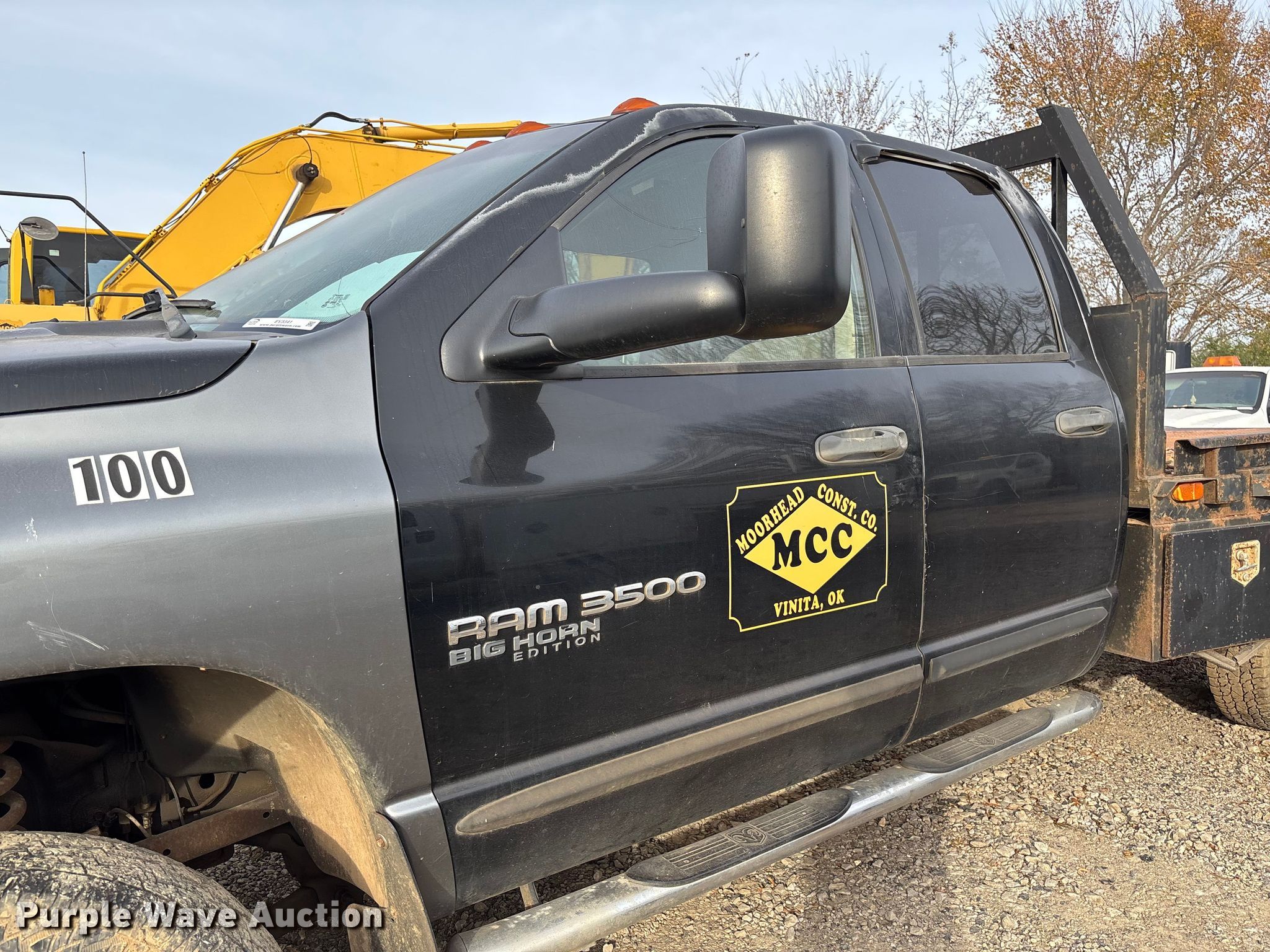 This 2006 Dodge Ram 3500 Quad Cab flatbed pickup truck will sell to the highest bidder regardless of price.