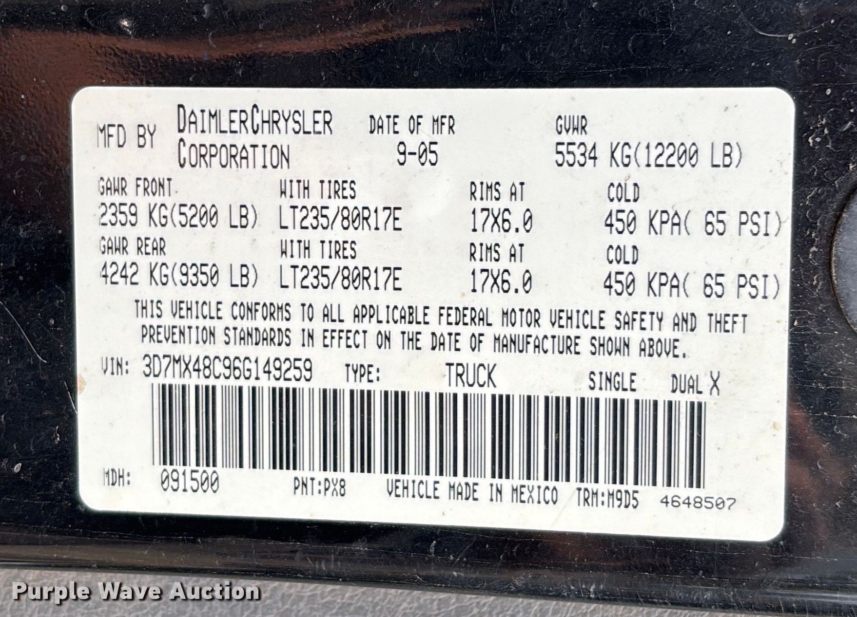Purple Wave is selling a used 3/4 or 1 Ton Pickup or Van in Oklahoma. This item is a 2006 Dodge Ram 3500 Quad Cab flatbed pickup truck with the following: Miles: 246,834 on odometer, VIN: 3D7MX48C96G149259