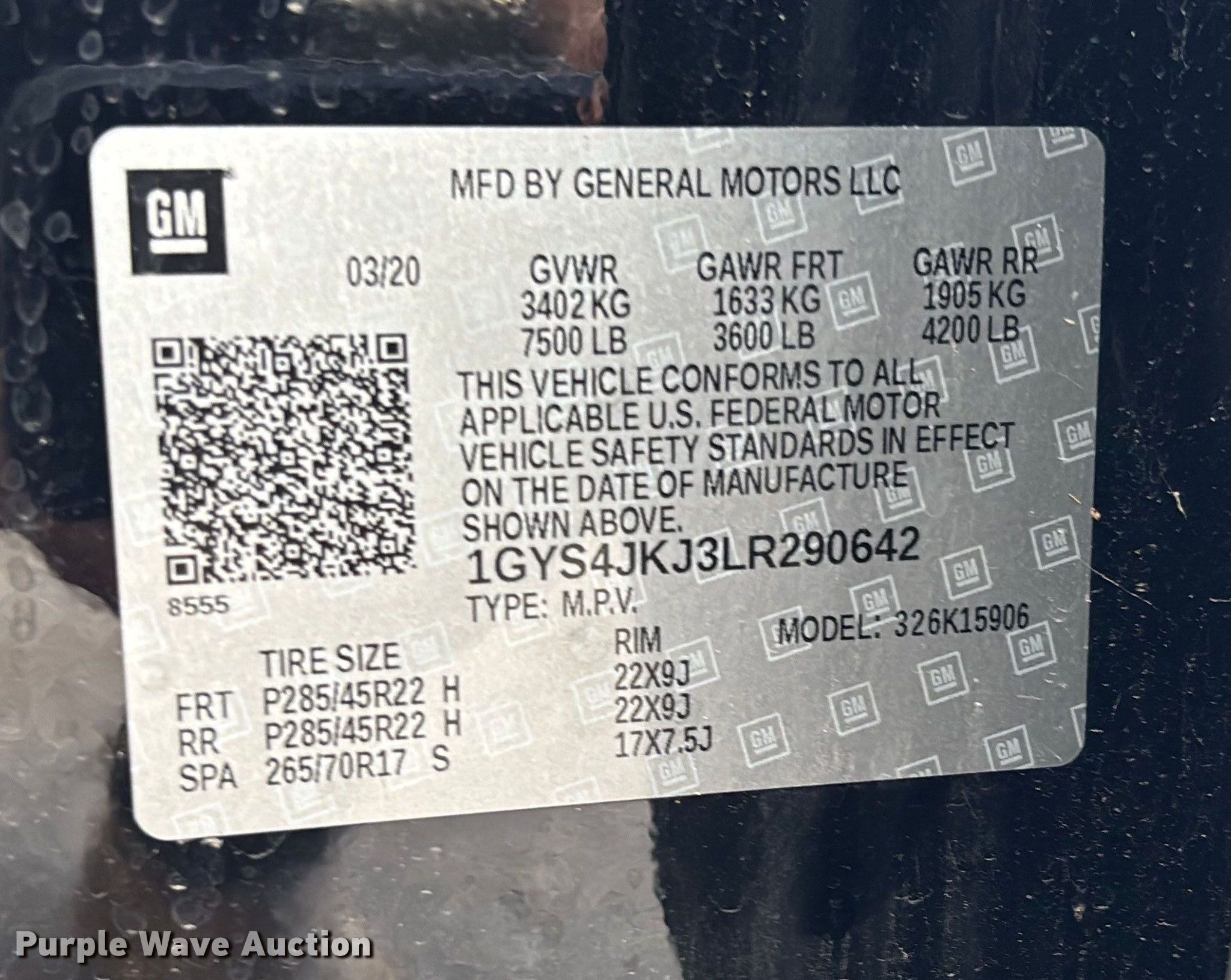 - VIN: 1GYS4JKJ3LR290642