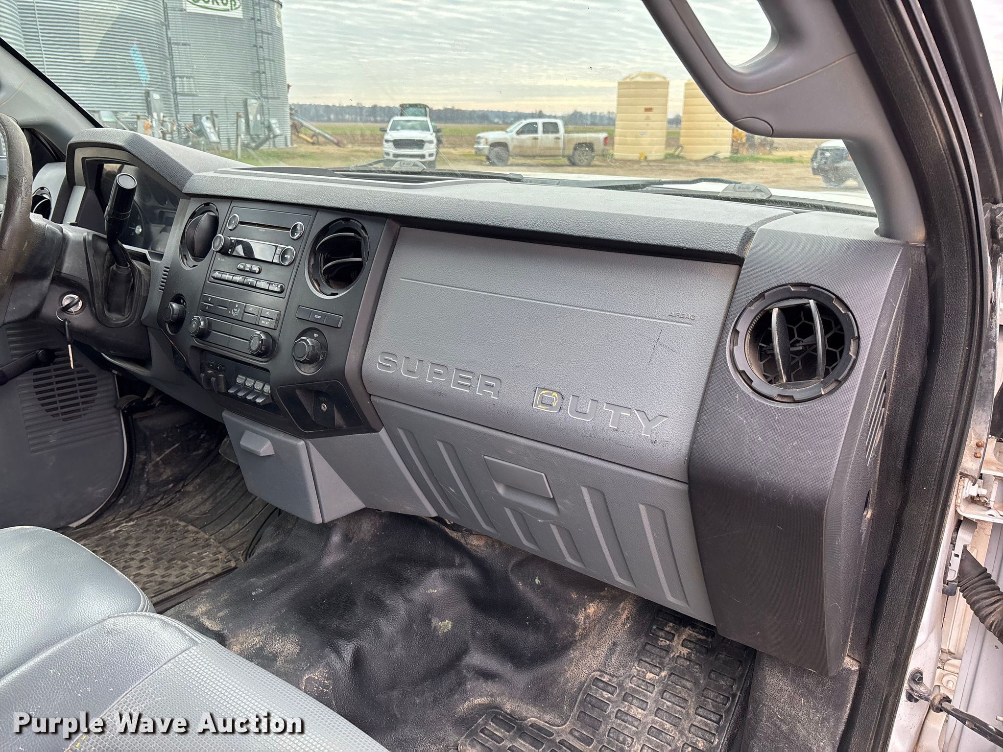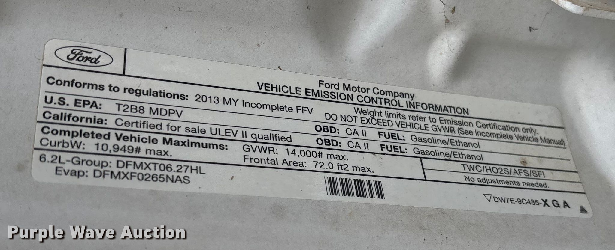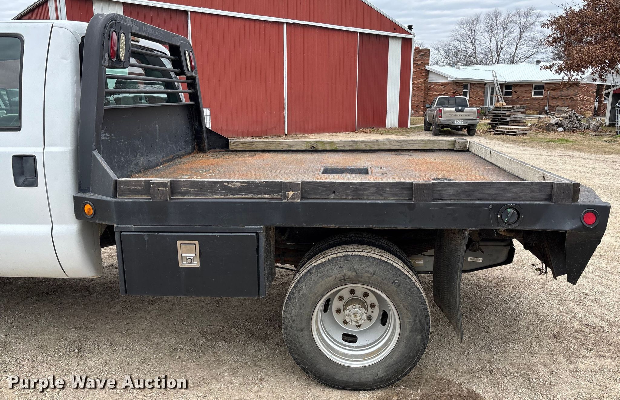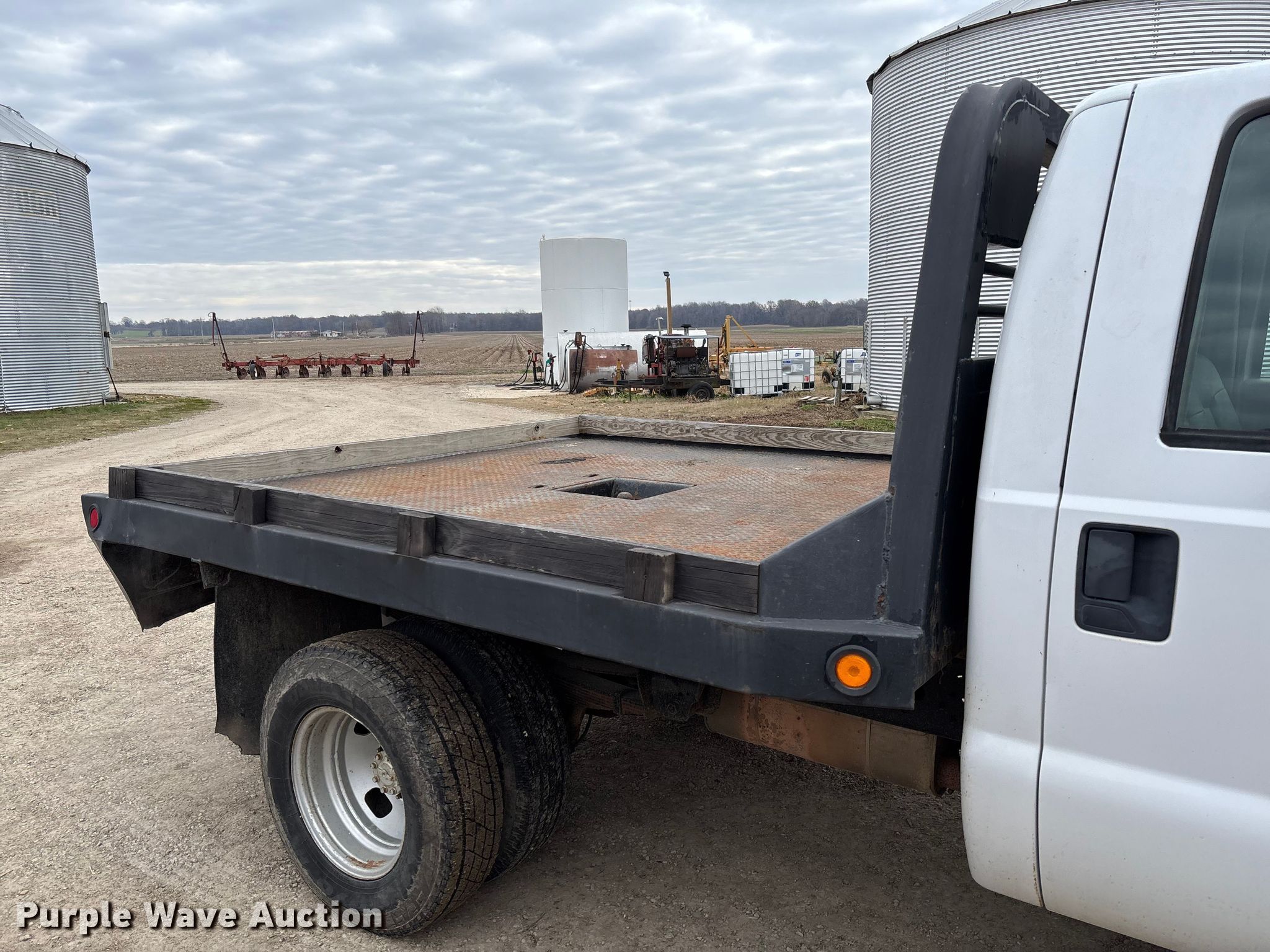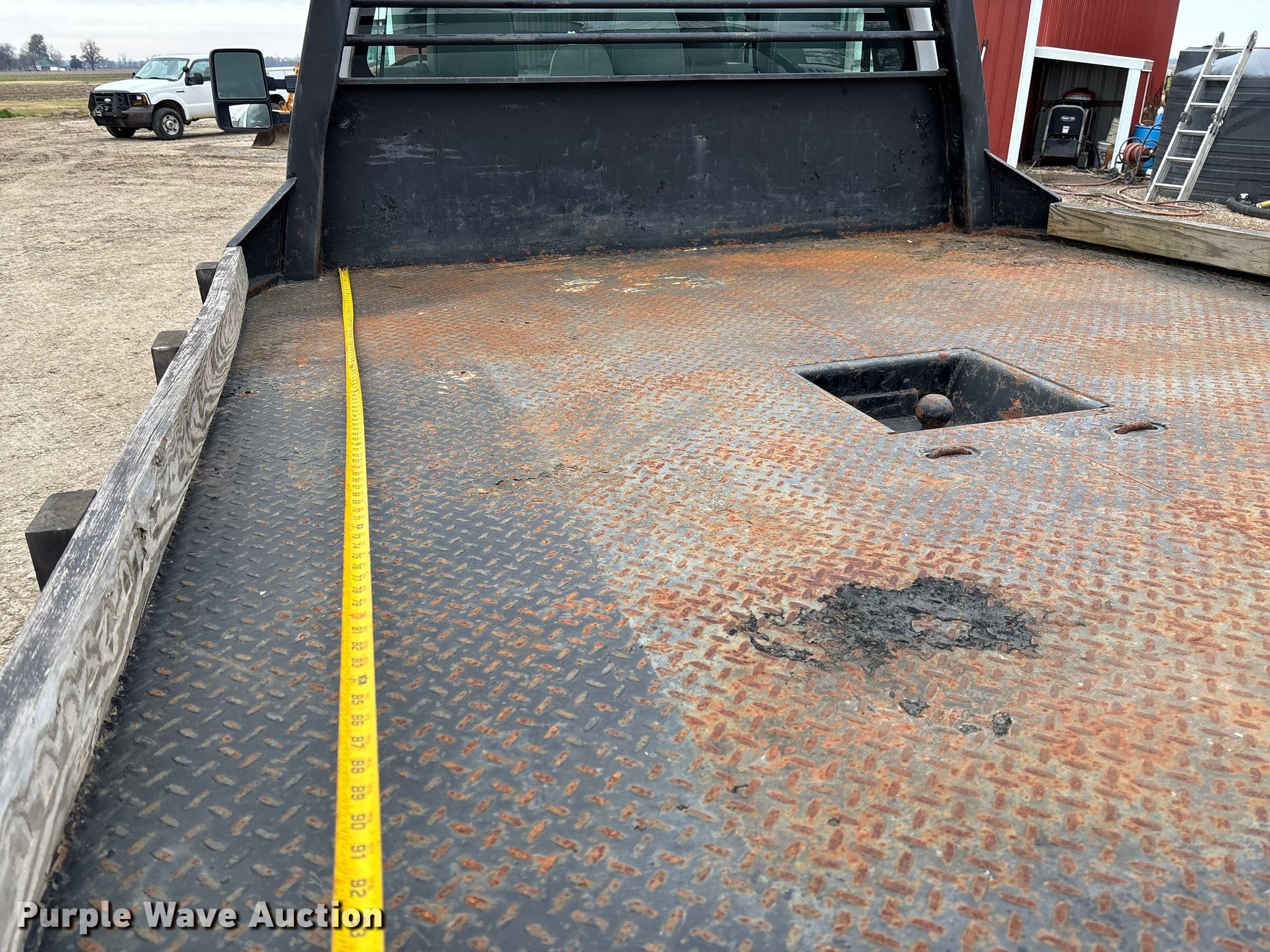 2013 Ford F350 Super Duty Crew Cab flatbed pickup truck. Miles: 153,897 on odometer, Hours: 1,795 on meter, VIN: 1FD8W3H6XDEA40182. Engine Displacement: 6.2L, Cylinders: 8, Fuel type: Gas. Transmission Automatic, Four wheel drive. Interior AC, Heat, Cruise control, Auxiliary controls, Brake controller. Features Bed Flatbed, CM, Length: 9' 4", Width: 7' 10", Hitch: Gooseneck. Tires Size: 235/80R17. Notes Dash warning indicator: Check engine. Missouri title. Title distribution may be delayed up to 14 days from verification of funds. Allen Tesreau Farms. Campbell, MO 63933