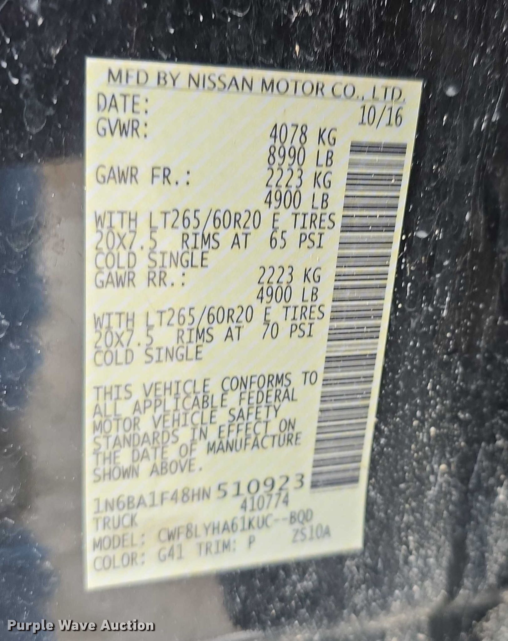 Purple Wave is selling a used 1/2 Ton Pickup or Van in Kansas. This item is a 2017 Nissan Titan XD Platinum Reserve Crew Cab pickup truck with the following: Miles: 94,865 on odometer, VIN: 1N6BA1F48HN510923