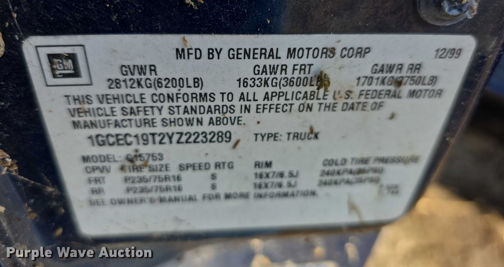 - VIN: 1GCEC19T2YZ223289