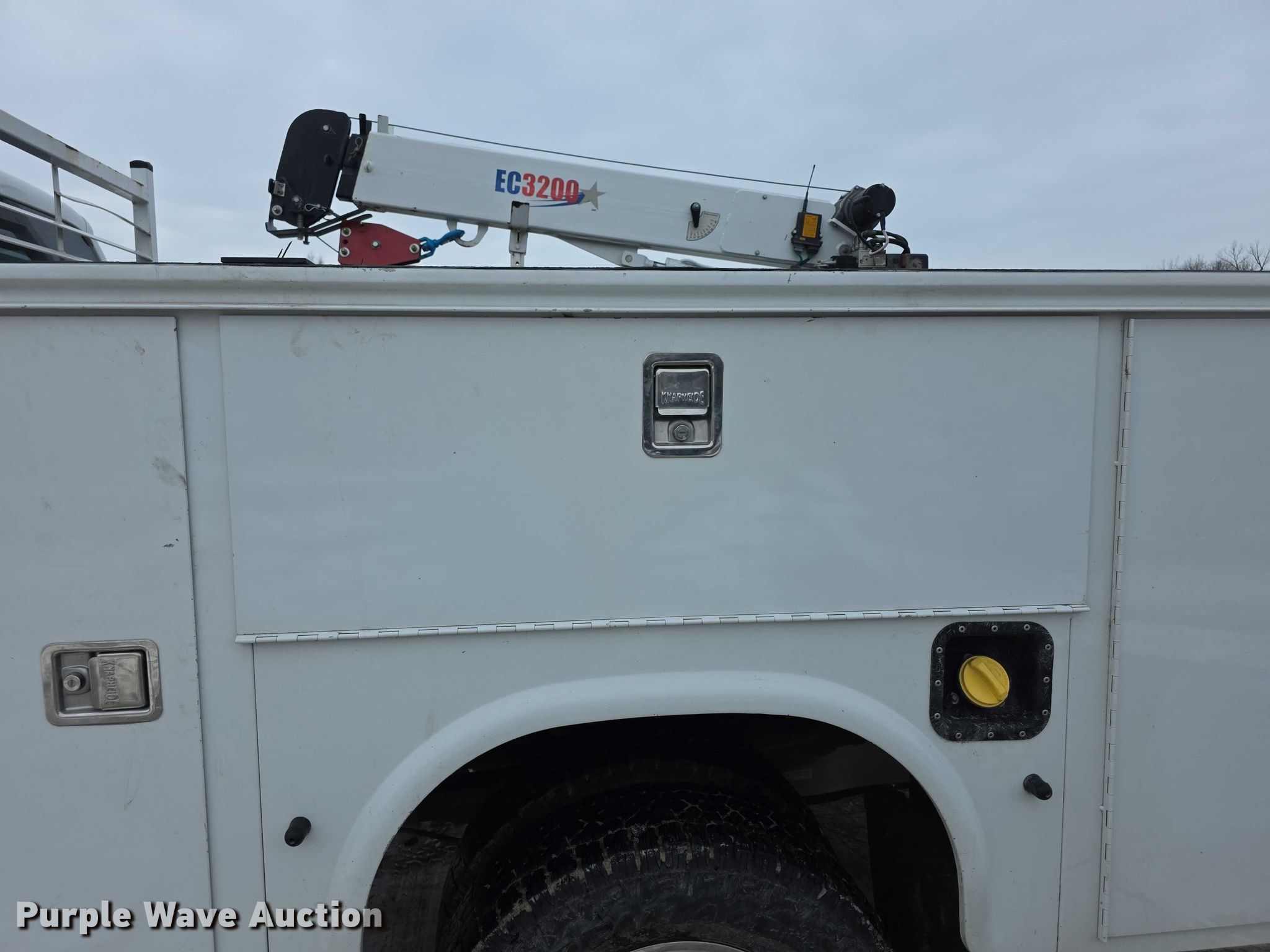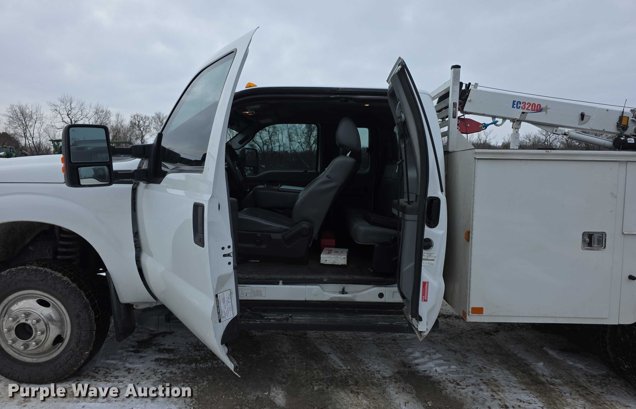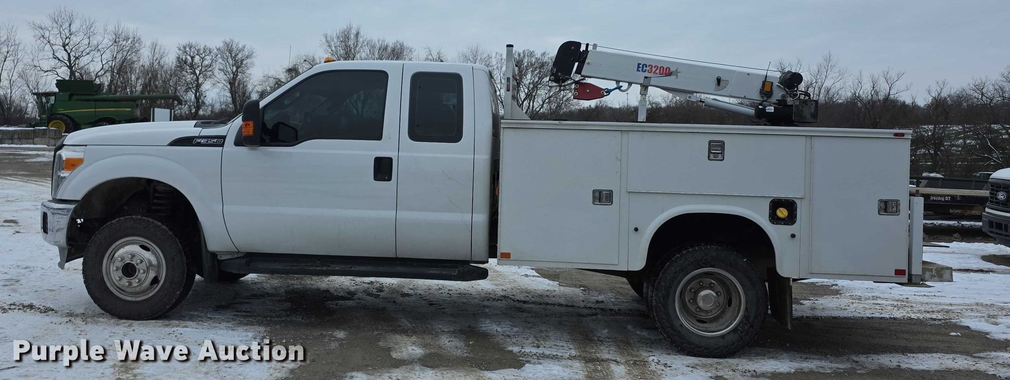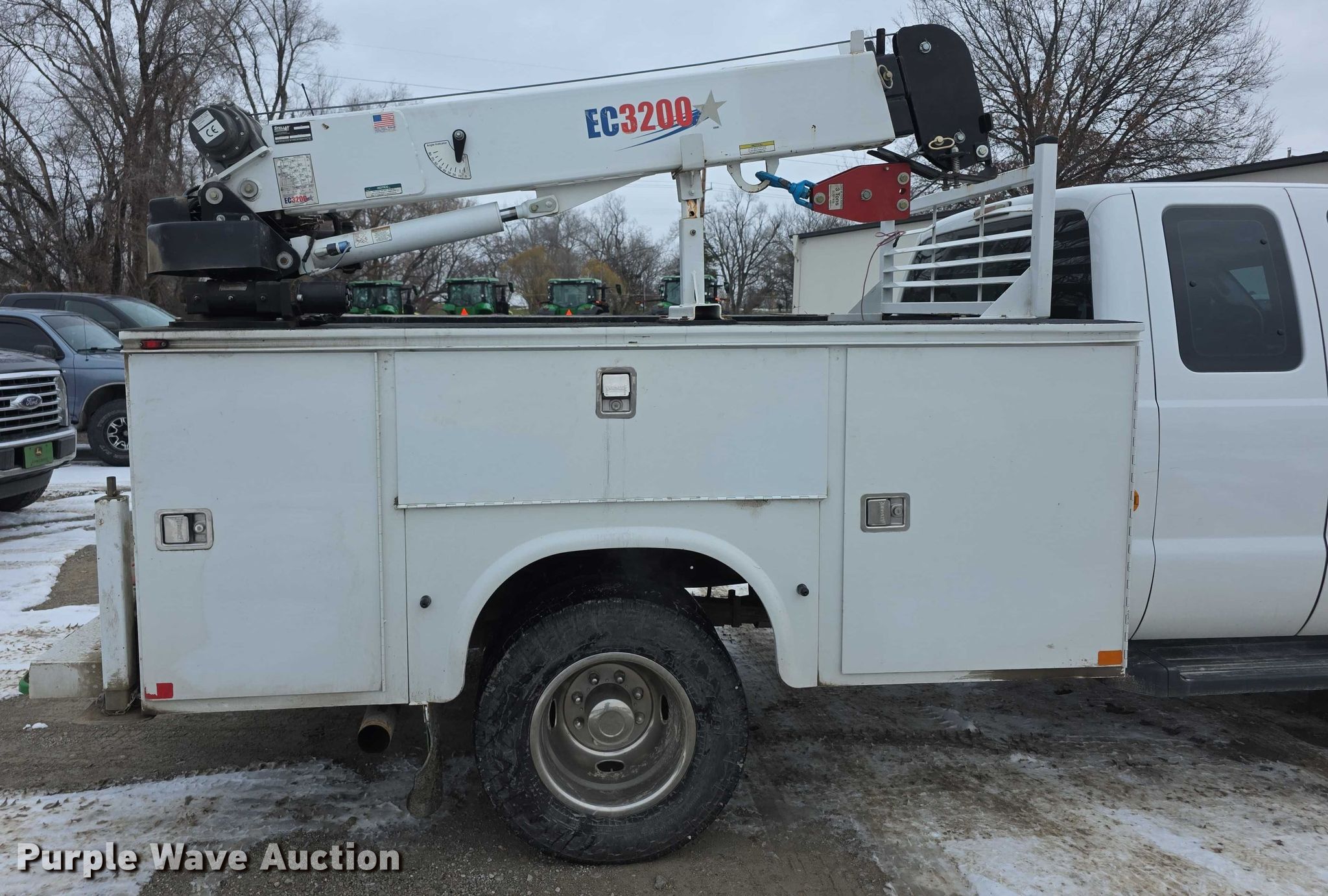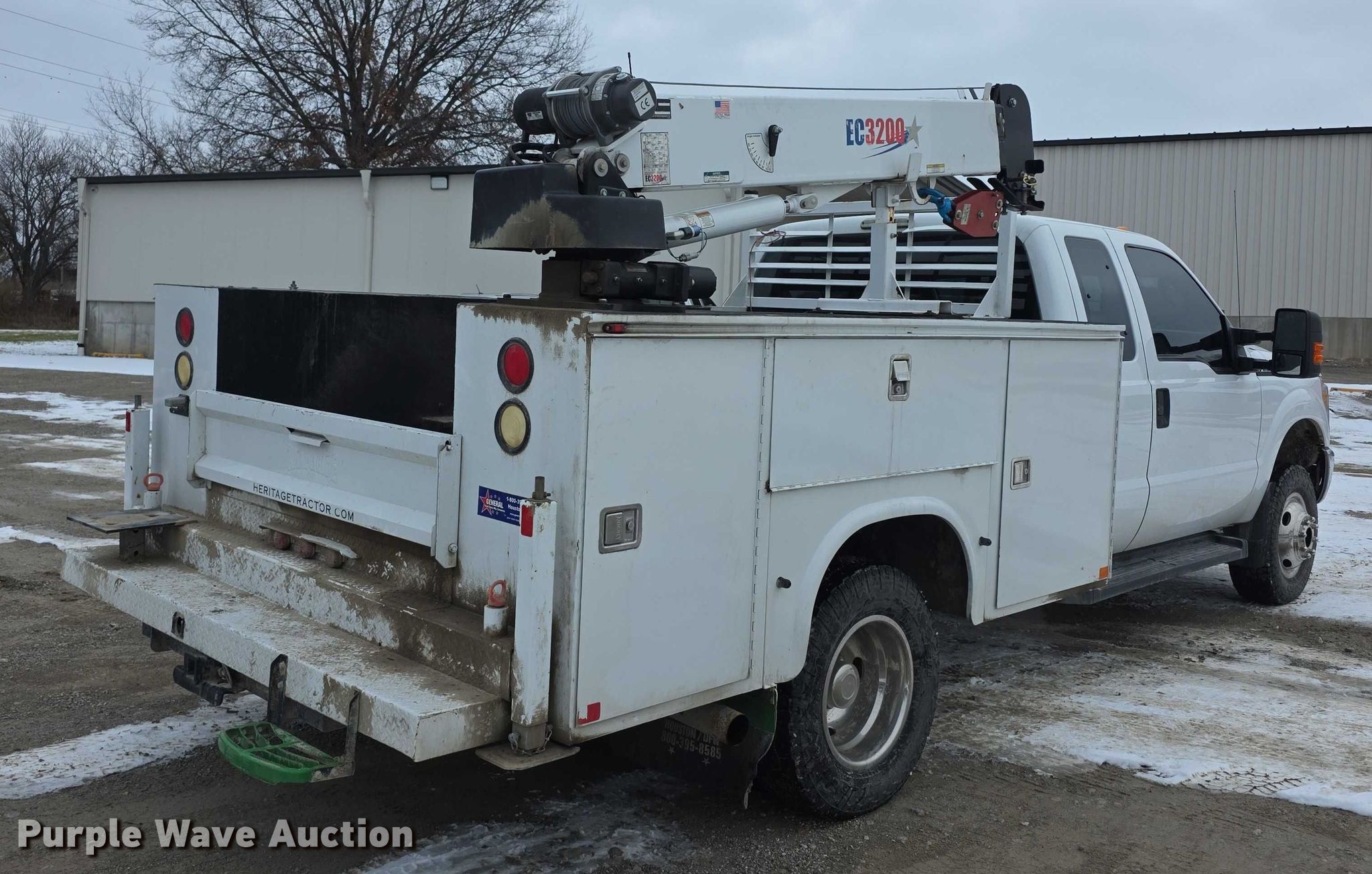 2013 Ford F350 Super Duty XL SuperCab utility bed pickup truck. Miles: 68,891 on odometer, VIN: 1FD8X3H68DEB72421. Engine Displacement: 6.2L, Cylinders: 8, Fuel type: Gas. Transmission Automatic, Four wheel drive. Interior AC, Heat, Heated mirrors, Power windows, Power locks, Cruise control, Auxiliary controls, Brake controller. Features Bed Utility bed, Knapheide 6108D54J1, Serial: 201311150326993, Length: 9', Width: 8', Height: 40", Crane Stellar EC3200, Serial: IDB13E1582K, Maximum boom length: 15', Maximum lift capacity: 3,200 lbs, Crane block Capacity: 3 tons, Remote control, Rear stabilizers. Tires Size: 245 /75R17. Missouri prior salvage title. Title distribution may be delayed up to 30 days from verification of funds. Heritage Tractor. Atchison, KS 66002