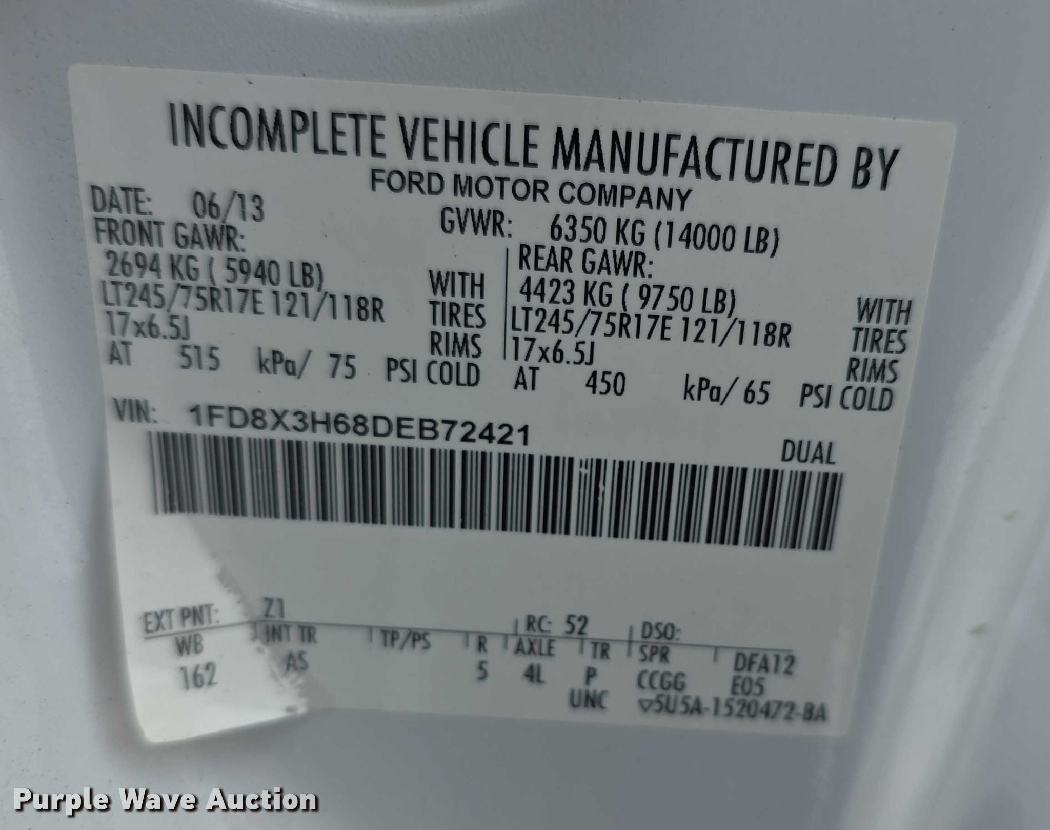 - VIN: 1FD8X3H68DEB72421