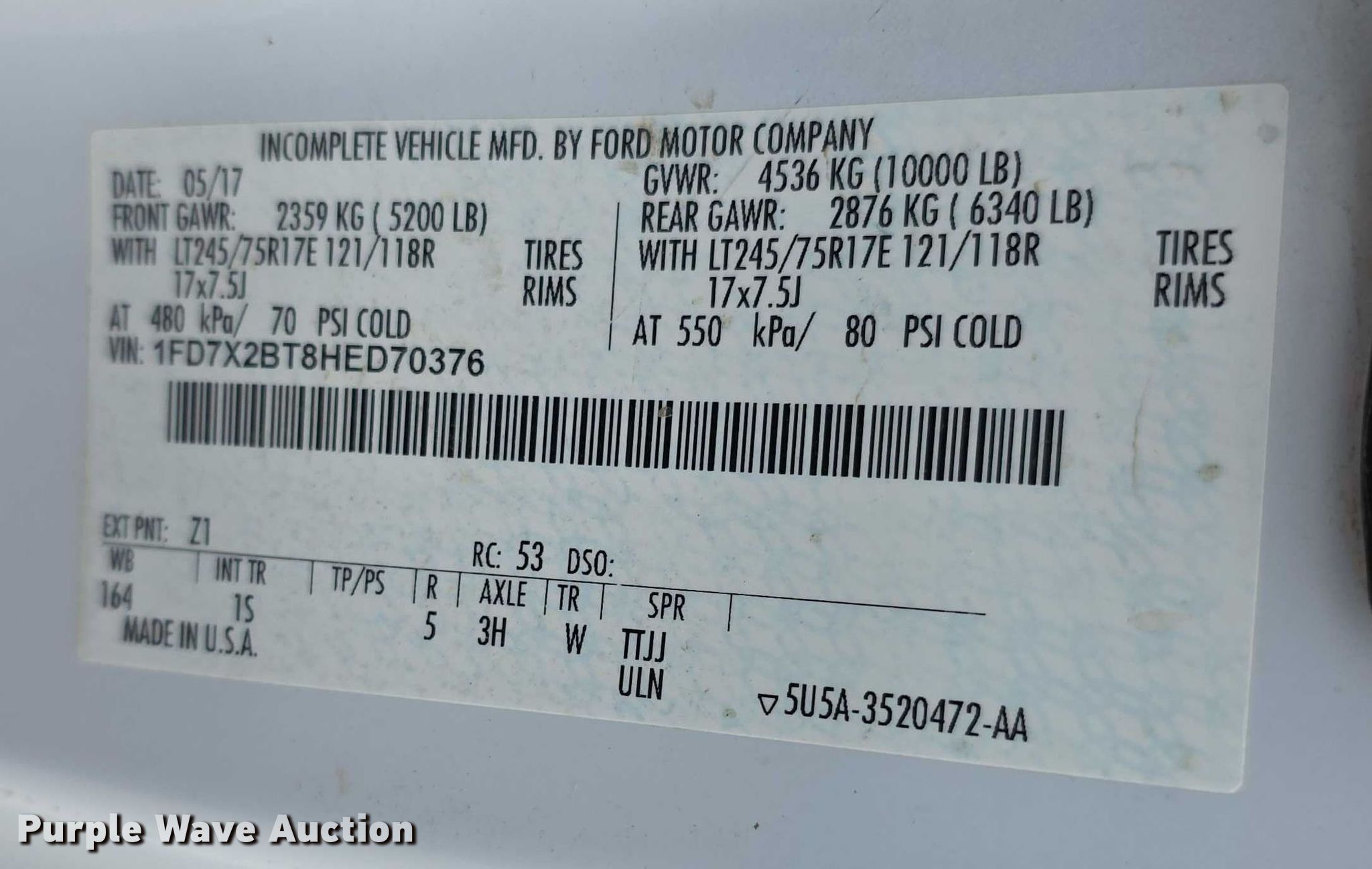 - VIN: 1FD7X2BT8HED70376