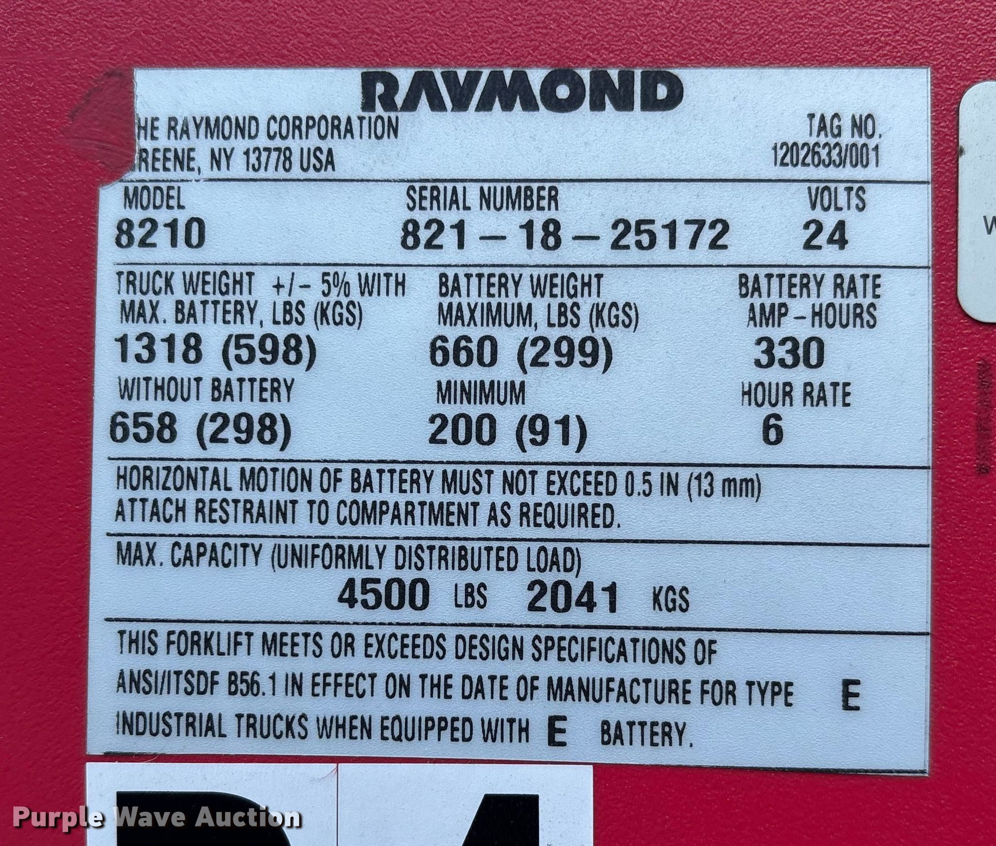 Take a look at this used Raymond 8210 pallet jack being sold on December 30th, 2025 in the Tuesday December 30 Vehicles and Equipment Auction made by Raymond. Take a look at all of the item information below or take a look at similar auctions for Warehouse Forklift.