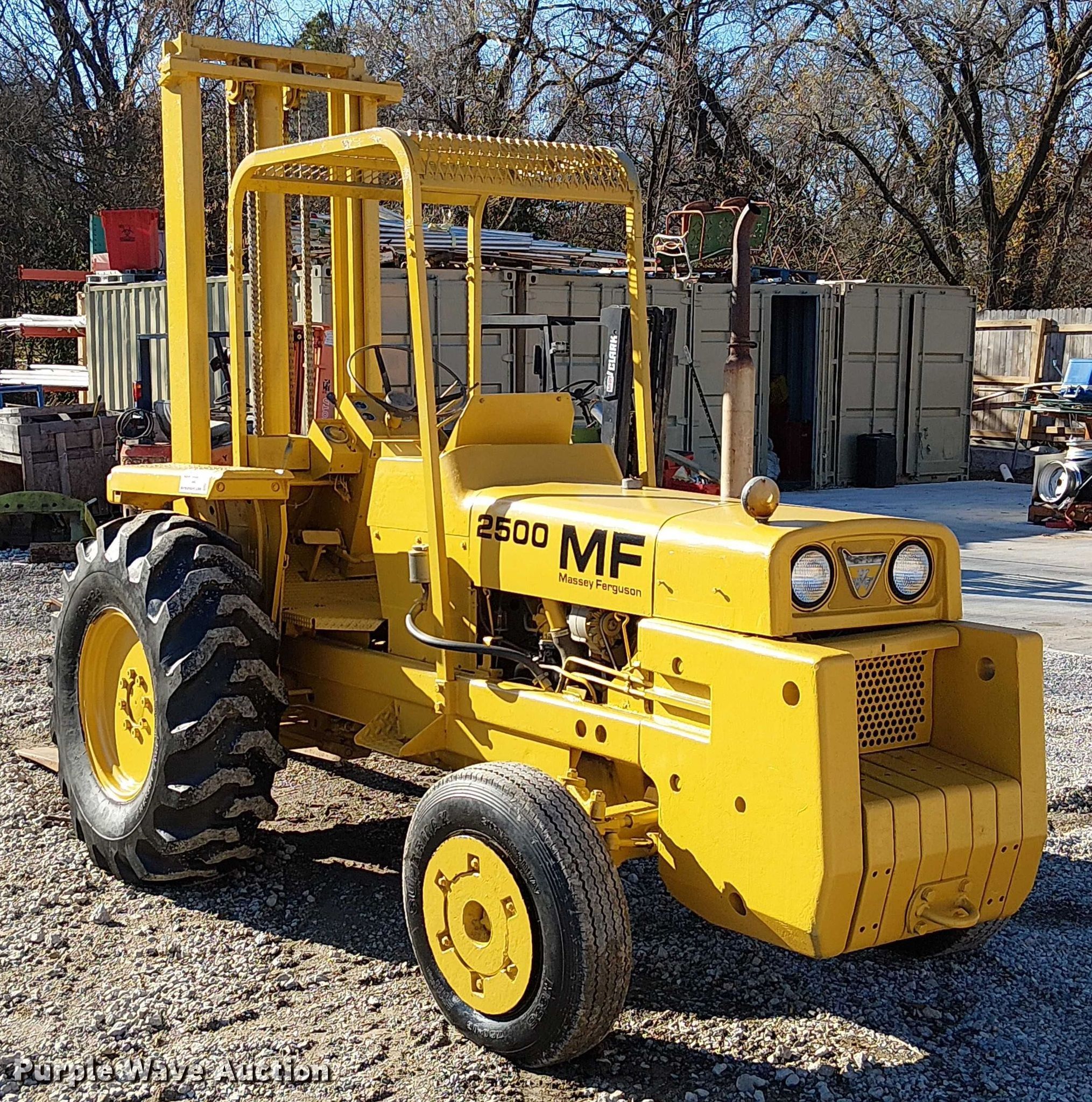 Purple Wave is selling a used Cushion Tire or Pneumatic Forklift in Kansas. This item is a Massey Ferguson MF2500 forklift with the following: Hours: Unknown, Serial: 138410072