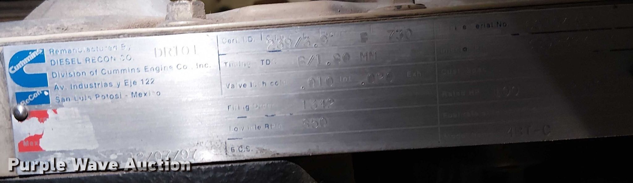 Cummins 4BT-C engine | Tuesday December 30 Vehicles and Equipment Auction
