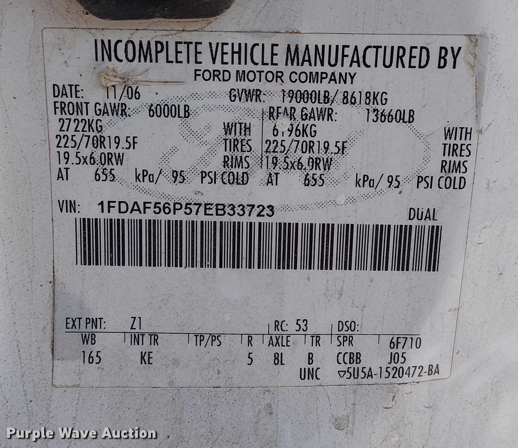 2007 Ford F550 flatbed truck. Miles: 258,709 on odometer, Miles or hours may vary, unit still in use, VIN: 1FDAF56P57EB33723. Engine Displacement: 6.0L, Cylinders: 8, Fuel type: Diesel. Transmission Automatic. Chassis Axles: Single, Suspension: Spring, Brakes: Hydraulic, GVWR: 19,000 lbs. Interior AC, Heat, Power locks, Cruise control, Auxiliary controls, Brake controller. Features Bed Flatbed, Length: 12', Width: 90". Tires Size: 225/70R19.5. Notes Dash warning indicator: ABS, Coolant leak. Missouri title. Title distribution may be delayed up to 14 days from verification of funds. Kansas City Structural Steel. Kansas City, MO 64129