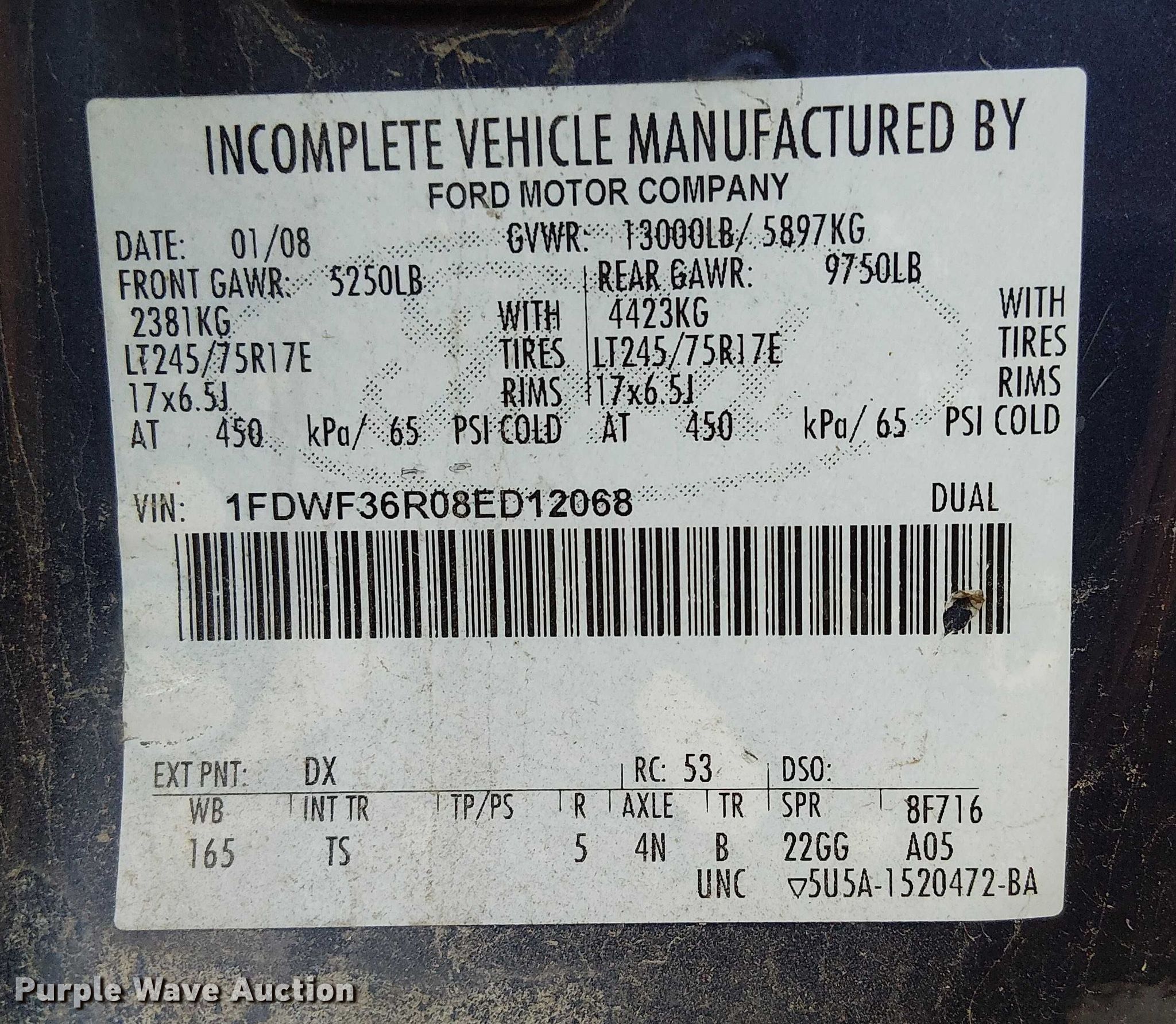 - VIN: 1FDWF36R08ED12068