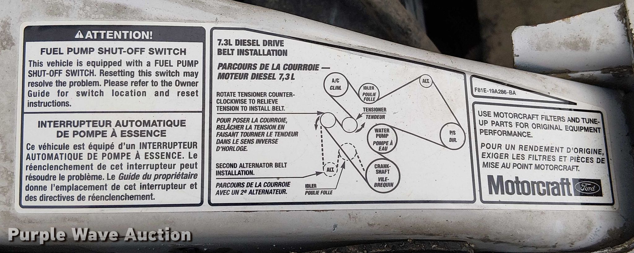2000 Ford F550 Super Duty Crew Cab flatbed truck. Miles: 285,889 on odometer, VIN: 1FDAW57FXYEE09997. Engine Displacement: 7.3L, Cylinders: 8, Fuel type: Diesel. Transmission Automatic, Four wheel drive. Interior AC, Heat, Brake controller. Features Bed Flatbed, Length: 9' 3", Width: 94". Tires Size: 225/70R19.5. Notes Exhaust leak. Missouri title. Title distribution may be delayed up to 14 days from verification of funds. Smithville, MO 64089