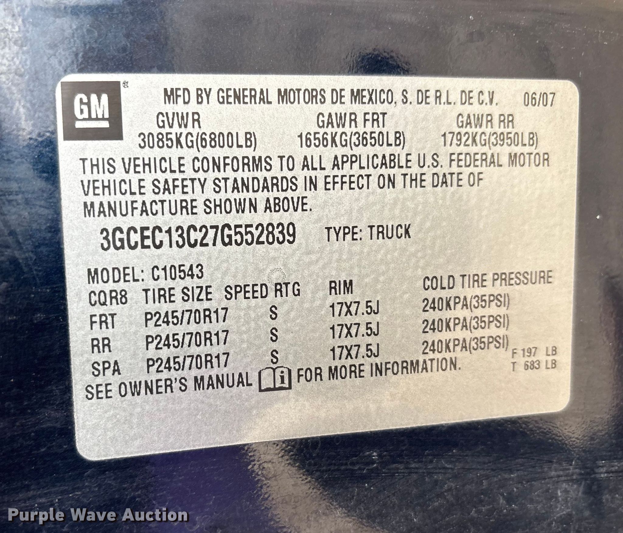 - VIN: 3GCEC13C27G552839