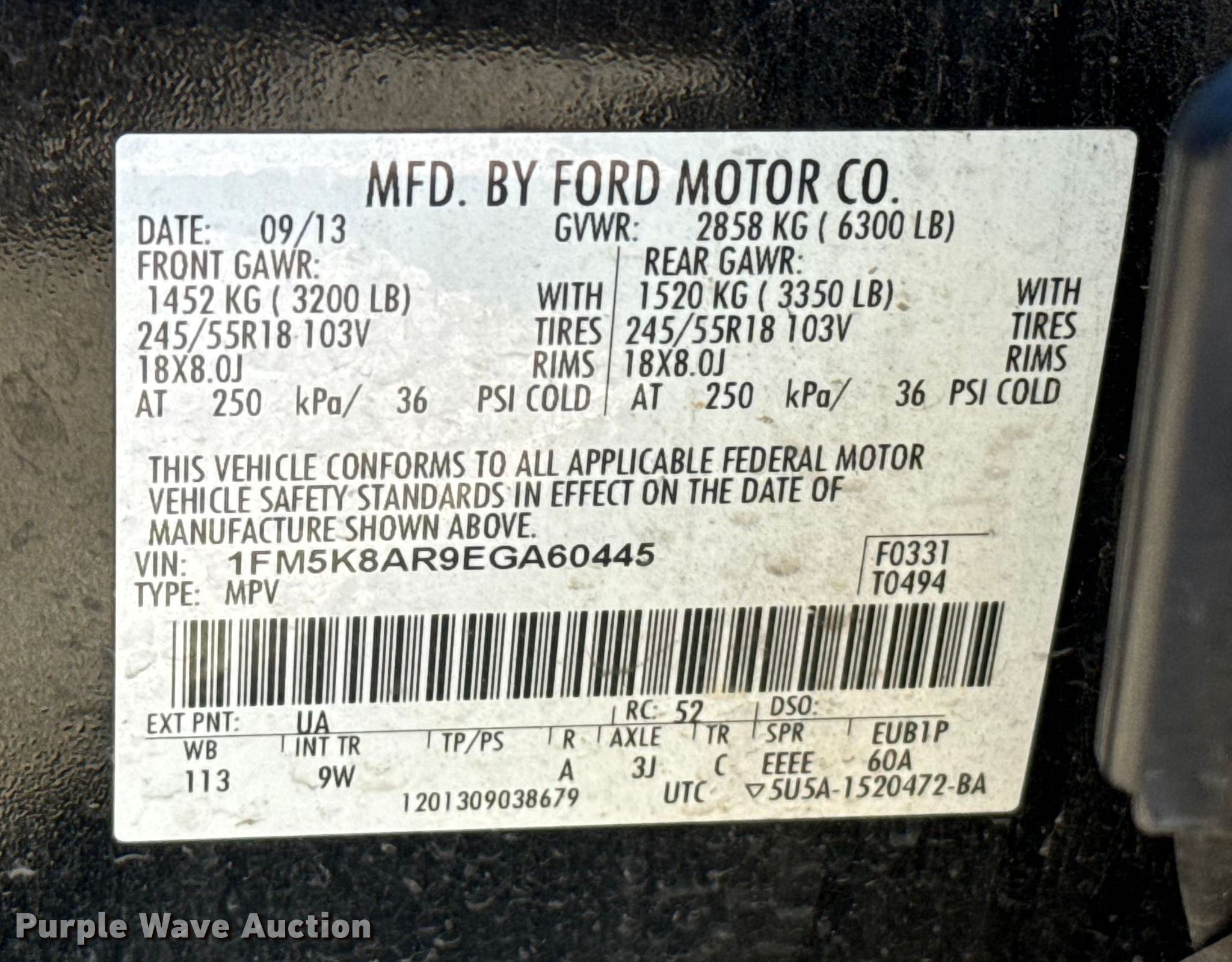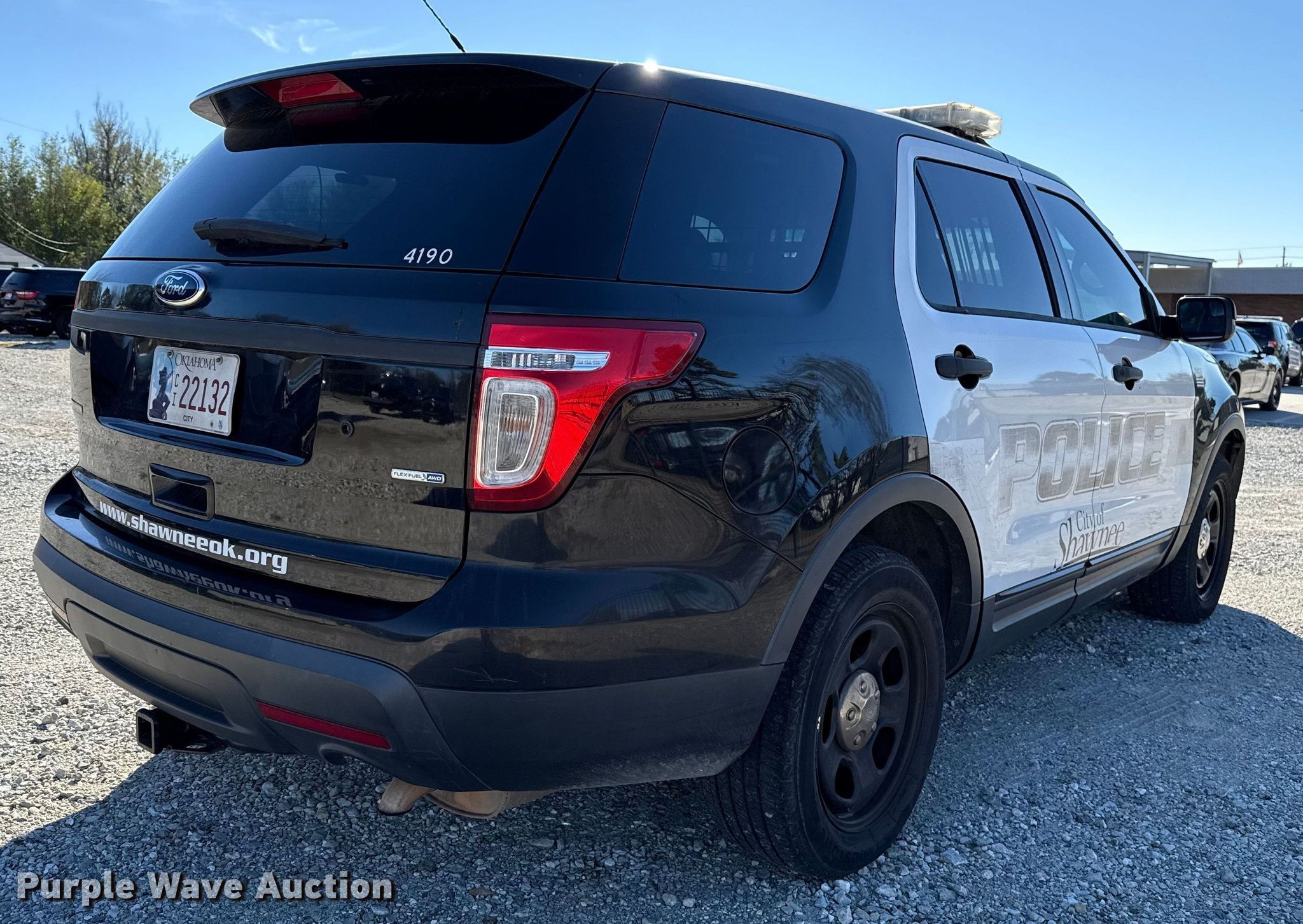 2014 Ford Explorer Police Interceptor SUV. Miles: 163,945 on odometer, VIN: 1FM5K8AR9EGA60445, Unit #: 4190. Engine Displacement: 3.7L, Cylinders: 6, Fuel type: Gas. Transmission Automatic, All wheel drive. Interior AC, Heat, Seat: Power driver, Heated mirrors, Power windows, Power locks, Cruise control. Tires Size: 245/55R18. Notes Dash warning indicator: TPMS, Jump start required during on-site data collection, Decals will be removed prior to auction, Law enforcement equipment not included, Possible front end issues, steering wheel jumps. Oklahoma title. Seller is a government entity who will be assigning and distributing the title. Please contact the seller for distribution questions. Shawnee Police Department. Shawnee, OK 74804
