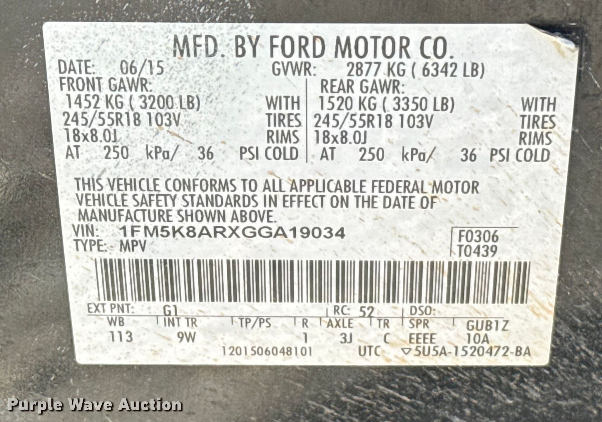 - VIN: 1FM5K8ARXGGA19034