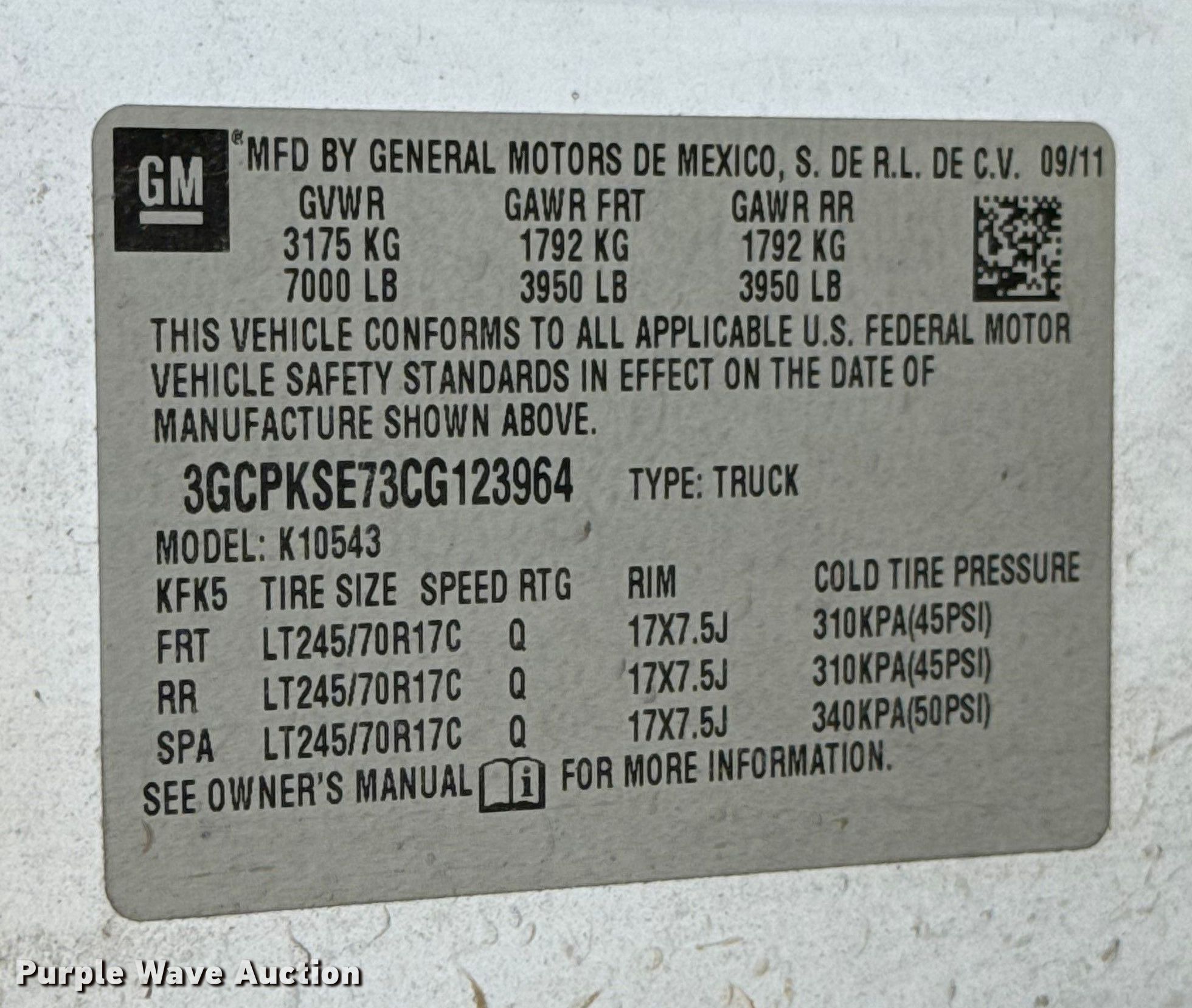 - VIN: 3GCPKSE73CG123964