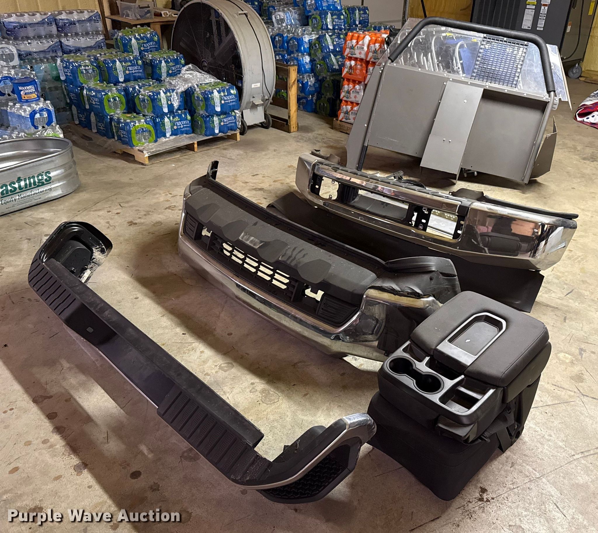 Purple Wave is selling a used Automotive Parts or Acces. in Oklahoma. This item is a Automotive parts with the following: Chevrolet front bumper, Chevrolet rear bumper, Ford bumper, Chevrolet console, Light bar, Police cage