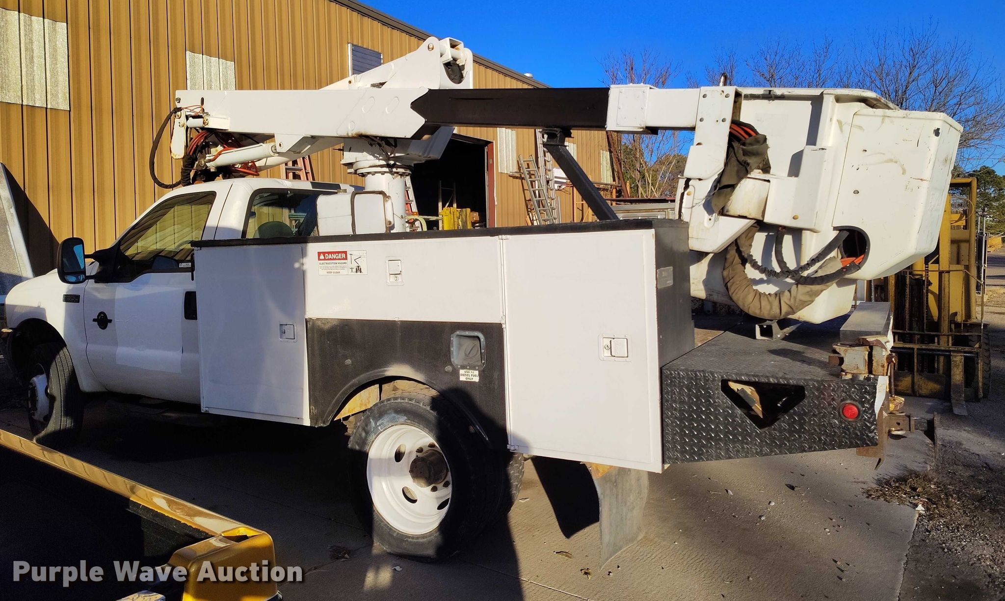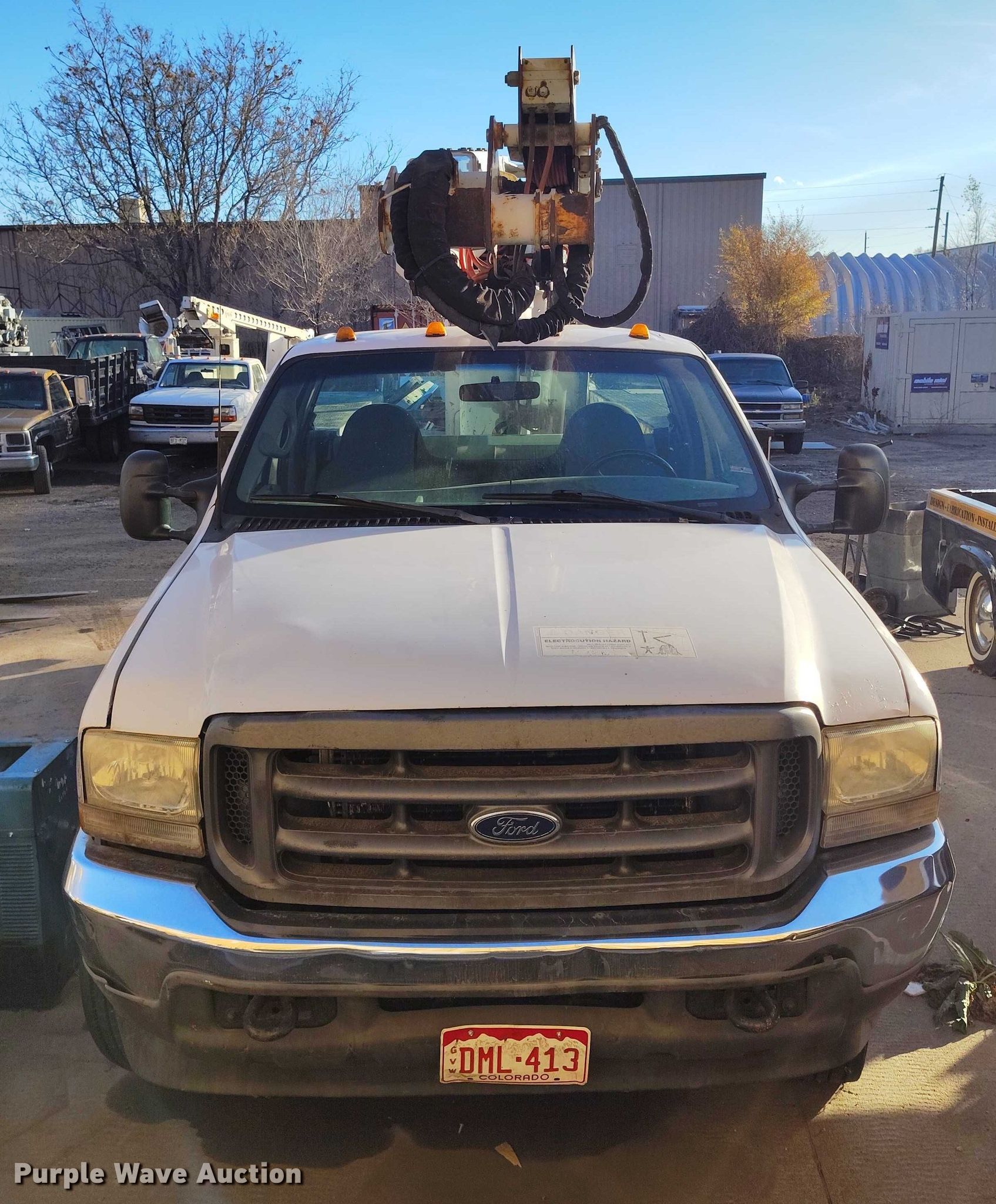 Purple Wave is selling a used Bucket Truck in Colorado. This item is a 2002 Ford F550 Super Duty bucket truck with the following: Miles: Unknown, Hours: 20,883 on meter, VIN: 1FDAF57F42ED53109