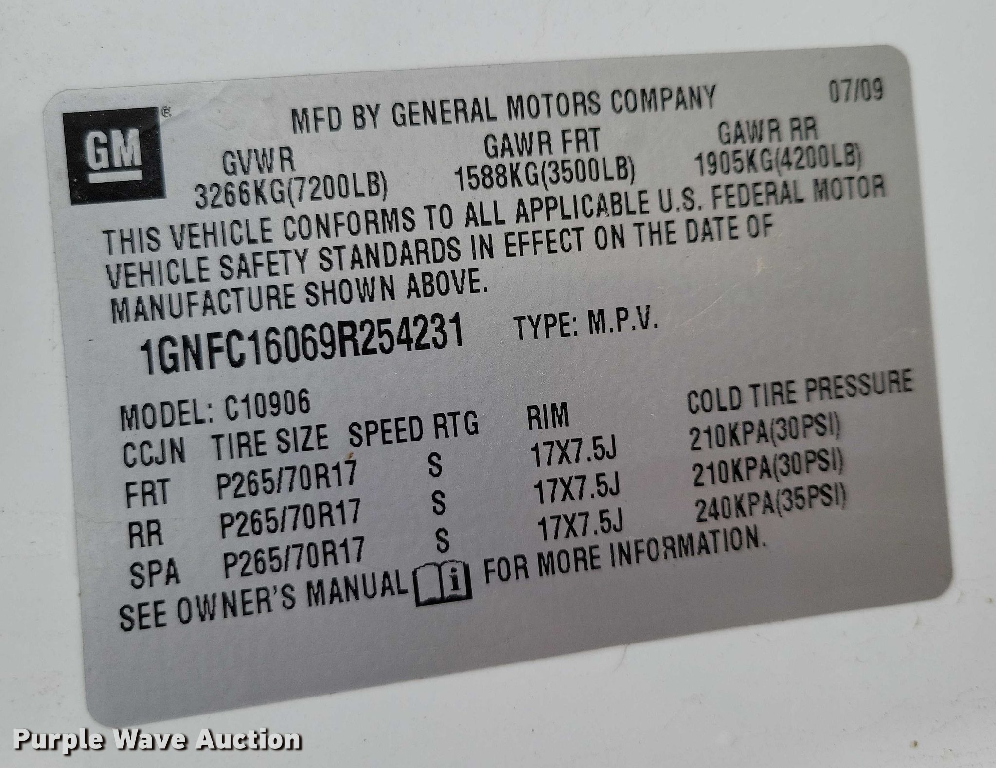 - VIN: 1GNFC16069R254231
