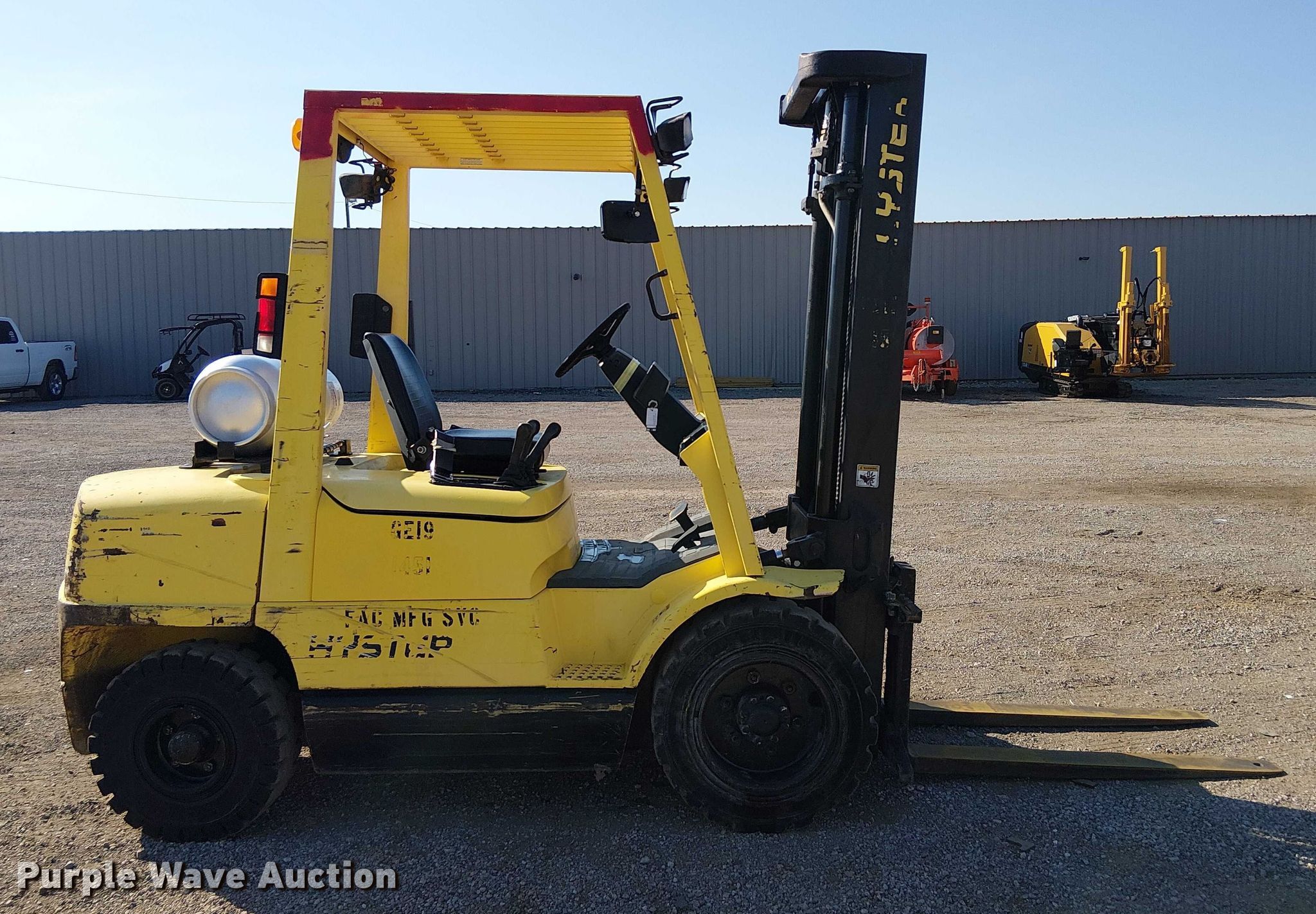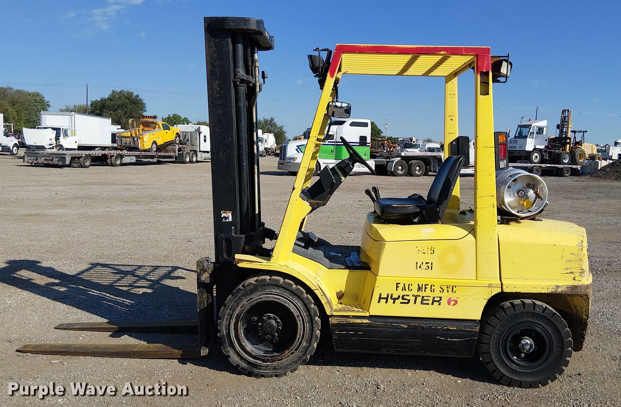 Purple Wave is selling a used Warehouse Forklift in Oklahoma. This item is a 1997 Hyster H60XM forklift with the following: Hours: 6,234 on meter, Serial: D177B41115U, Unit #: 1451