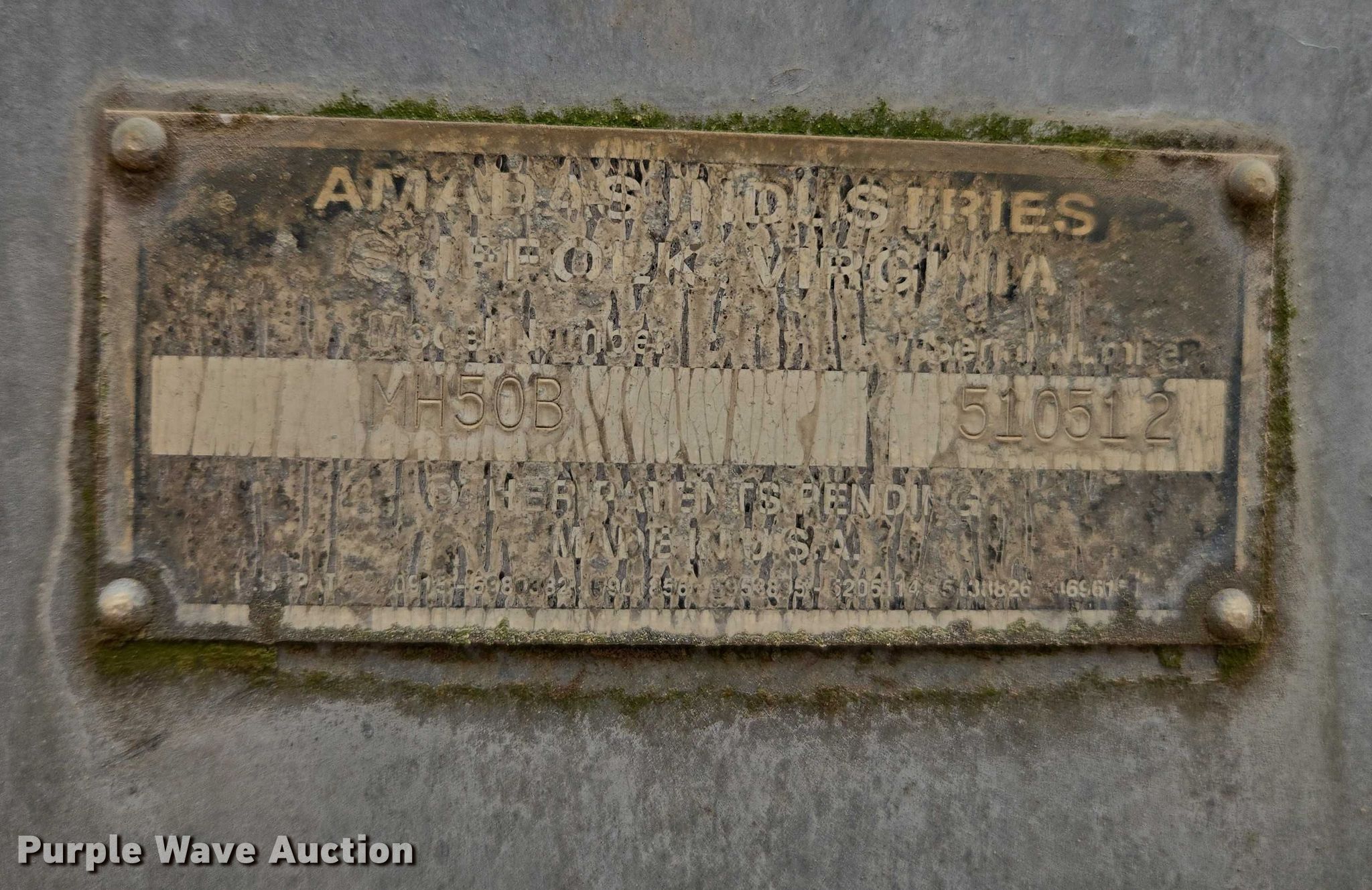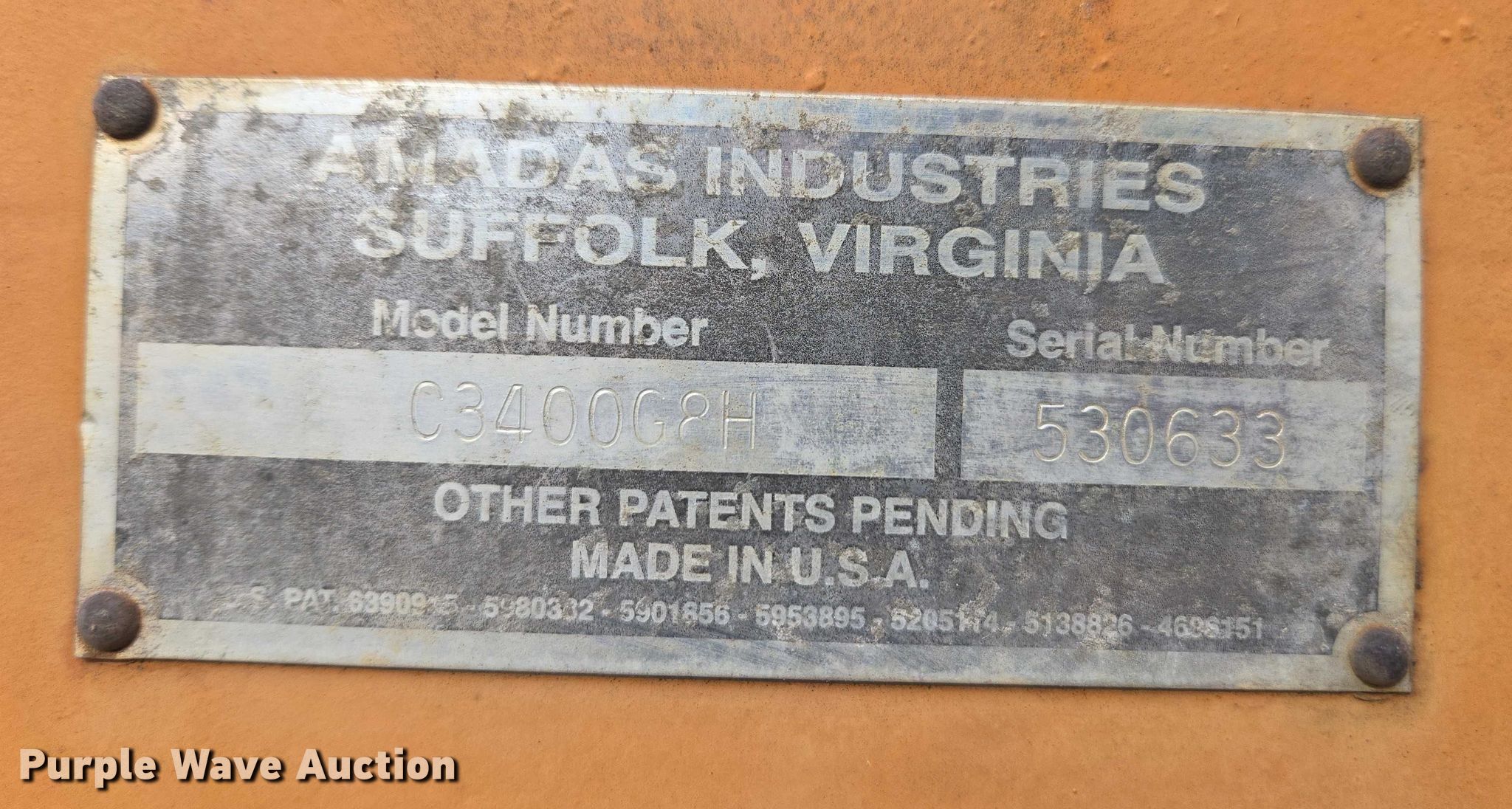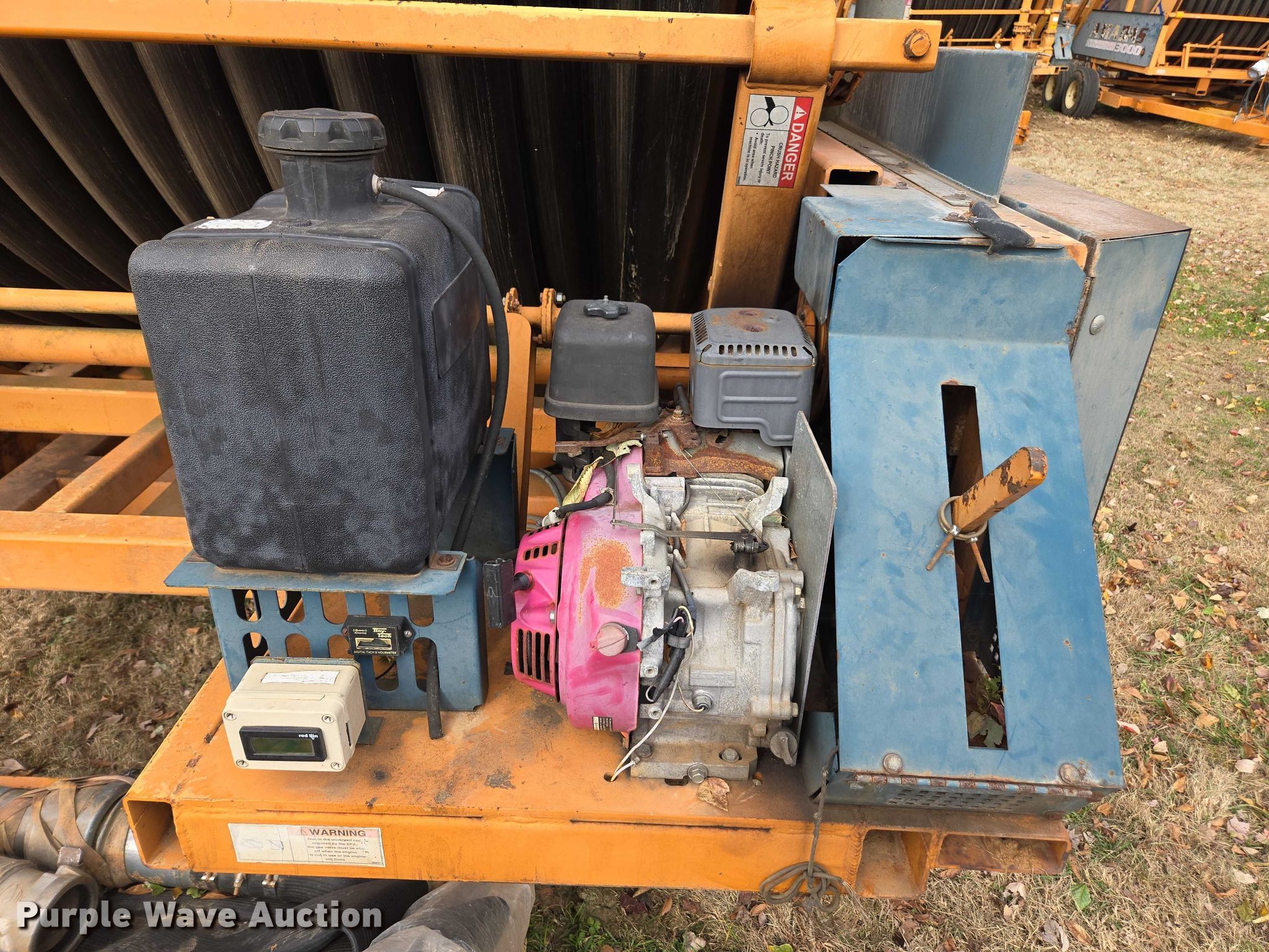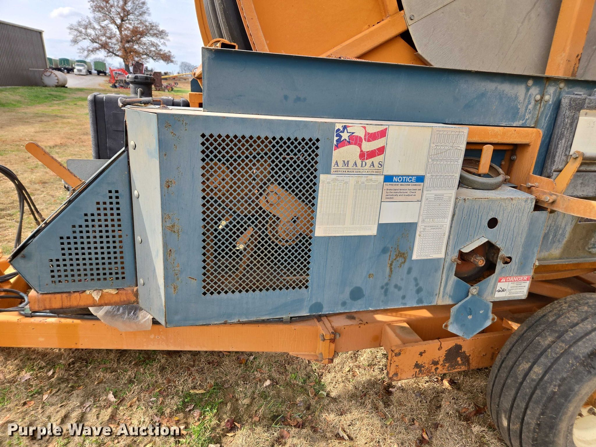 Amadas C3400G8H irrigation hose reel. Serial: 530633. Dimensions Overall Length: 25', Width: 124". Engine Honda GX240, Cylinders: 1, Fuel type: Diesel. Features Inlet: 5", Pipe: 4.5", Hydraulic stabilizers, Amadas MH50B water cannon, Approx. length: 1,450', PTO: 540. Tires Size: 12.5-15. Notes PTO half shaft missing, Unknown operating condition of engine. A&W Southern Sod Farms LLC - Open Inspection December 17th through 20th, 2025 8:00 a.m. to 4:00 p.m.. 5651 Fred Perry Road. Springfield, TN 37172