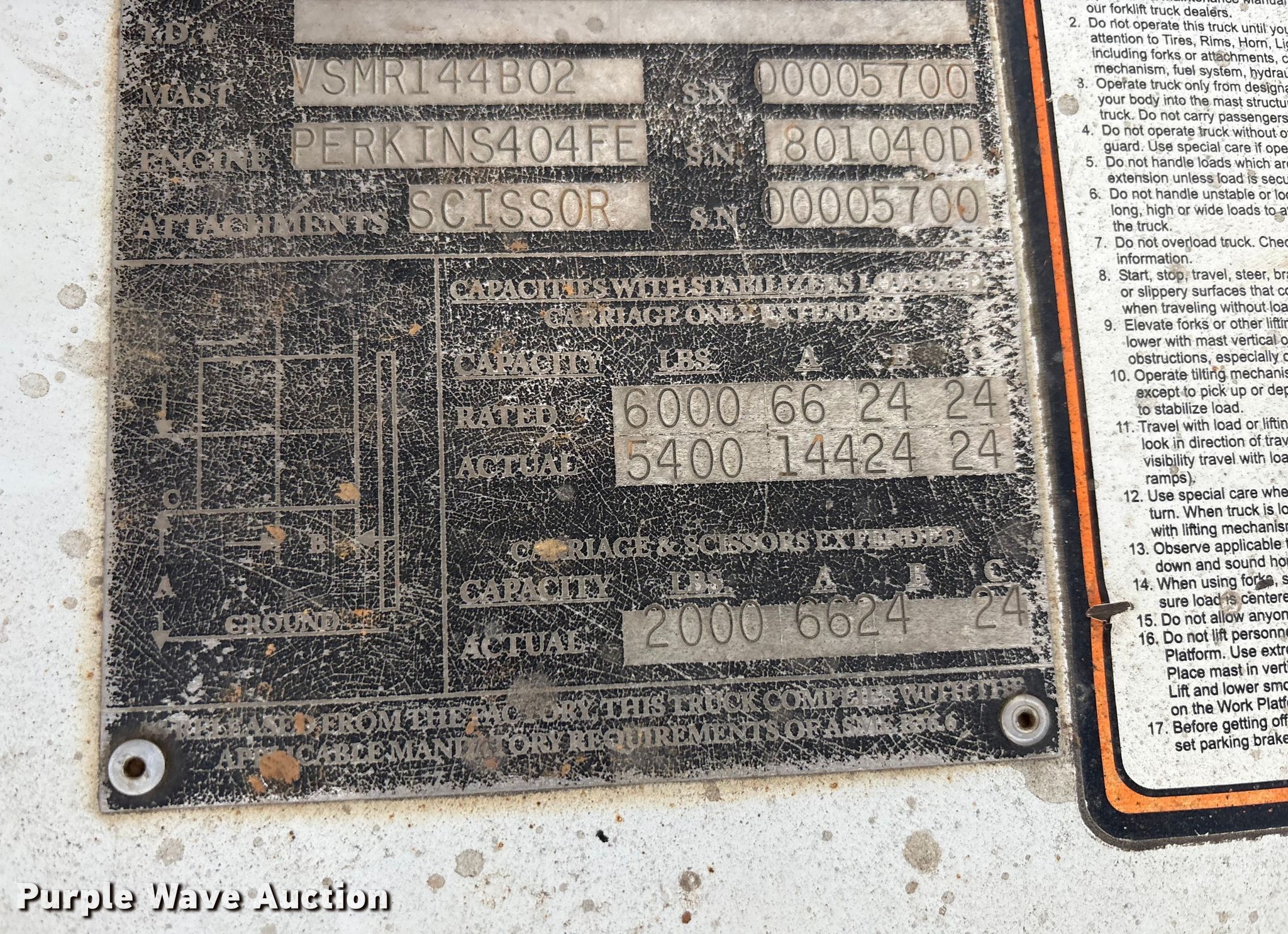 2018 Western P55 forklift. Hours: 1,047 on meter, Serial: 00005700. Engine Perkins, Fuel type: Diesel. Transmission Hydrostatic. Operators station OROPS. Features Maximum lift capacity: 6,000 lbs, Maximum lift height: 144", Collapsed mast height: 112", Mast stages: 3, Side shift, Mast tilt, Fork positioner, Reach / retract, Fork length: 47". Tires Size: 31x15.50-15. Notes Non-operational hour meter. A&W Southern Sod Farms LLC - Open Inspection December 17th through 20th, 2025 8:00 a.m. to 4:00 p.m.. 5651 Fred Perry Road. Springfield, TN 37172