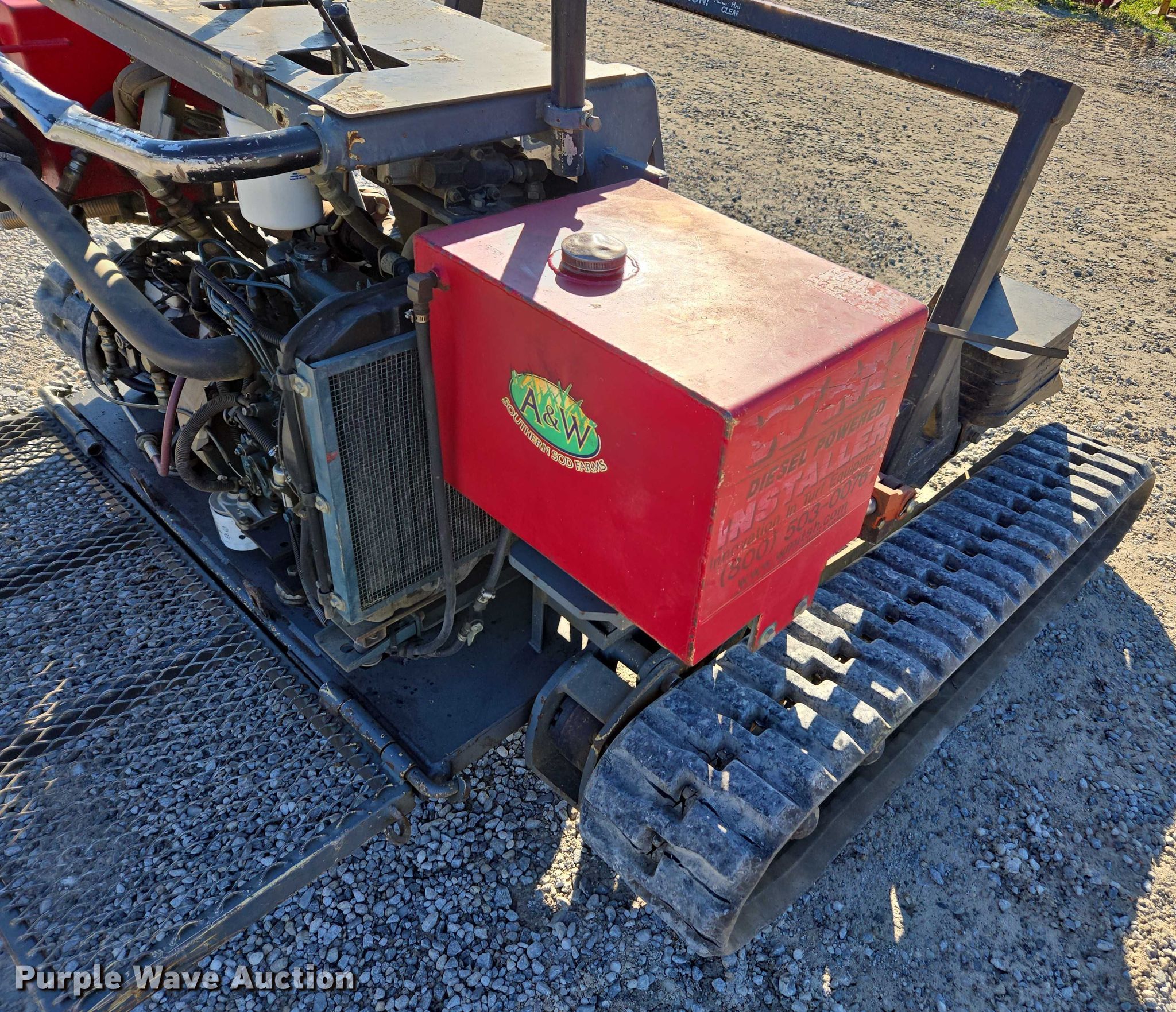 WMI 4826D sod installer. Hours: 1,906 on meter. Dimensions Width: 80" Working width: 48". Engine Kubota D1105, Cylinders: 3, Fuel type: Diesel. Transmission Hydrostatic. Features Hydraulic lift. Tracks Width: 10", Rubber. A&W Southern Sod Farms LLC - Open Inspection December 17th through 20th, 2025 8:00 a.m. to 4:00 p.m.. Springfield, TN 37172