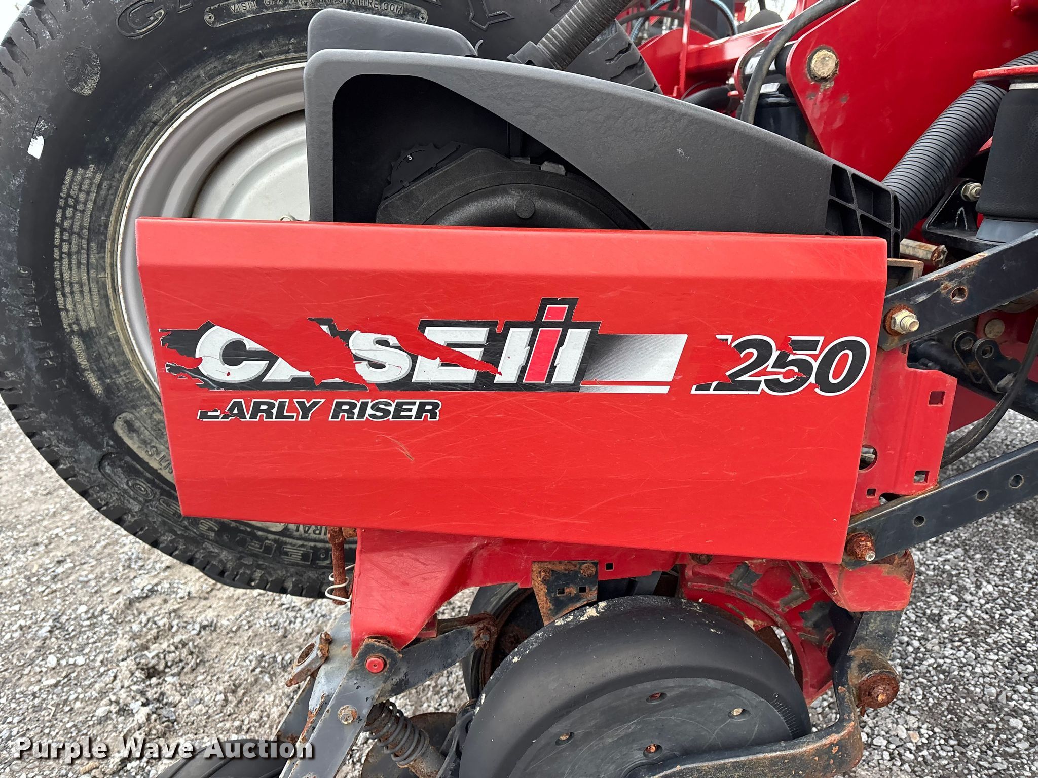 2012 Case IH Early Riser 1250 planter. Row units: 24, Row spacing: 30", Serial: YCS028866, Unit #: 172720. Features Hydraulic PTO pump, Frame Marker arm, Fold type: Front, Seed delivery Bulk fill system, Capacity: 100 bushels, Row units Vacuum metering, Meter drive: Hydraulic, Seed meters: Corn Quantity: 24, Down pressure: Pneumatic, Seed firmers, Disk openers: Double, Gauge wheels: Double, Closing system: Double Type: Cast.. Tires Transport tire size: 11-22.5 NHS Quantity: 4, Drive/ outside tire size: 11-22.5 NHS Quantity: 4. H&R Agri-Power. Mayfield, KY 42066