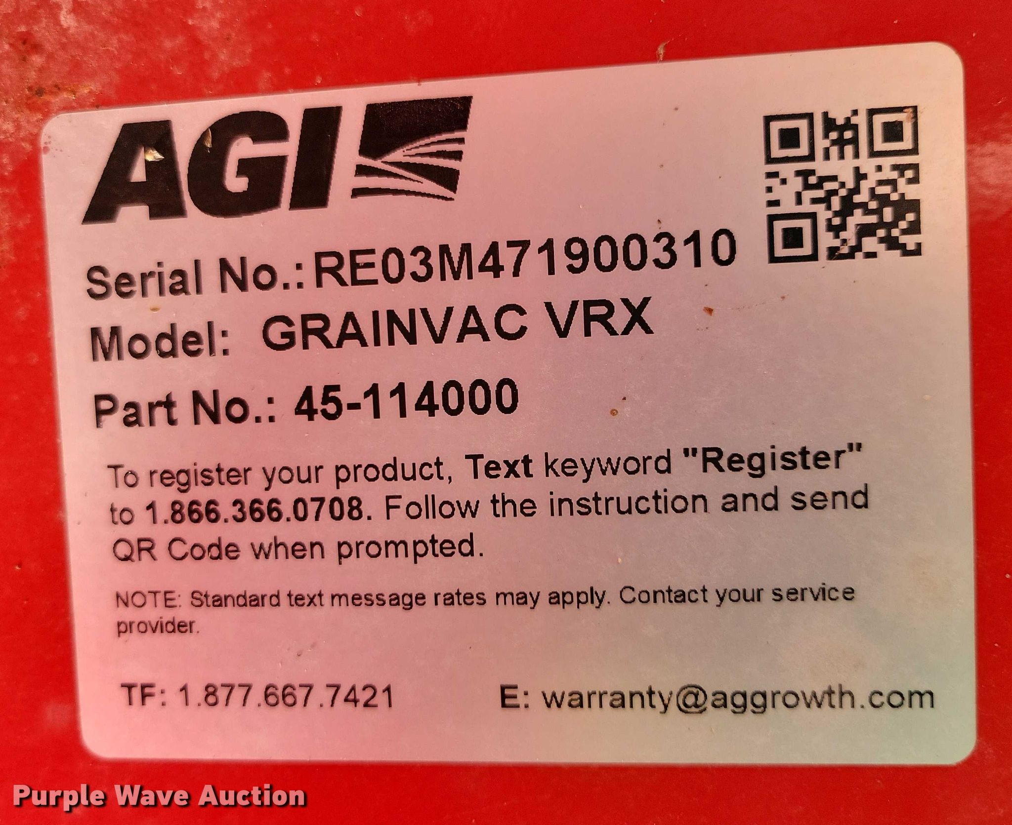 Purple Wave is selling a used Other Grain or Fertilizer Handling in Iowa. This item is a 2020 Rem VRX grain vacuum with the following: Hours: 14 on meter, Serial: RE03M471900310