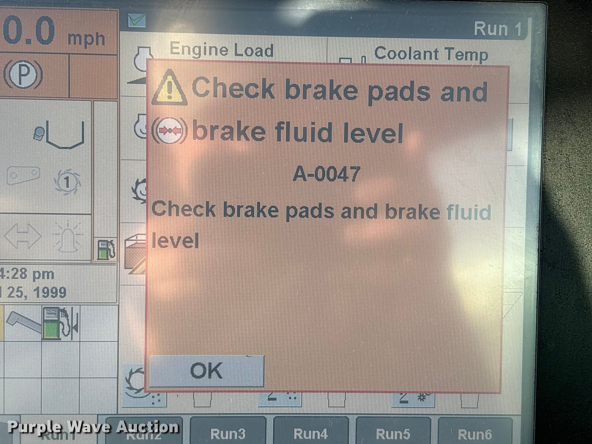 - Warning indicator: Brake fluid, Brake pads, Unloader Cradle Sensor, Fuel Level Sensor