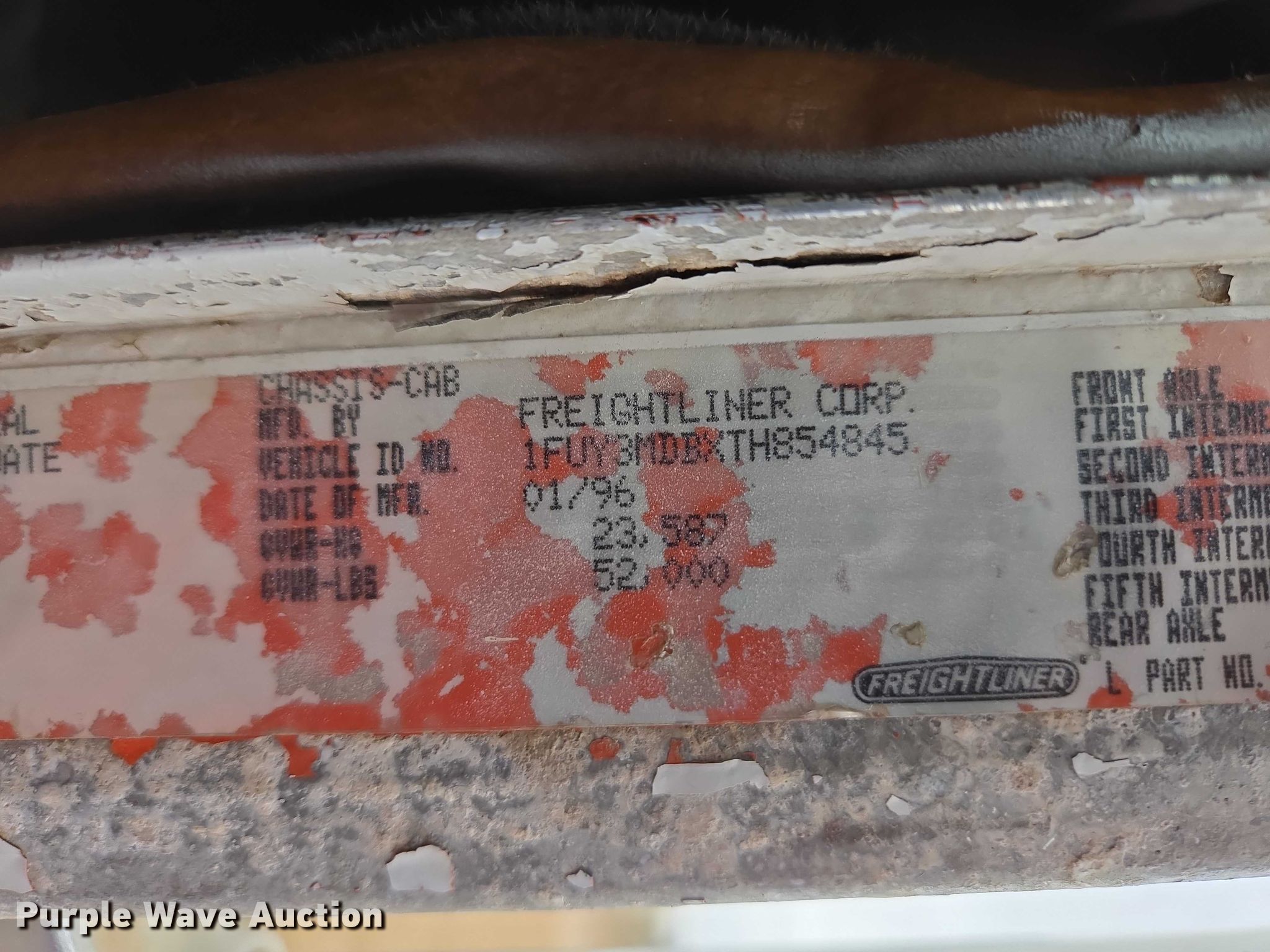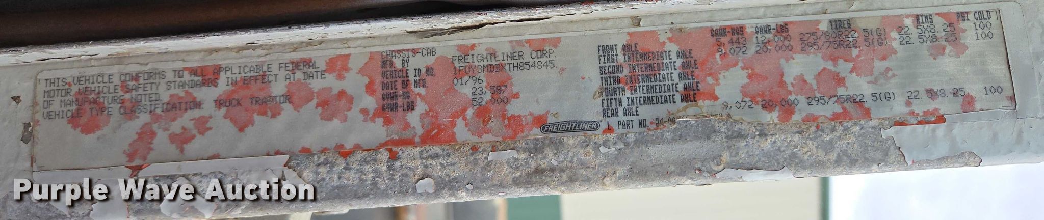 Purple Wave is selling a used Truck Chassis in South Dakota. This item is a 1996 Freightliner FLD112 truck cab and chassis with the following: Miles: 299,568 on odometer, VIN: 1FUY3MDBXTH854845, Unit #: 96