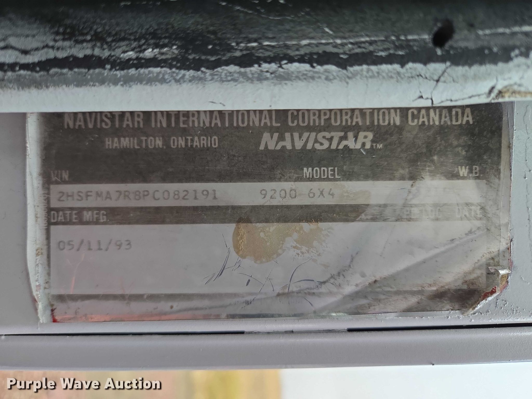1993 International 9200 Eagle truck cab and chassis. Miles: 355,195 on odometer, VIN: 2HSFMA7R8PC082191, Unit #: 19. Engine Cummins L10-330E, Serial: 34691681, Displacement: 10.0L, Cylinders: 6, Fuel type: Diesel. Transmission Rockwell, Manual, Speed: 9. Chassis Axles: Triple, Pusher axle Steerable, Differential lock: Inter-axle, Suspension: Air, Brakes: Air, Truck chassis: 15' 6". Interior AC, Heat, Heated mirrors, Cruise control. Features Fuel tank: Dual. Tires Front: 295/75R22.5, Rear: 275/80R22.5. Notes Windshield chipped or cracked, Engine fire damage, wiring harness melted, Lift axle tires missing, Non-operational unit, Unit must be towed or hauled. South Dakota title. Title distribution may be delayed up to 14 days from verification of funds. Valley Ag Supply. Elk Point, SD 57025