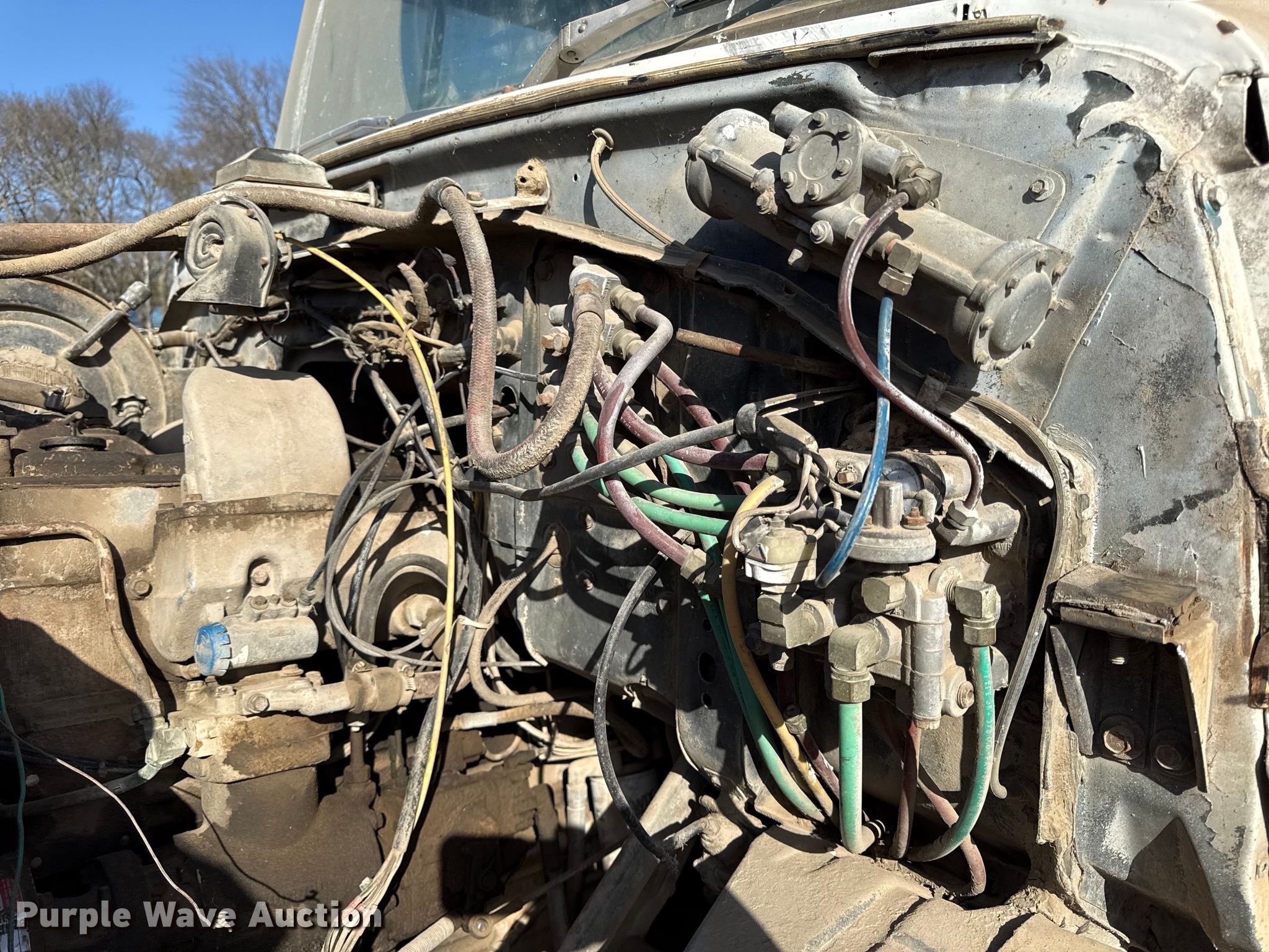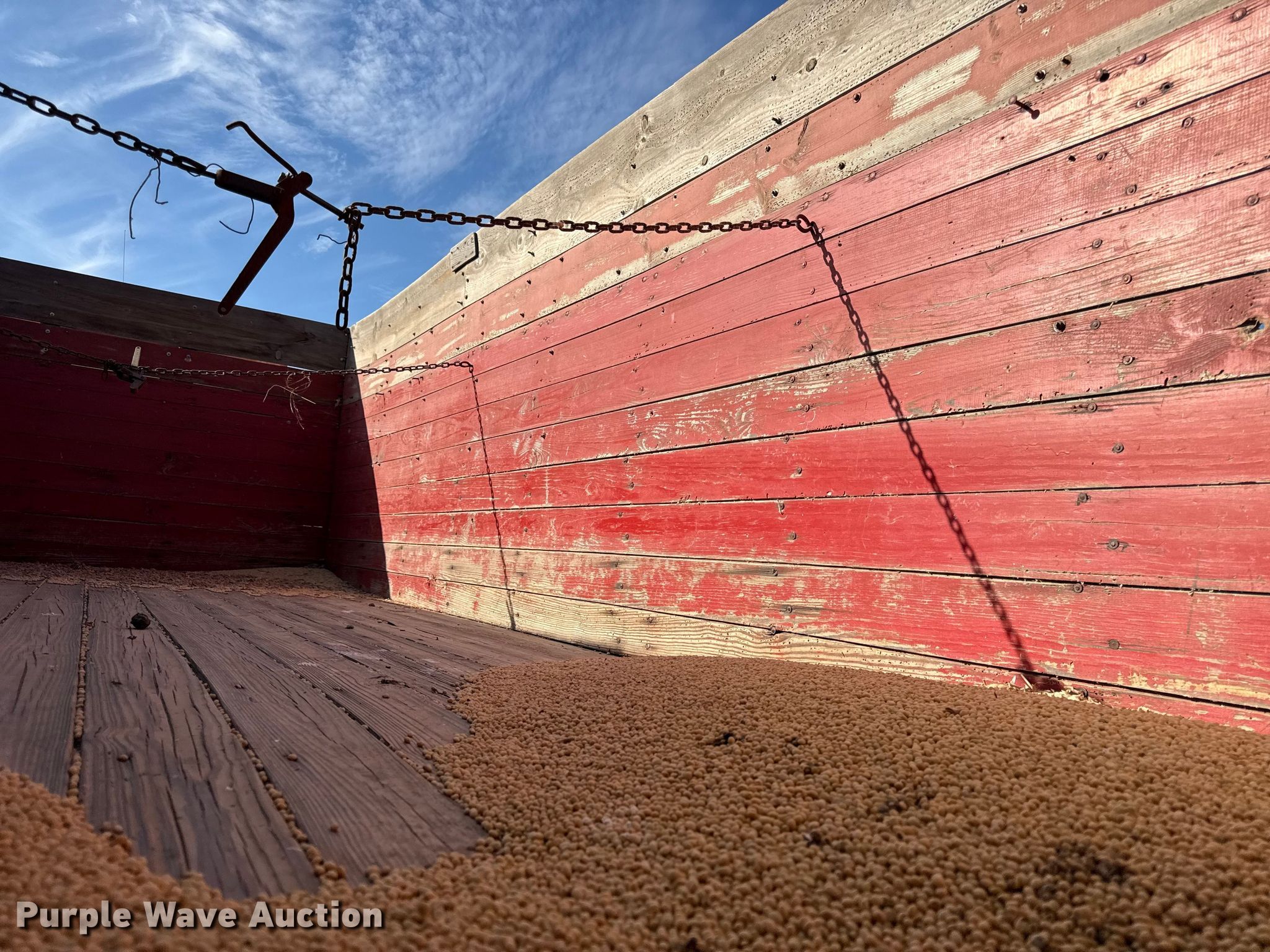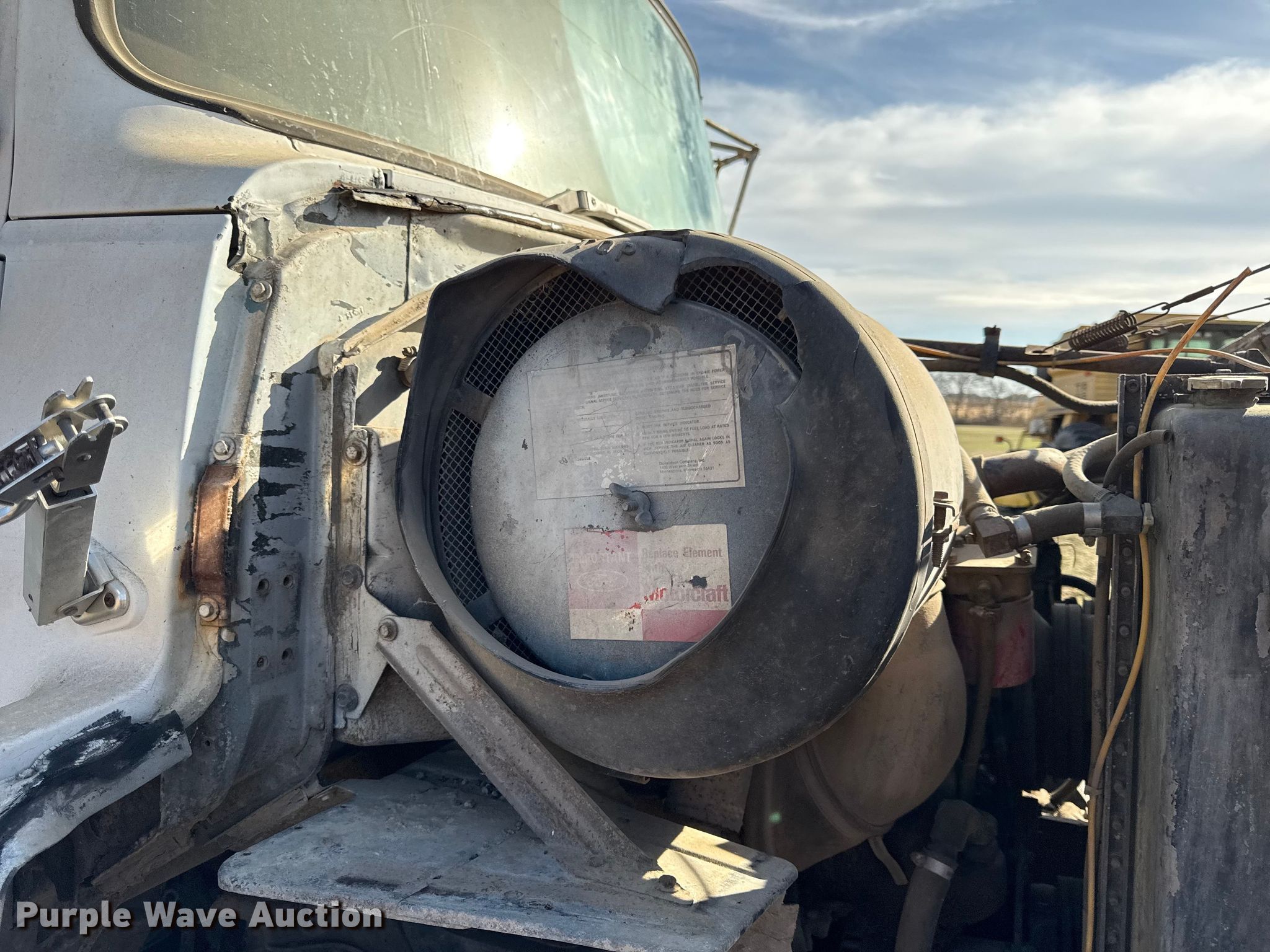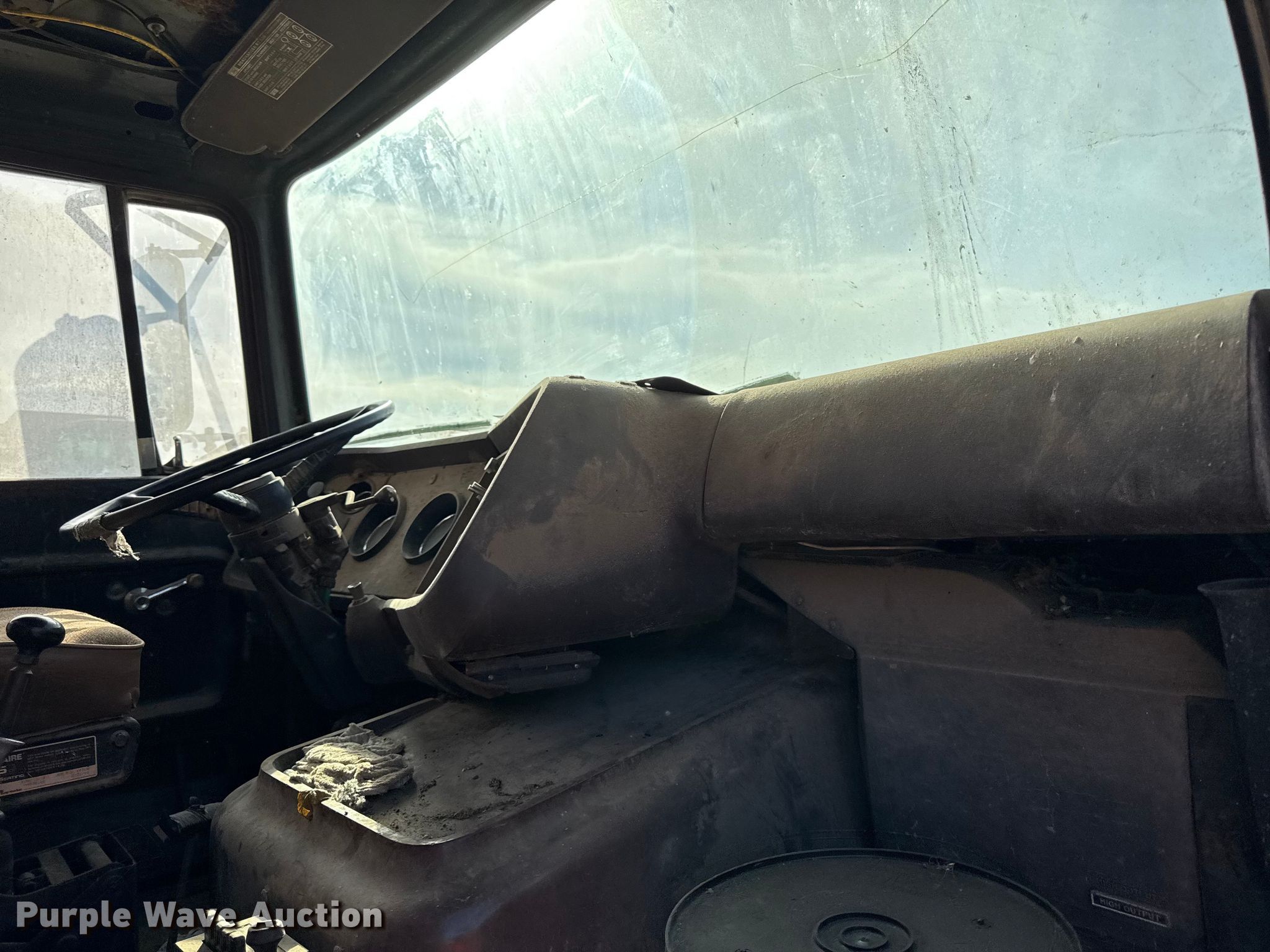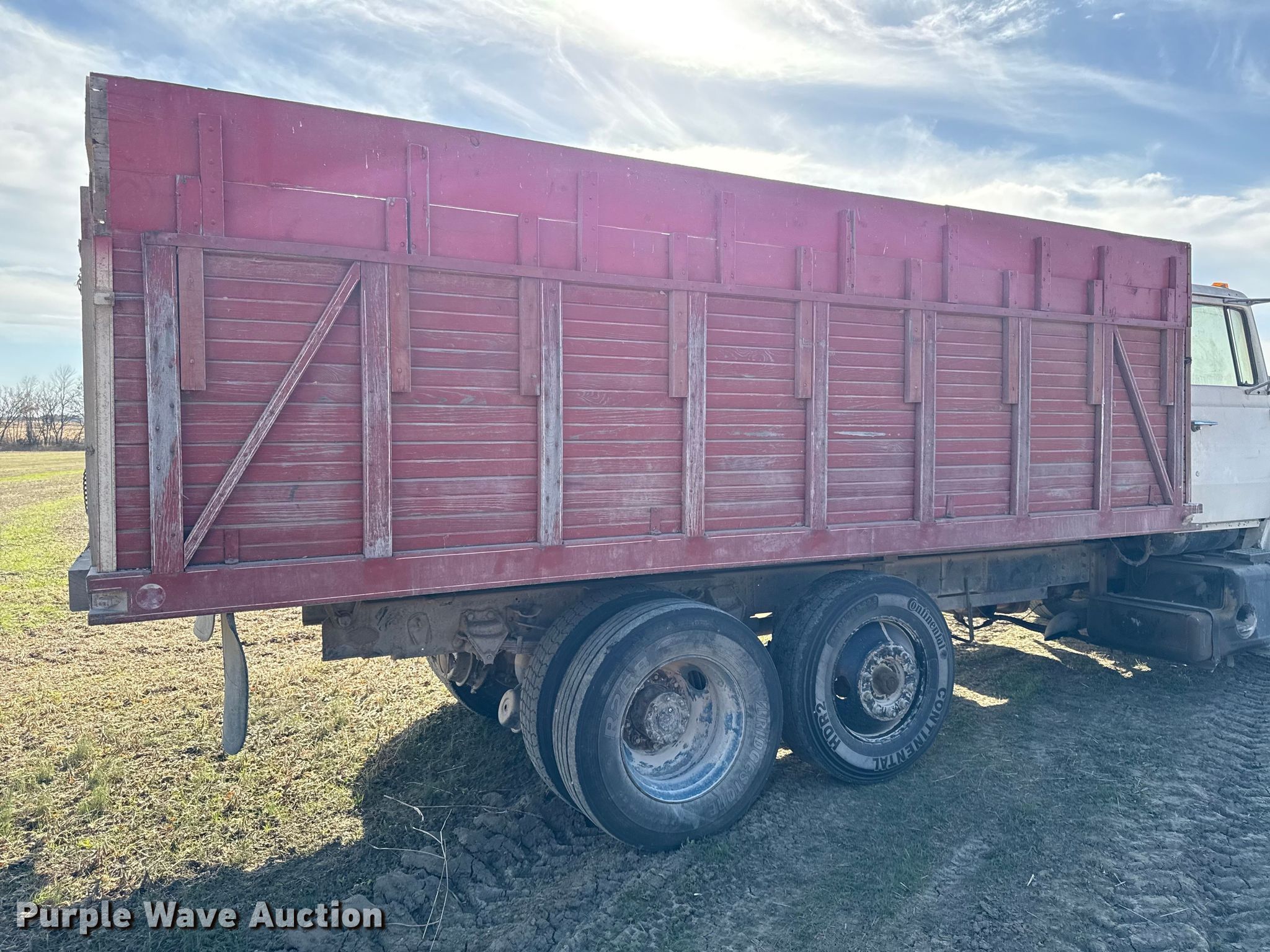 1978 Ford L9000 grain truck. Miles: 488,697 on odometer, VIN: R909VCF4466. Engine Cummins, Cylinders: 6, Fuel type: Diesel. Transmission Manual, Speed: 6. Chassis Axles: Single, Pusher axle, Suspension: Spring, Brakes: Air, PTO. Interior Heat. Features Bed Dump bed, Length: 18', Width: 96", Bed type: Steel, Ram: Single, End gate: Manual. Tires Size: 295/75R22.5. Kansas antique title. Title distribution may be delayed up to 30 days from verification of funds. Fogelman Farms. Cherryvale, KS 67335