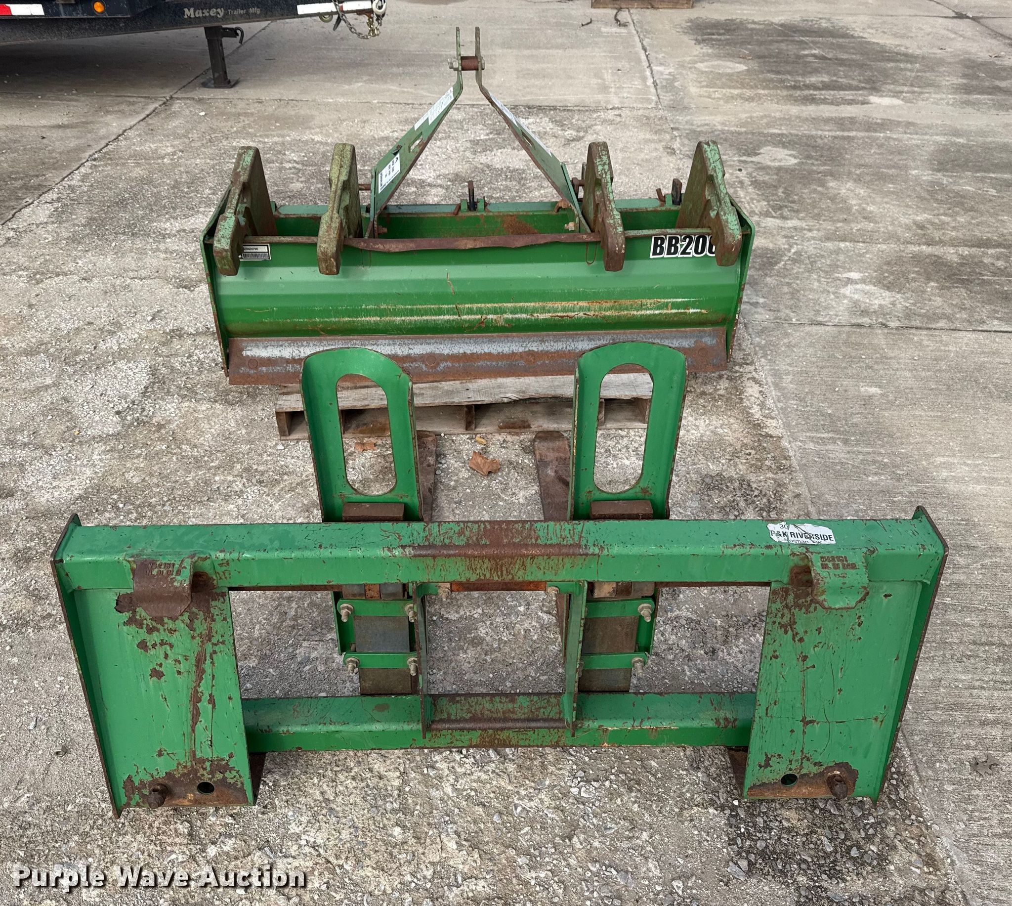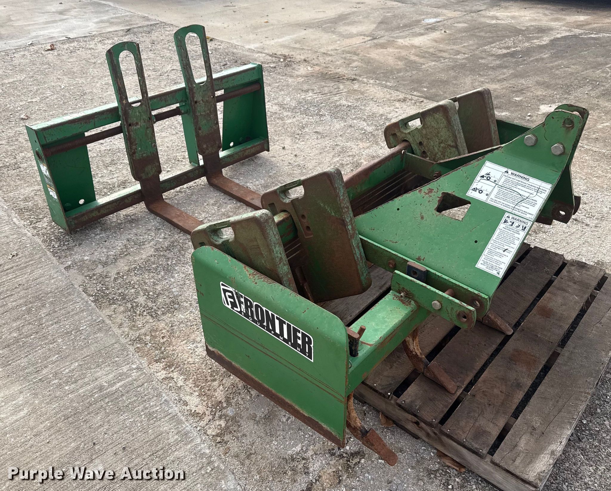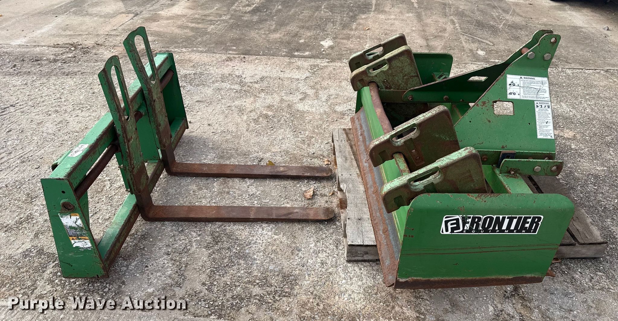 Ag tractor attachments. Features. Forks Length: 38", Frontier BB2060box blade Width: 60", Shanks: 3, Hitch: Three point, (4) suitcase weights. Dolese Bros. Co. - Open Inspection Monday, December 29th. 5600 West Reno Avenue. Oklahoma City, OK 73127