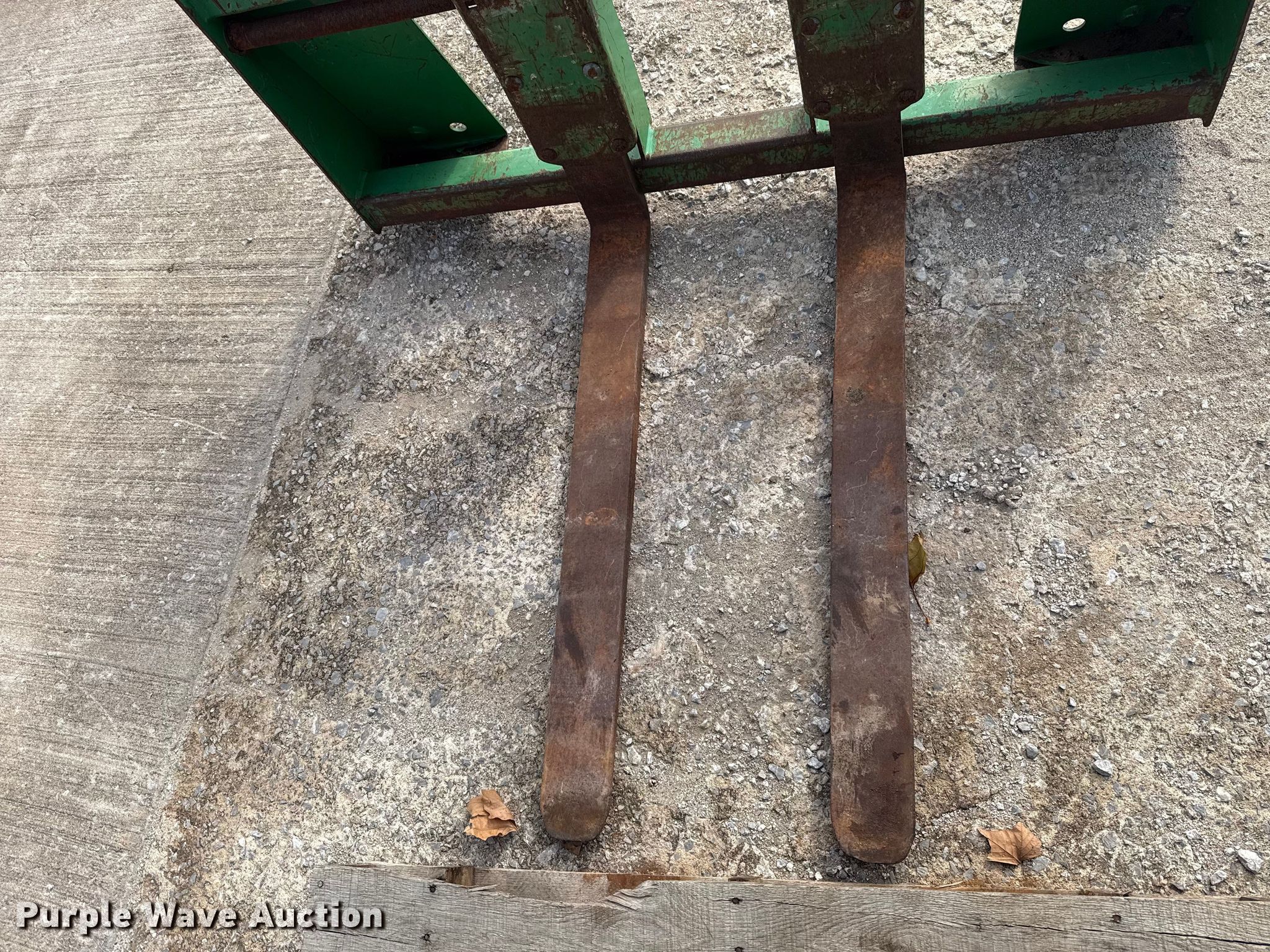 Purple Wave is selling a used Ag Tractor Loader or Attach. in Oklahoma. This item is a Ag tractor attachments with the following: Forks, Length: 38", Frontier BB2060box blade, Width: 60", Shanks: 3, Hitch: Three point, (4) suitcase weights