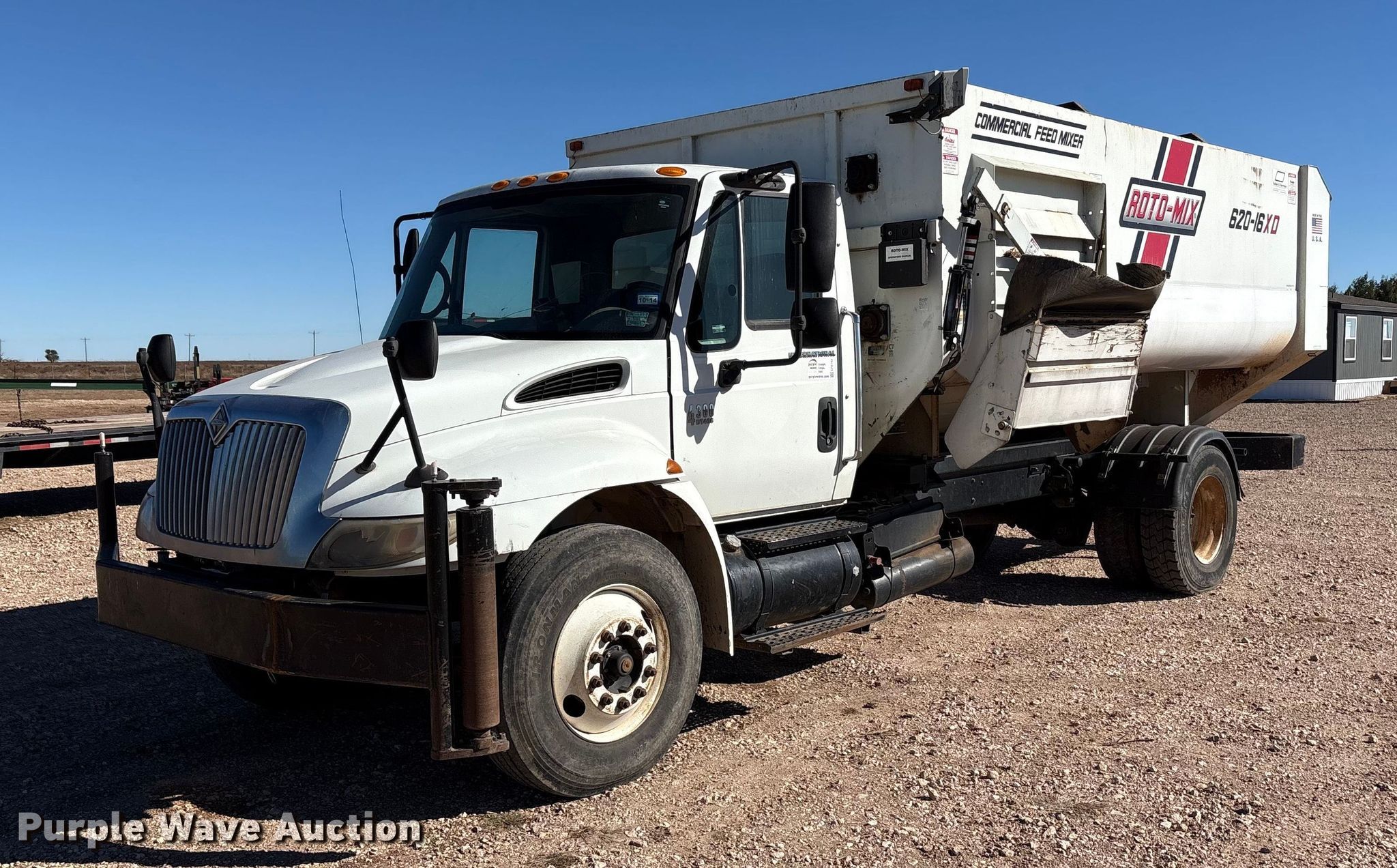 2007 International 4300 feed mixer truck. Miles: 321,990 on odometer, VIN: 1HTMMAANX7H493898. Engine International DT466, Displacement: 7.64L, Cylinders: 6, Fuel type: Diesel. Transmission International, Manual, Speed: 7. Chassis Axles: Single, Suspension: Spring, Brakes: Air. Interior AC, Heat. Features Feed mixer bed 2013 Roto-mix 620-16, In-cab controls, Scales Digi Star 30KCT, Discharge: Side Width: 48", Chute: Hydraulic, Door: Hydraulic. Tires Size: 11R22.5. Notes Dash warning indicator: Check engine, Traction control, Windshield chipped or cracked. Texas title. Title distribution may be delayed up to 30 days from verification of funds. Hereford, TX 79045
