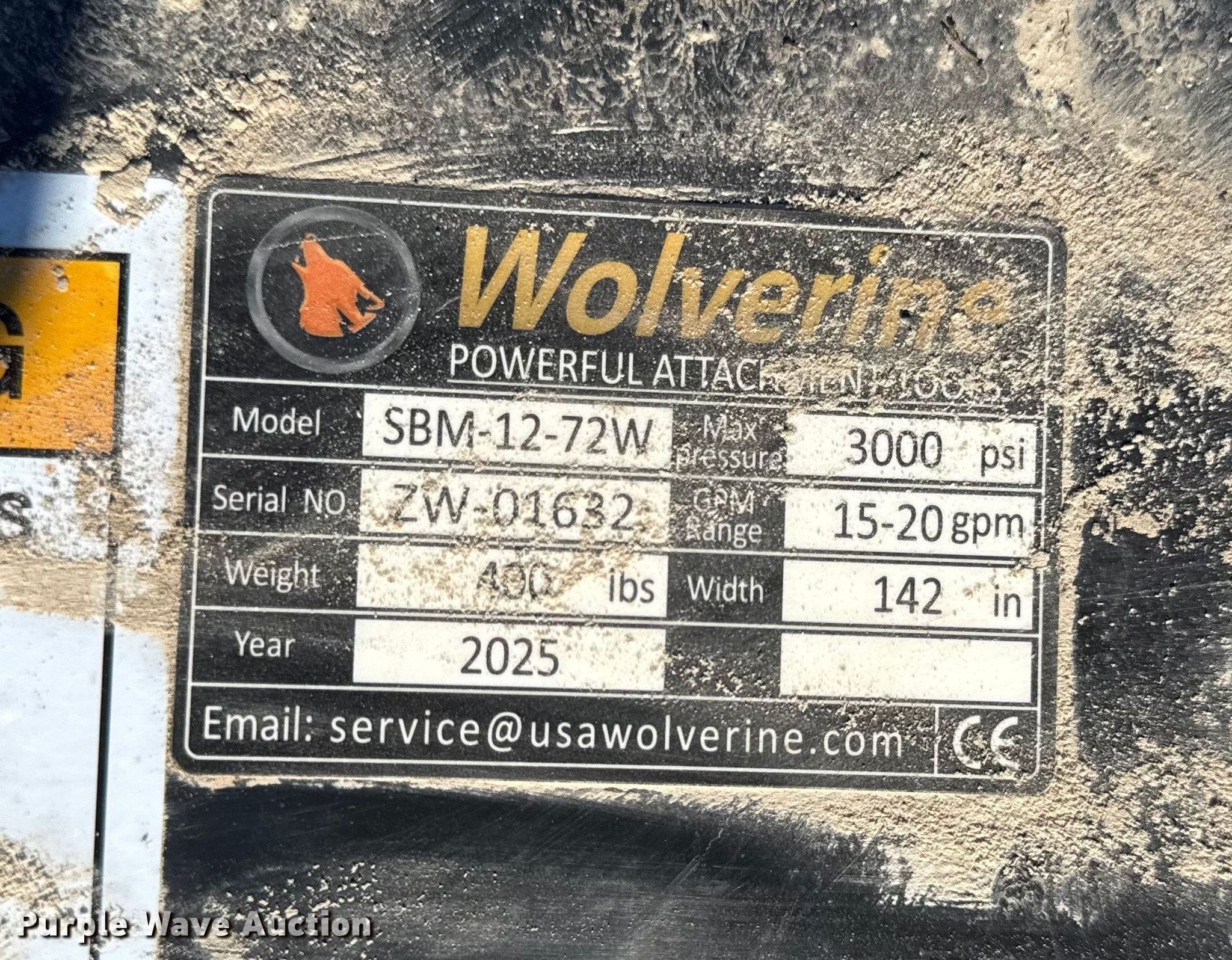 Purple Wave is selling a used Skid Steer Attach. in Kansas. This item is a 2025 Wolverine SBM-12-72W skid steer sickle mower with the following: Serial: ZW-01632, Width: 72"