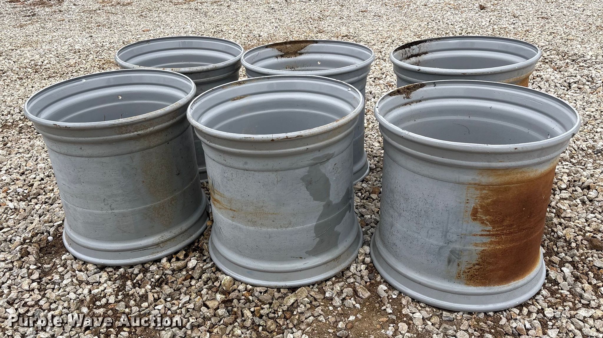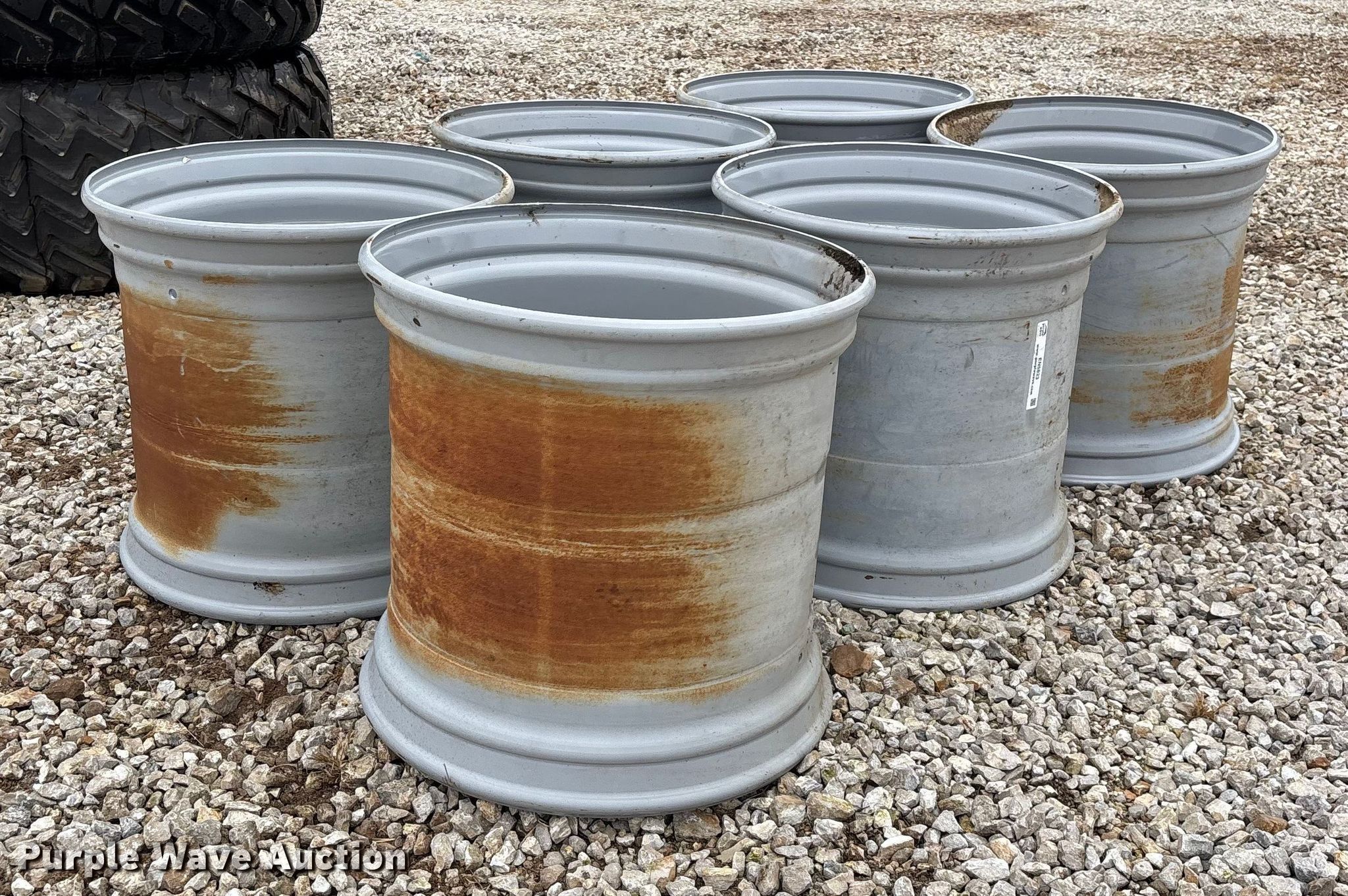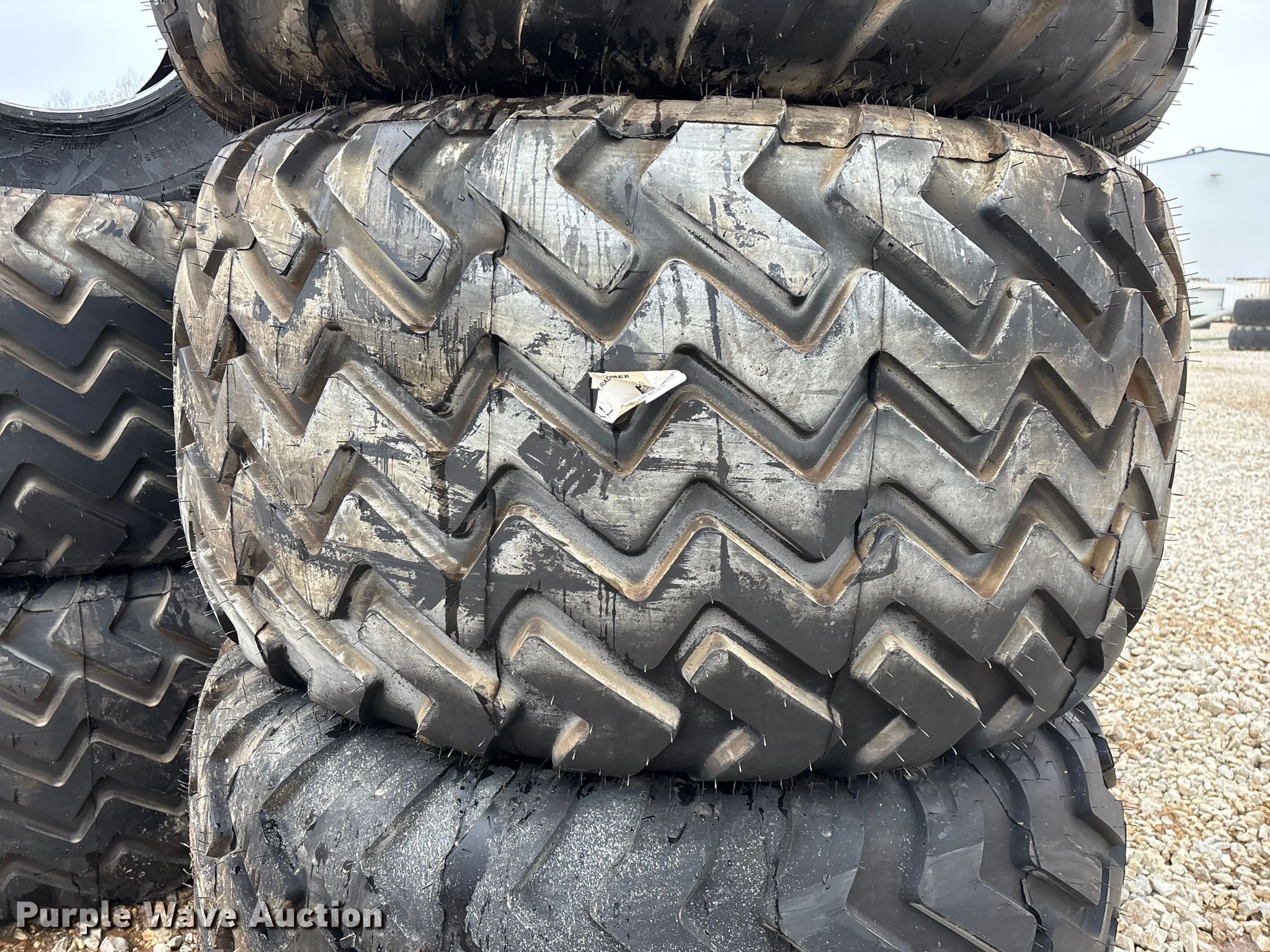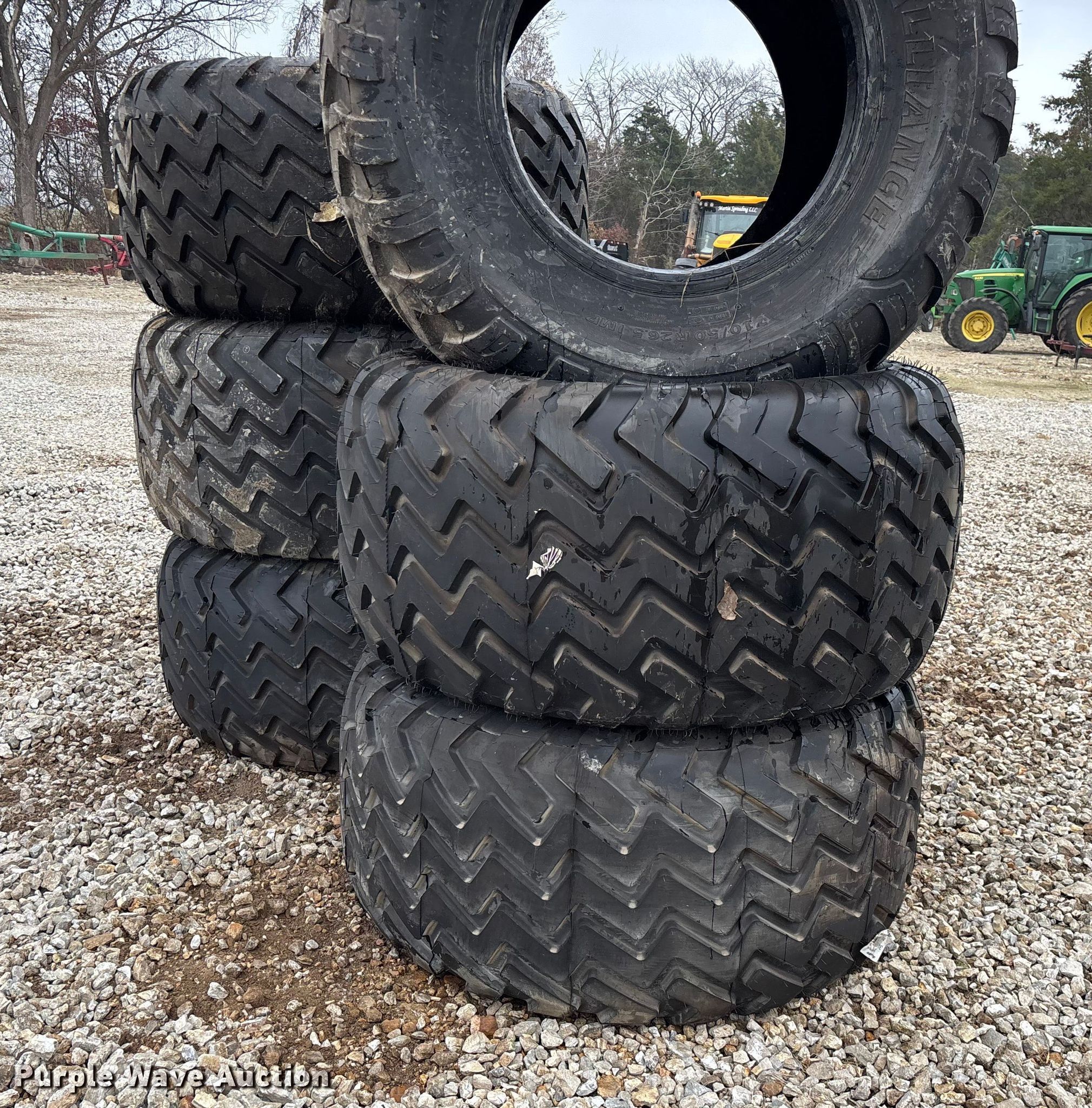 Purple Wave is selling a used Industrial Tires or Tracks in Missouri. This item is a Tires and wheels with the following: (6) 26.5xAG24.00TH2 Metro wheels, (6) Alliance 710/50R26.5 IMP Flotmaster 381 tires, Unused