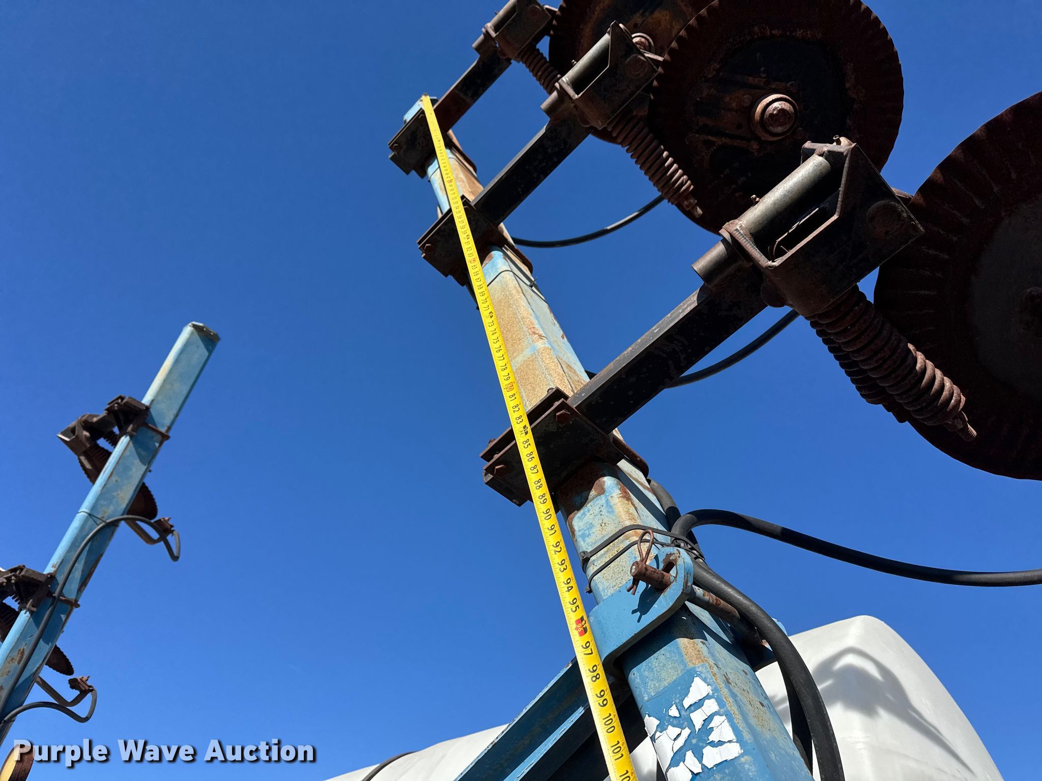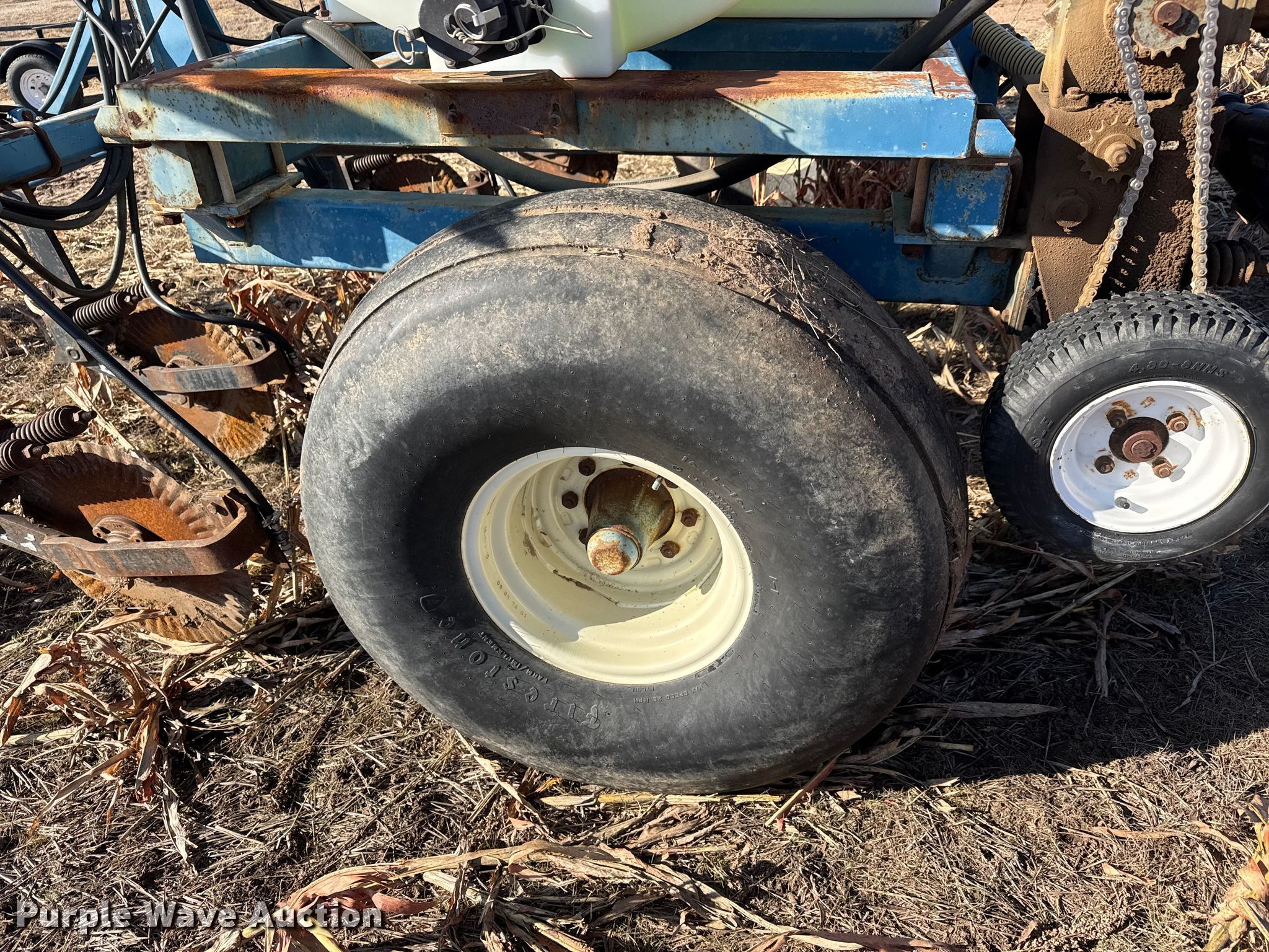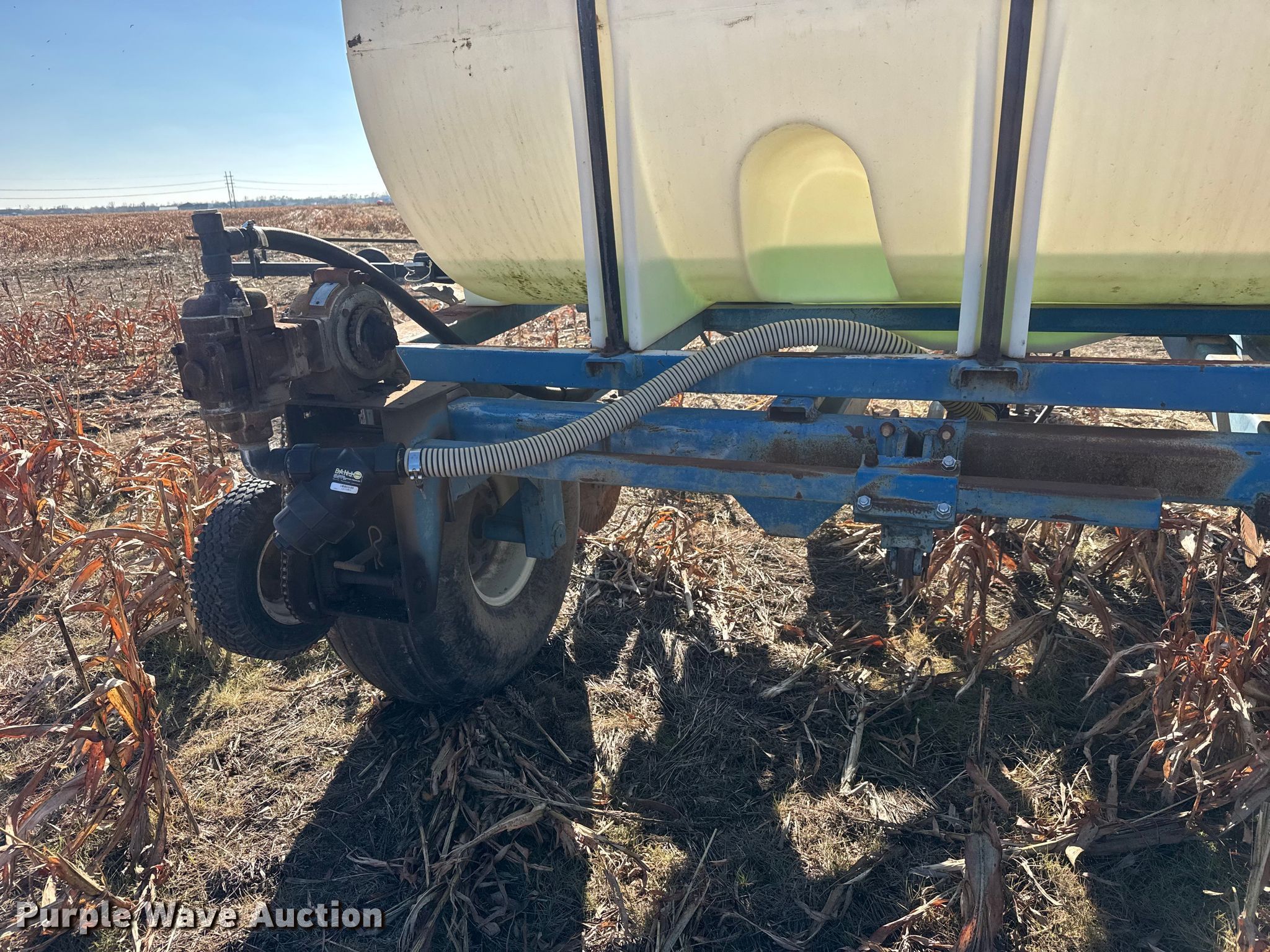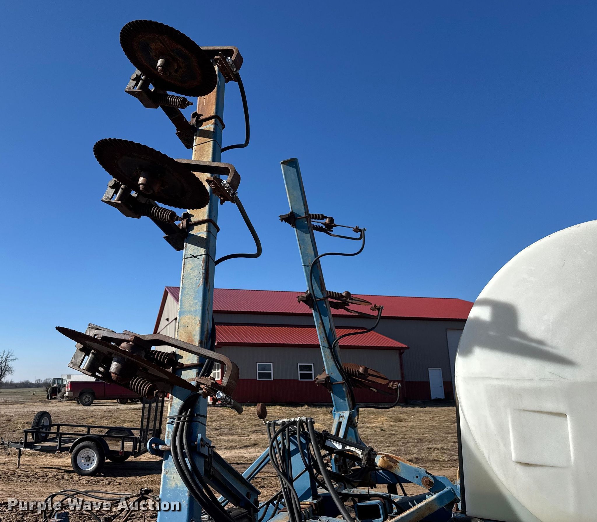 Purple Wave is selling a used Applicator Pull Type in Kansas. This item is a Ag Systems 6000 liquid fertilizer applicator with the following: Liquid/nh3 applicator, Width: Approx. 28', Rows: 11, Spacing: 30", Delivery type: Direct injection, Tank capacity: 750 gallons, Pump, CDS-John Blue LM4455, Type: Ground drive,
