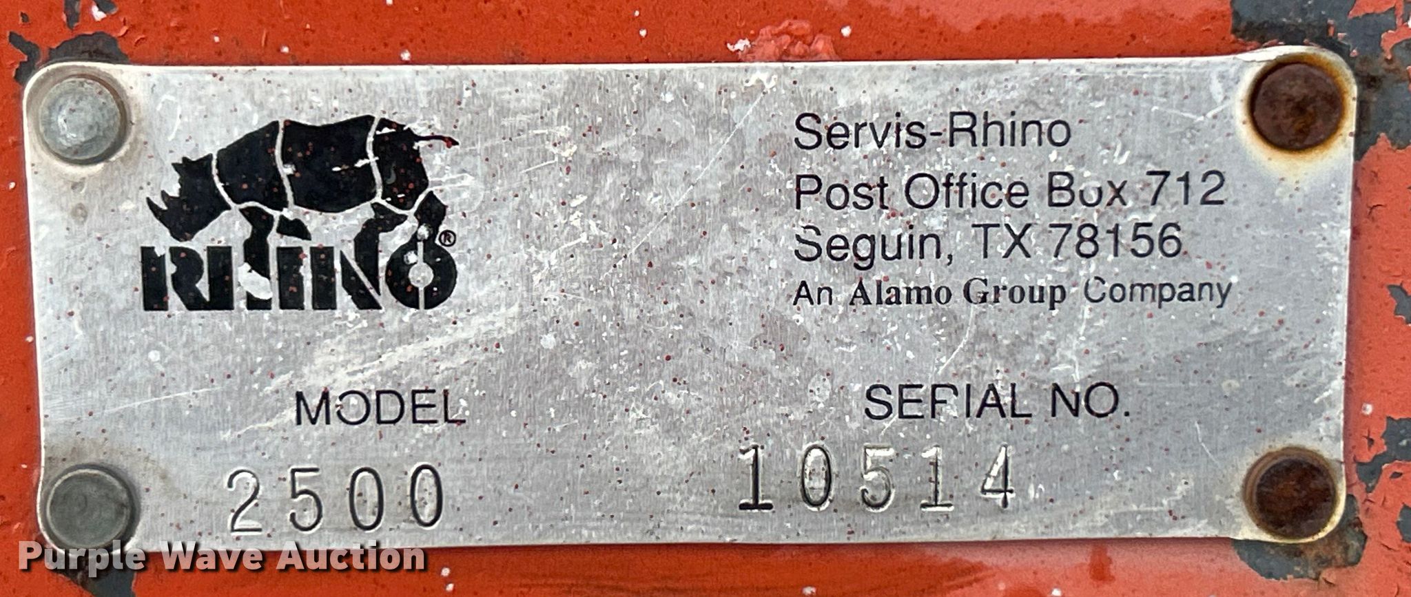 Purple Wave is selling a used Ag Tractor Loader or Attach. in Indiana. This item is a Rhino 2500 blade with the following: Serial: 10514, Unit #: 10023C