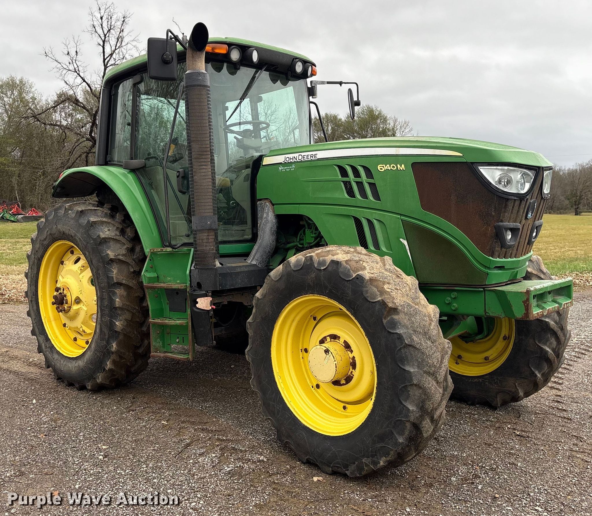 Purple Wave is selling a used Tractor in Oklahoma. This item is a 2014 John Deere 6140M MFWD tractor with the following: Hours: Unknown, Serial: 1L06140MCEG805765