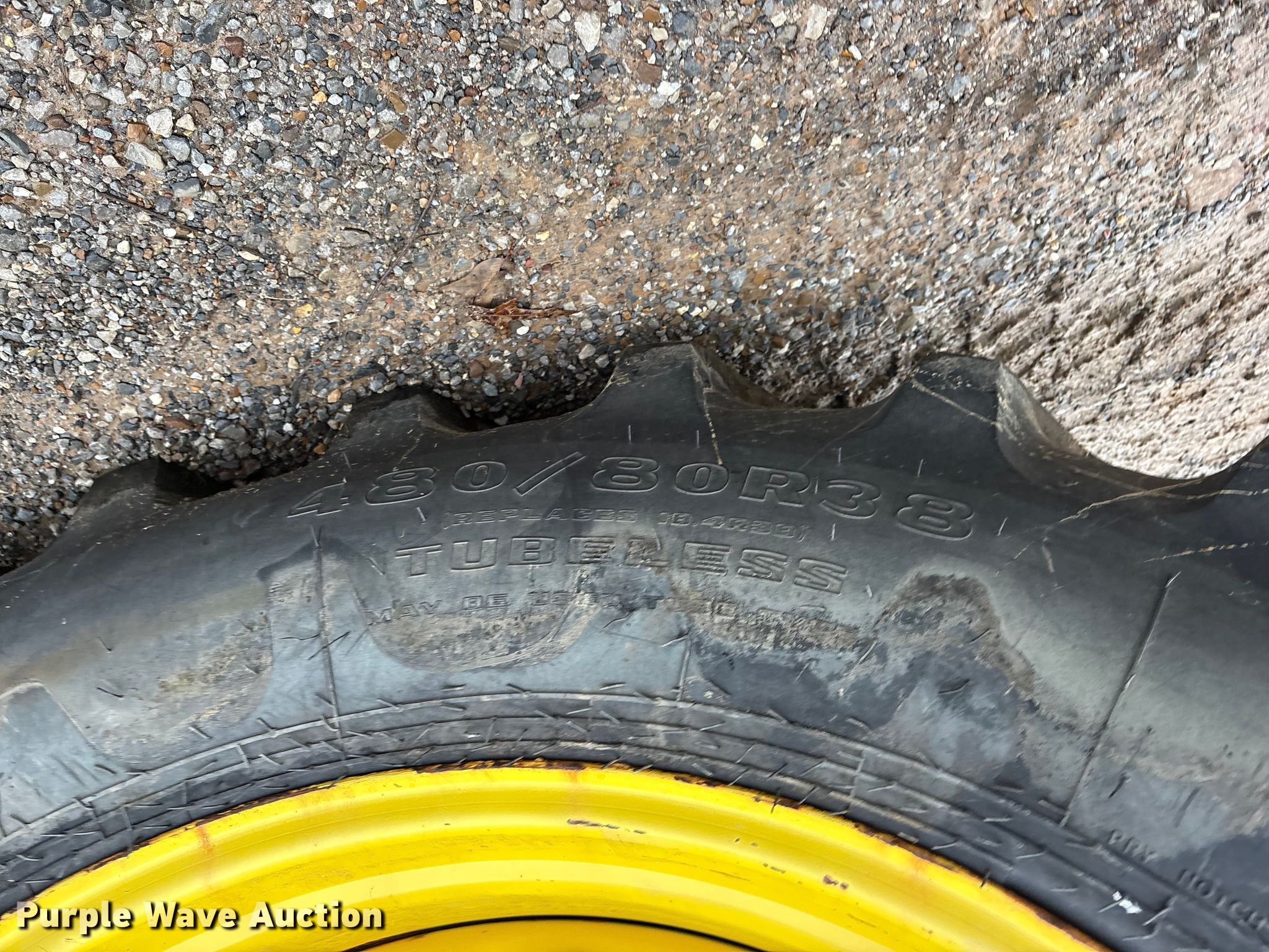 2014 John Deere 6140M MFWD tractor. Hours: Unknown, Serial: 1L06140MCEG805765. Engine John Deere, Cylinders: 4, Fuel type: Diesel. Transmission Powershift, 24F - 24R, Left-hand reverser, Differential lock. Operators station AC, Heat. Features PTO: 540, Three point Top link, Seven pin outlet, Hydraulic remote sets Rear: 3. Tires Front: 380/85R30, Rear: 480/80RR38. Notes Dash display issues, Transmission issues. J&D Used Equipment. Red Oak, OK 74563