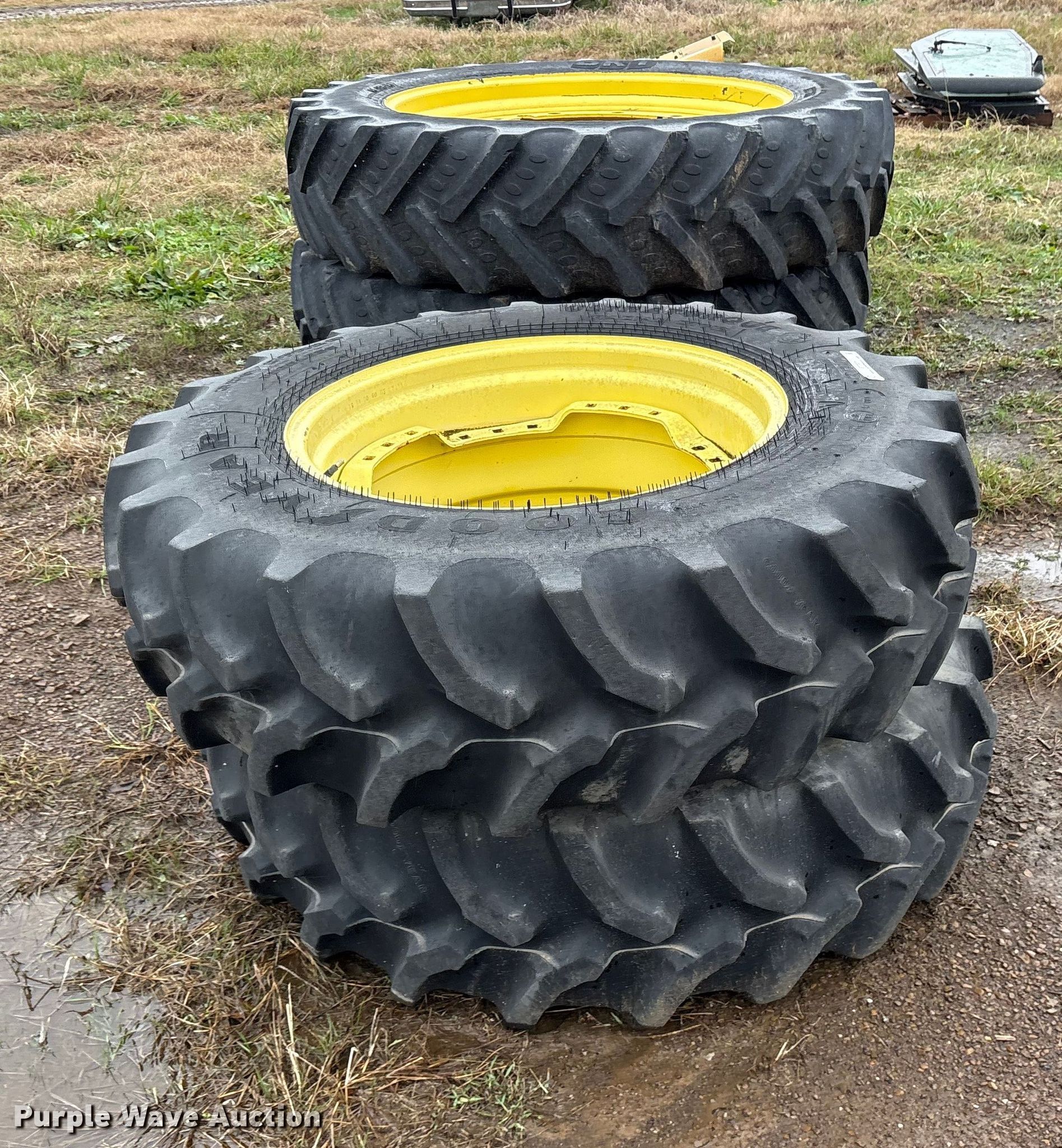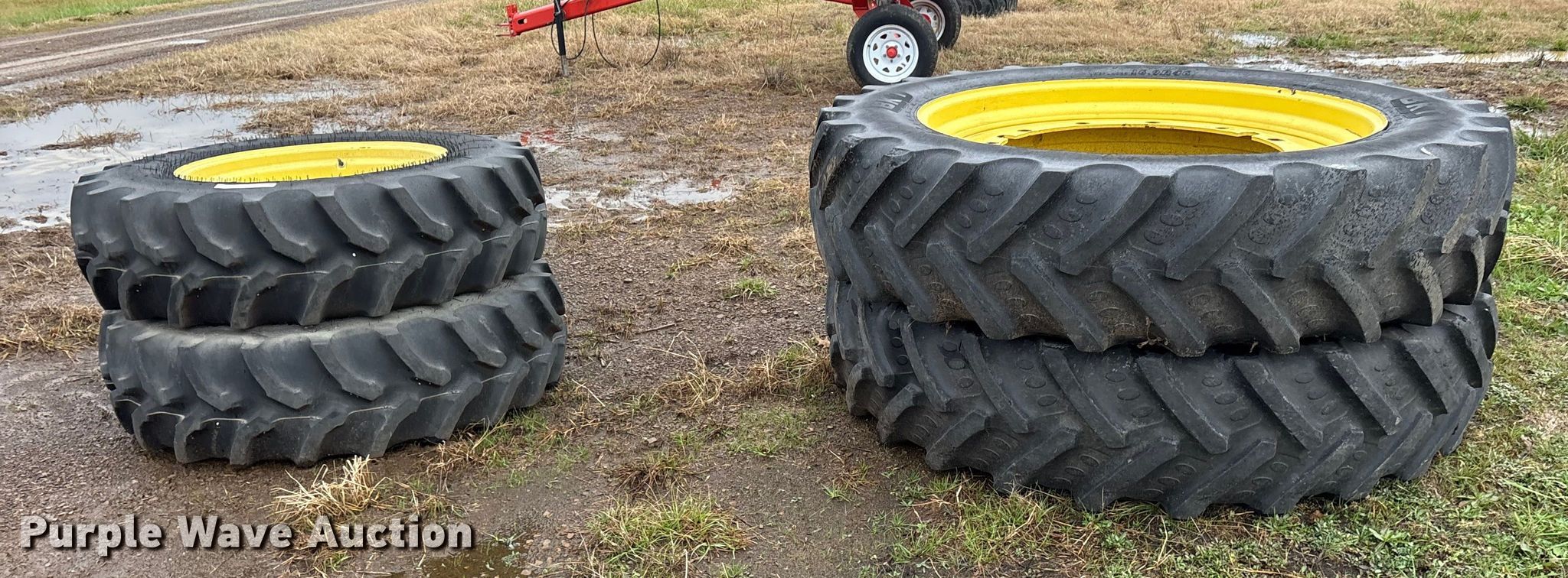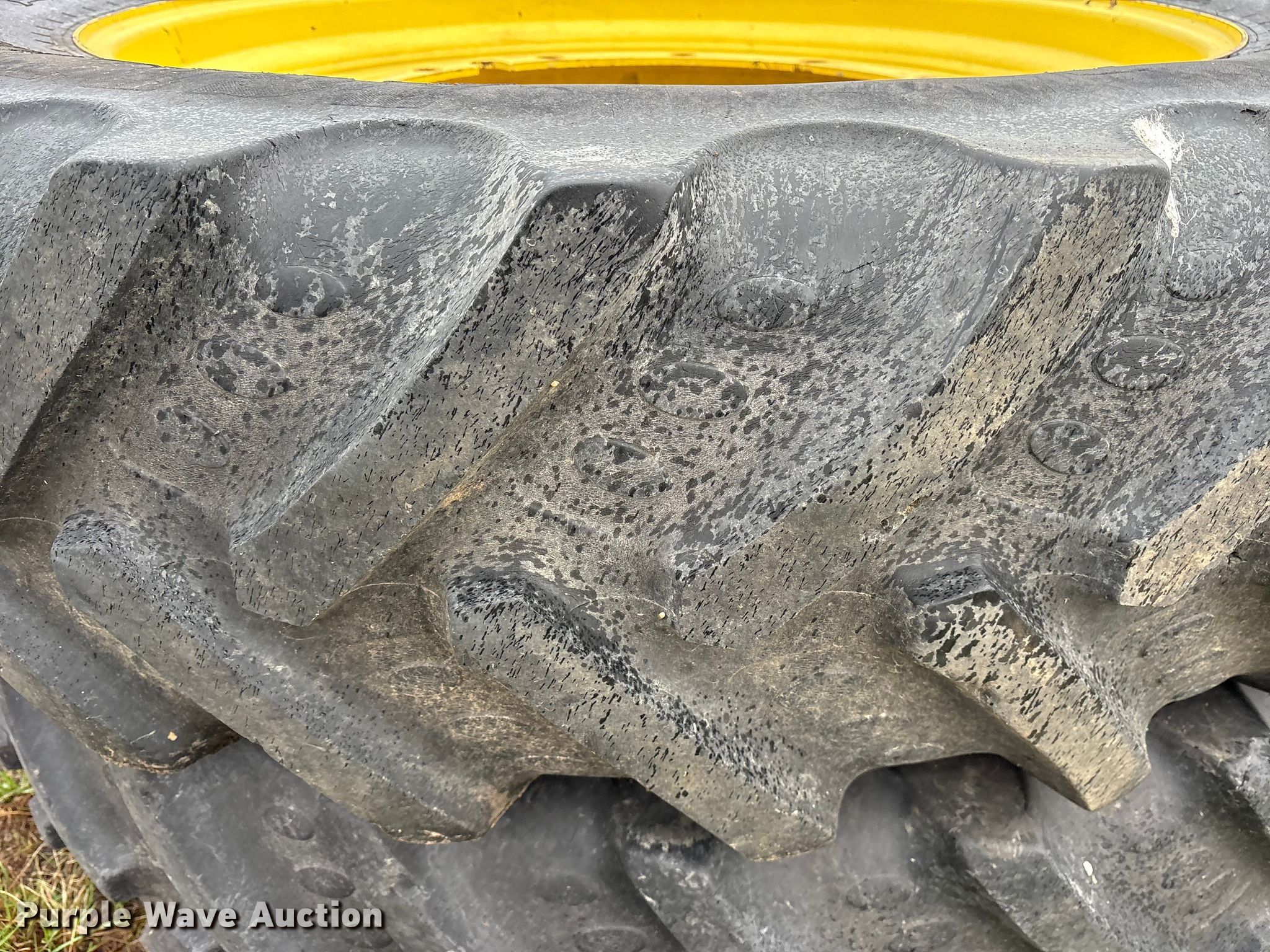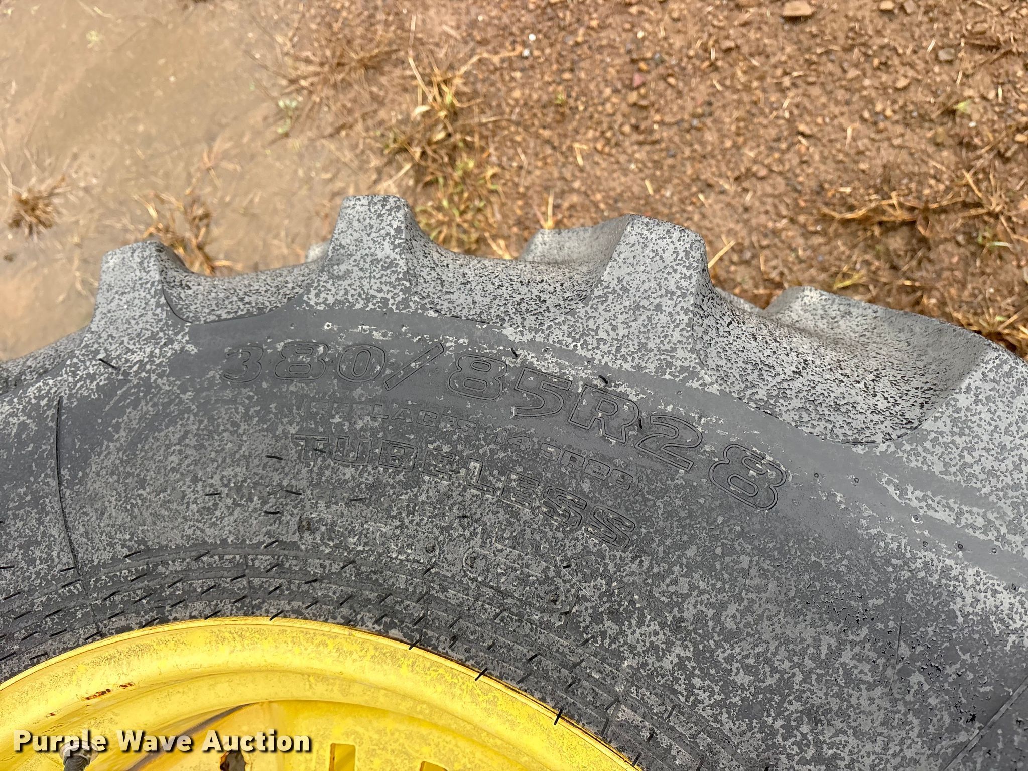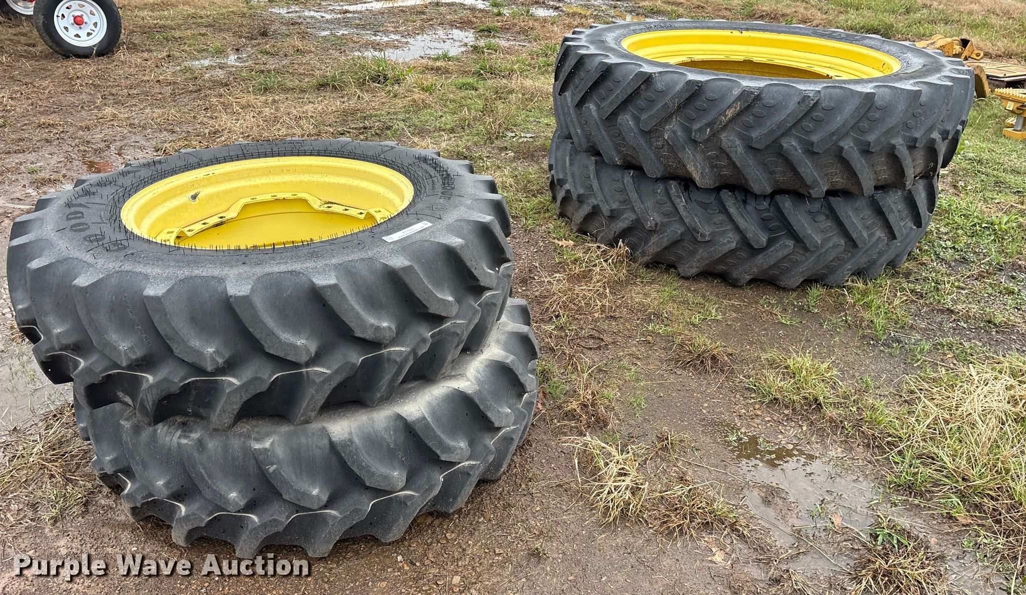 (4) tires and wheels. (2) 389/85R28, (2) 16.9R46. J&D Used Equipment. Red Oak, OK 74563