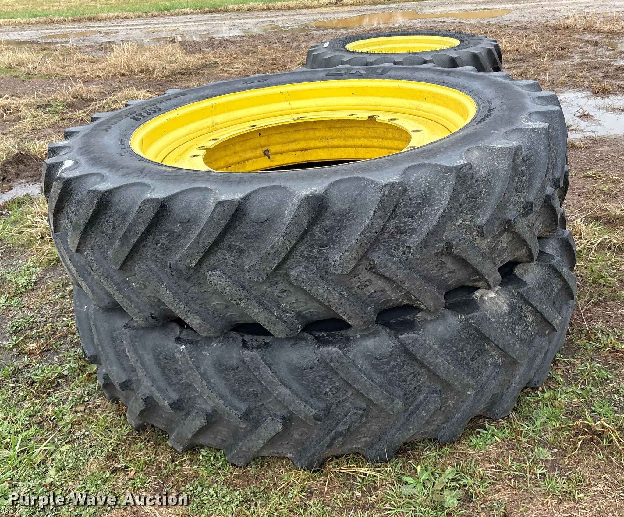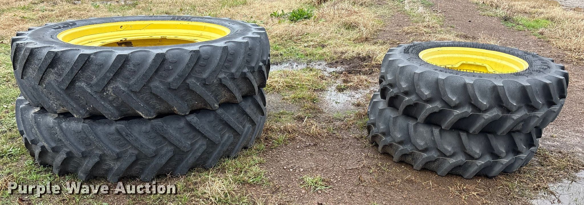 Purple Wave is selling a used Industrial Tires or Tracks in Oklahoma. This item is a (4) tires and wheels with the following: (2) 389/85R28, (2) 16.9R46