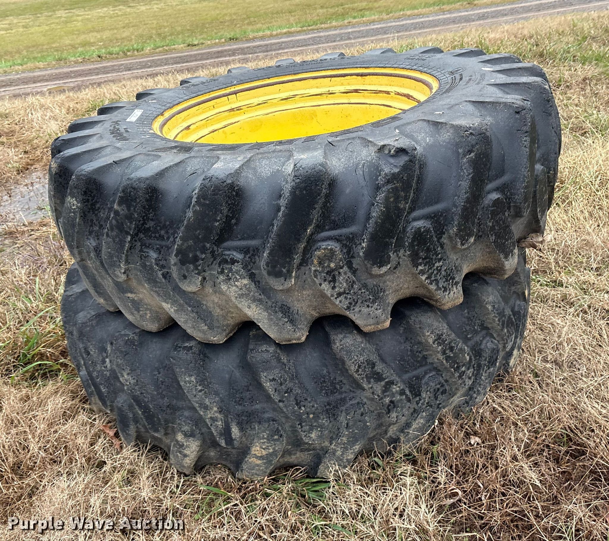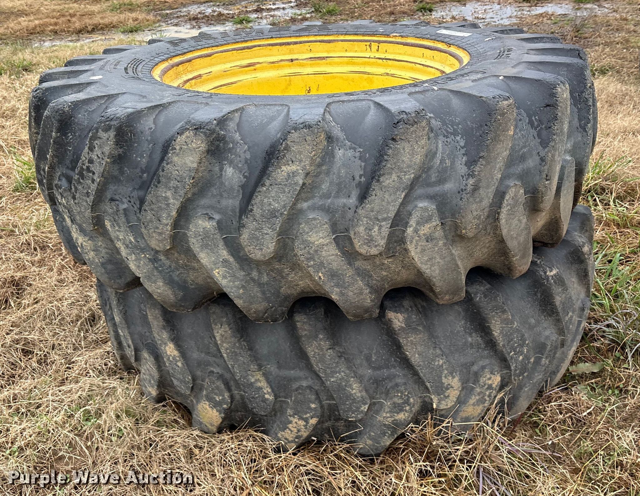 (2) PrimeX 460/85-34 tires and wheels for sale in Red Oak, Oklahoma. Item ET7333 will sell on December 30th, 2025.