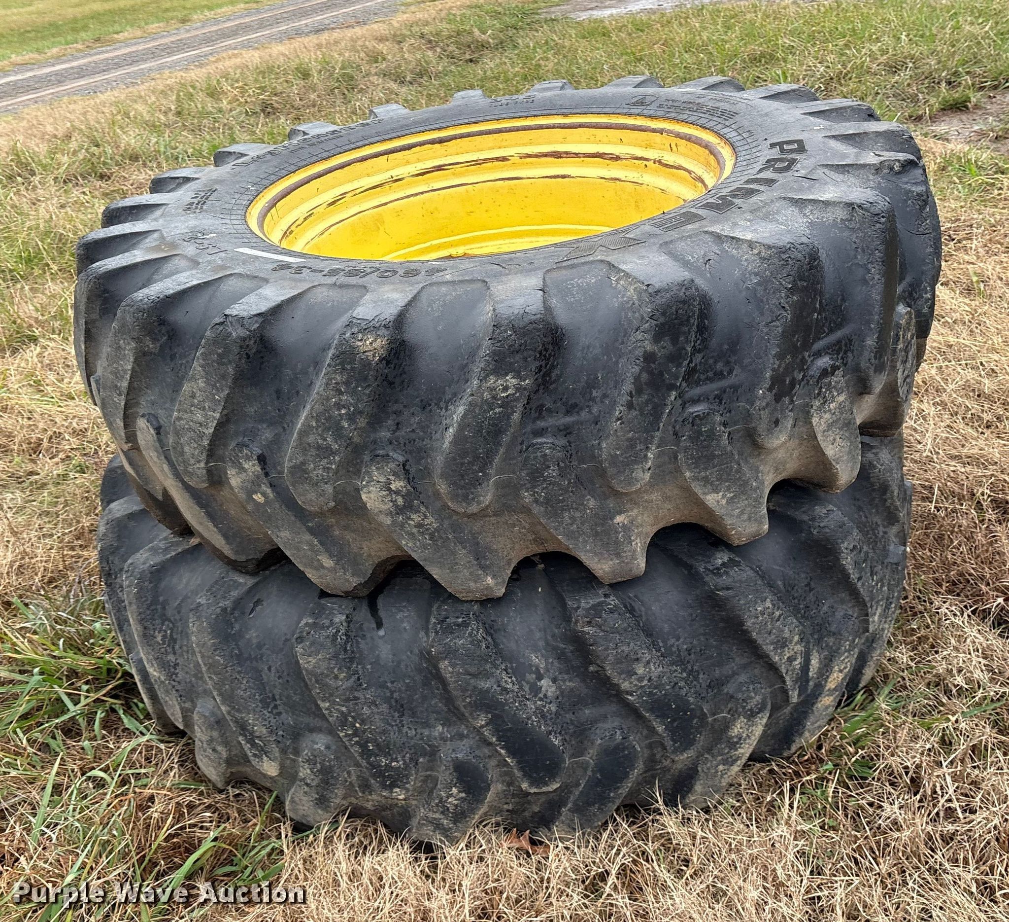 Purple Wave is selling a used Industrial Tires or Tracks in Oklahoma. This item is a (2) PrimeX 460/85-34 tires and wheels with the following: Removed from a 6430 John Deere