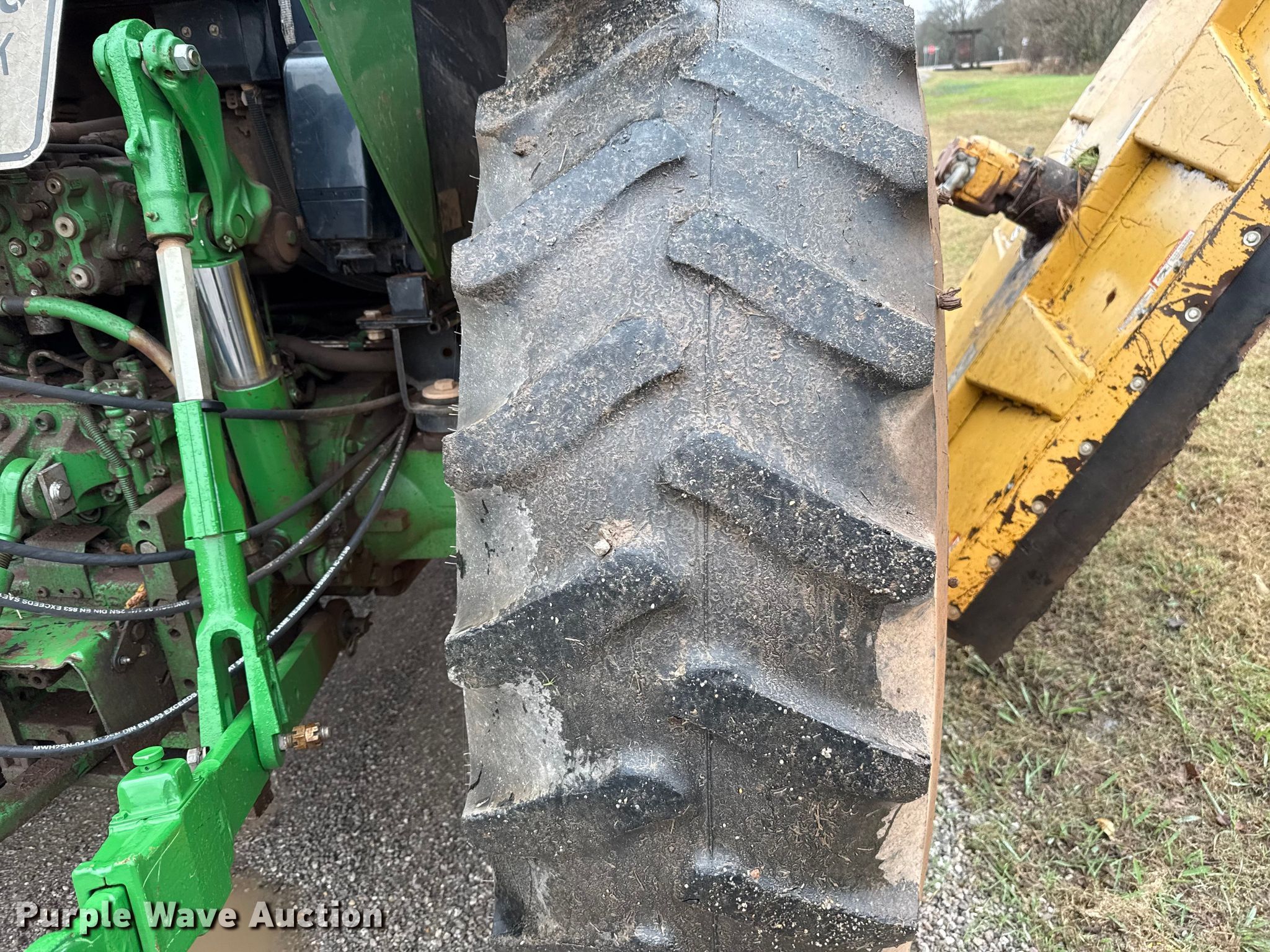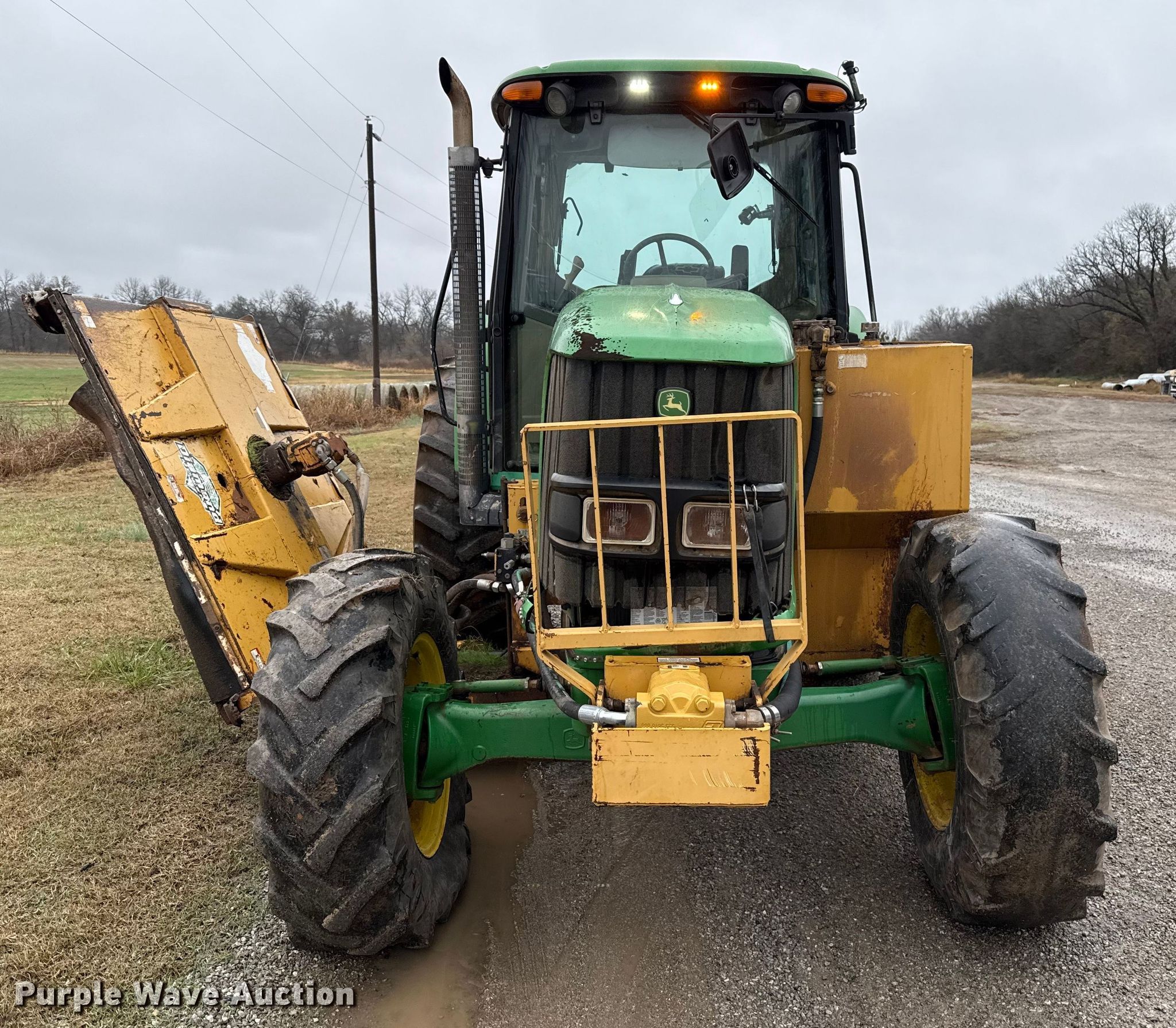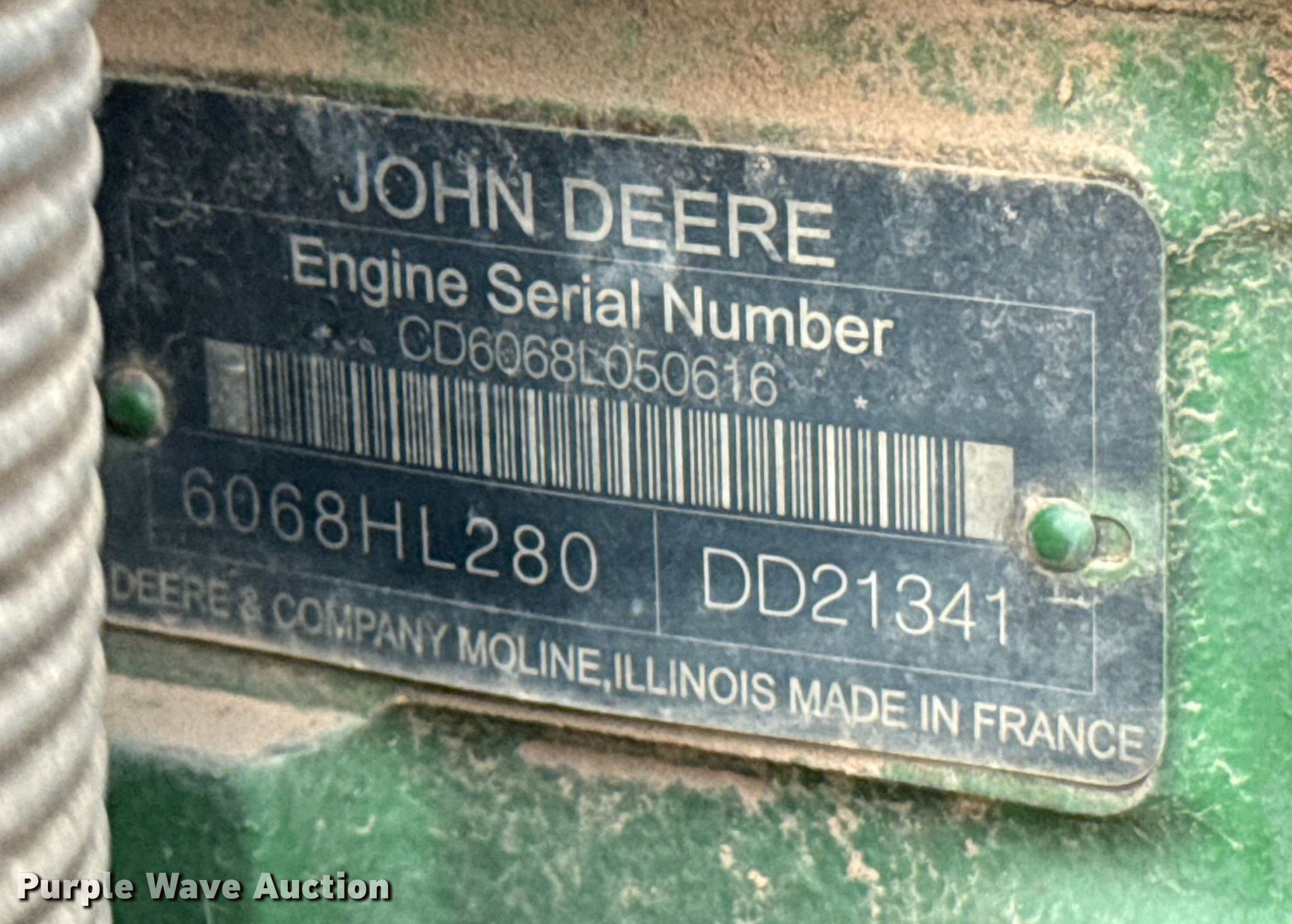 2009 John Deere 7130 MFWD tractor. Hours: Unknown, Serial: L07130H568684. Engine John Deere 6068HL280, Serial: CD6068L050616, Cylinders: 6, Fuel type: Diesel. Transmission Synchro, 16F - 16R, Left-hand reverser, Differential lock. Operators station AC, Heat. Features PTO: 540, Three point Top link, Seven pin outlet, Hydraulic remote sets Rear: 2, Diamond side boom rotary mower Width: 60". Tires Front: 14.9-24, Rear: 18.4-38, Wheel weights: 5. Notes Non-operational gauge cluster, Unknown operating condition of three point, Right front flat tire. Lincoln County District 3. Meeker, OK 74855