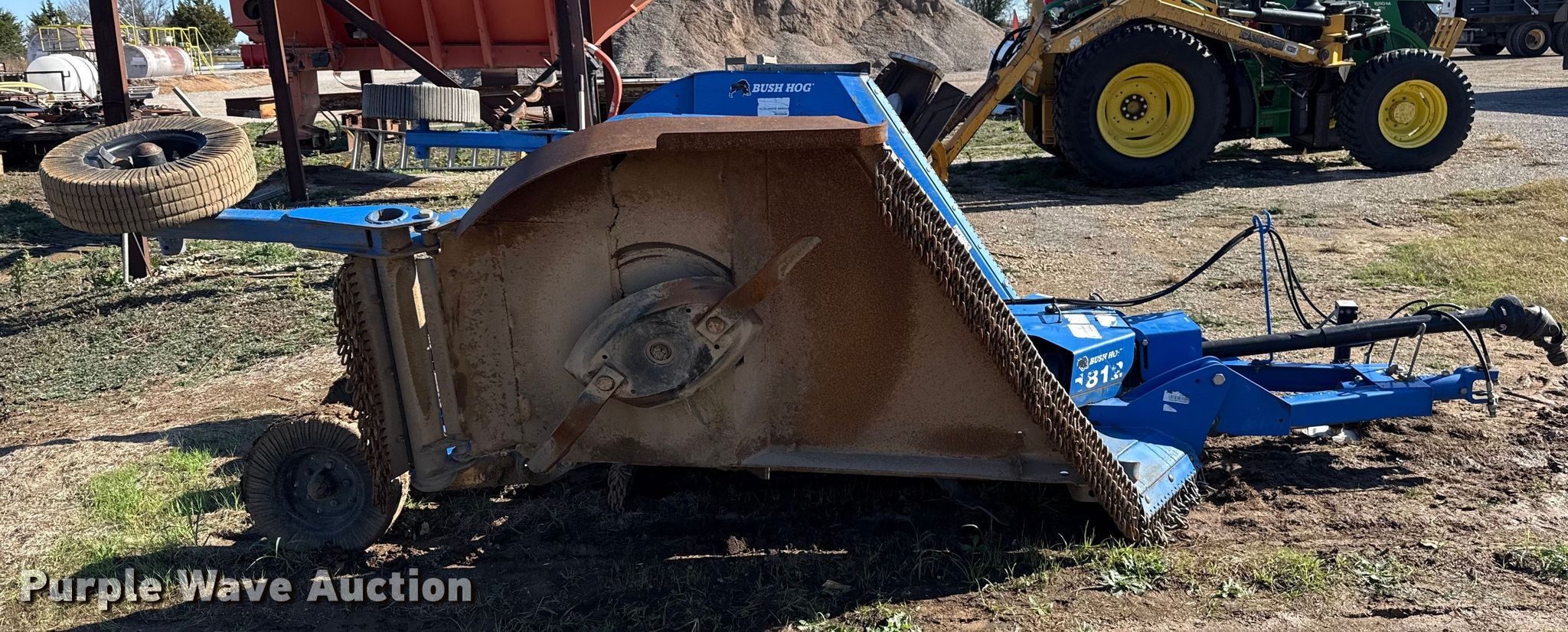 Brush Hog 1812 batwing rotary mower. Serial: 1HAVB118204024. Features Width: 12', Hydraulic lift, Hydraulic fold, PTO: 540. Tires Solid. Notes Deck plate cracked. Garvin County. Elmore City, OK 73433