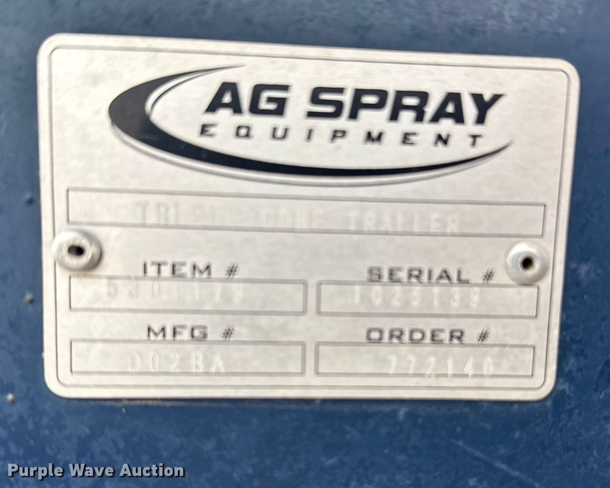 Purple Wave is selling a used Tank Trailer in Kansas. This item is a AG Spray Equipment tank trailer with the following: Serial: 1025139