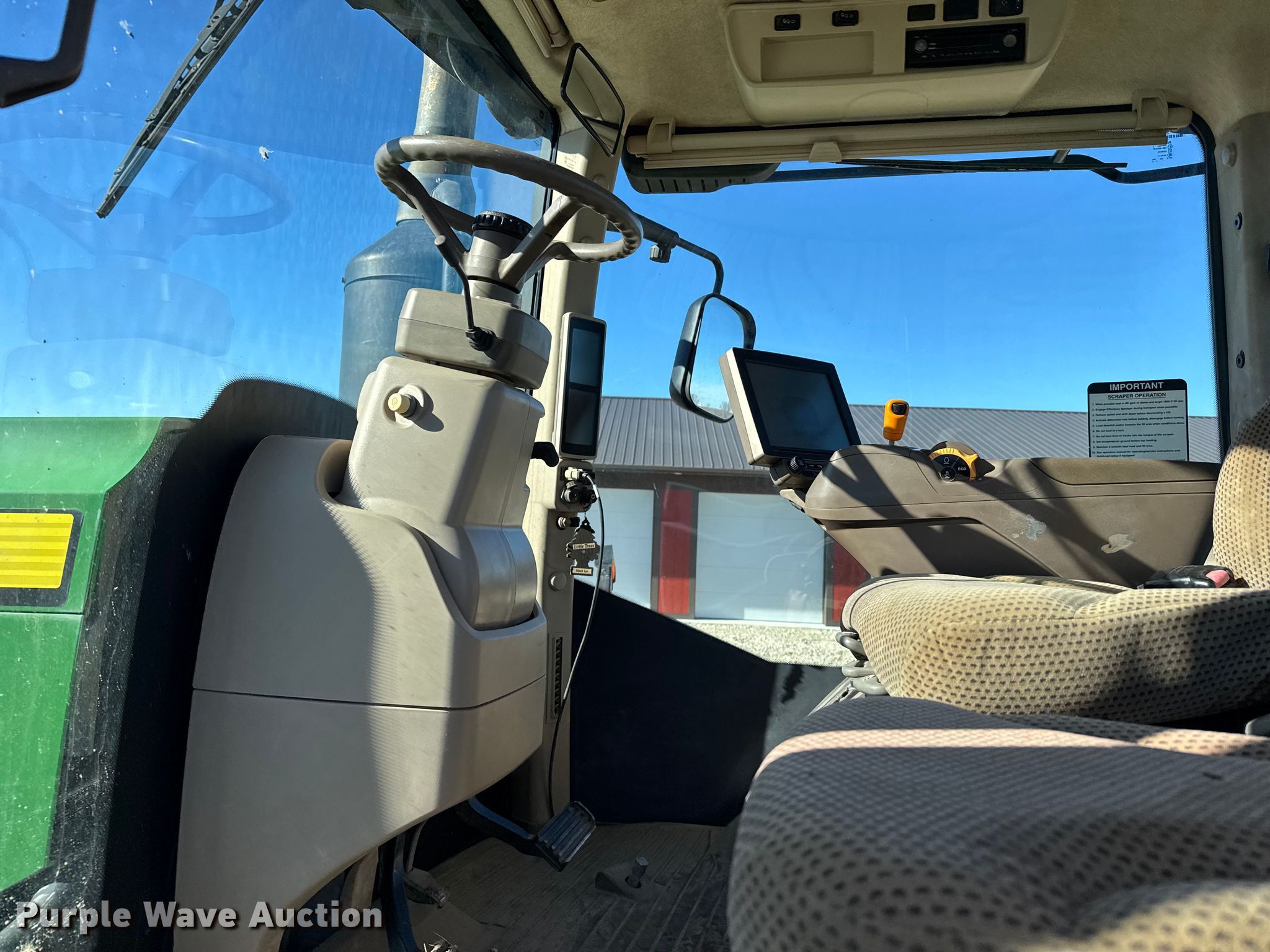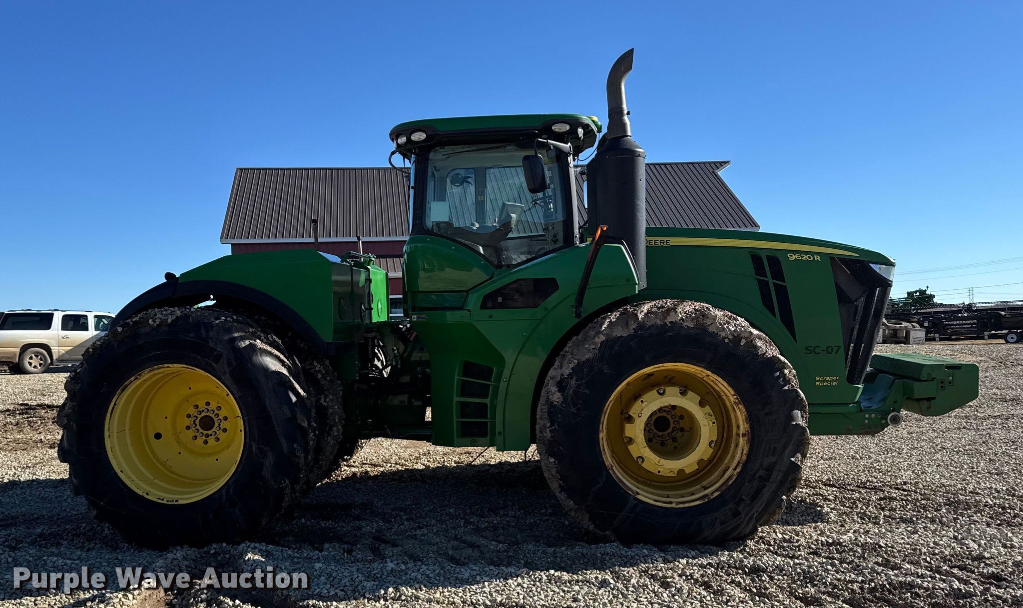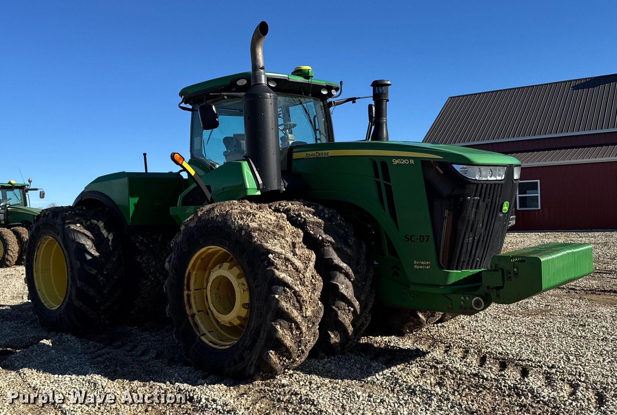 Purple Wave is selling a used Articulated 4-Wheel Drive Tractor in Kansas. This item is a 2015 John Deere 9620R Scraper Special 4WD tractor with the following: Hours: 5,856 on meter, Serial: 1RW9620REFE052031