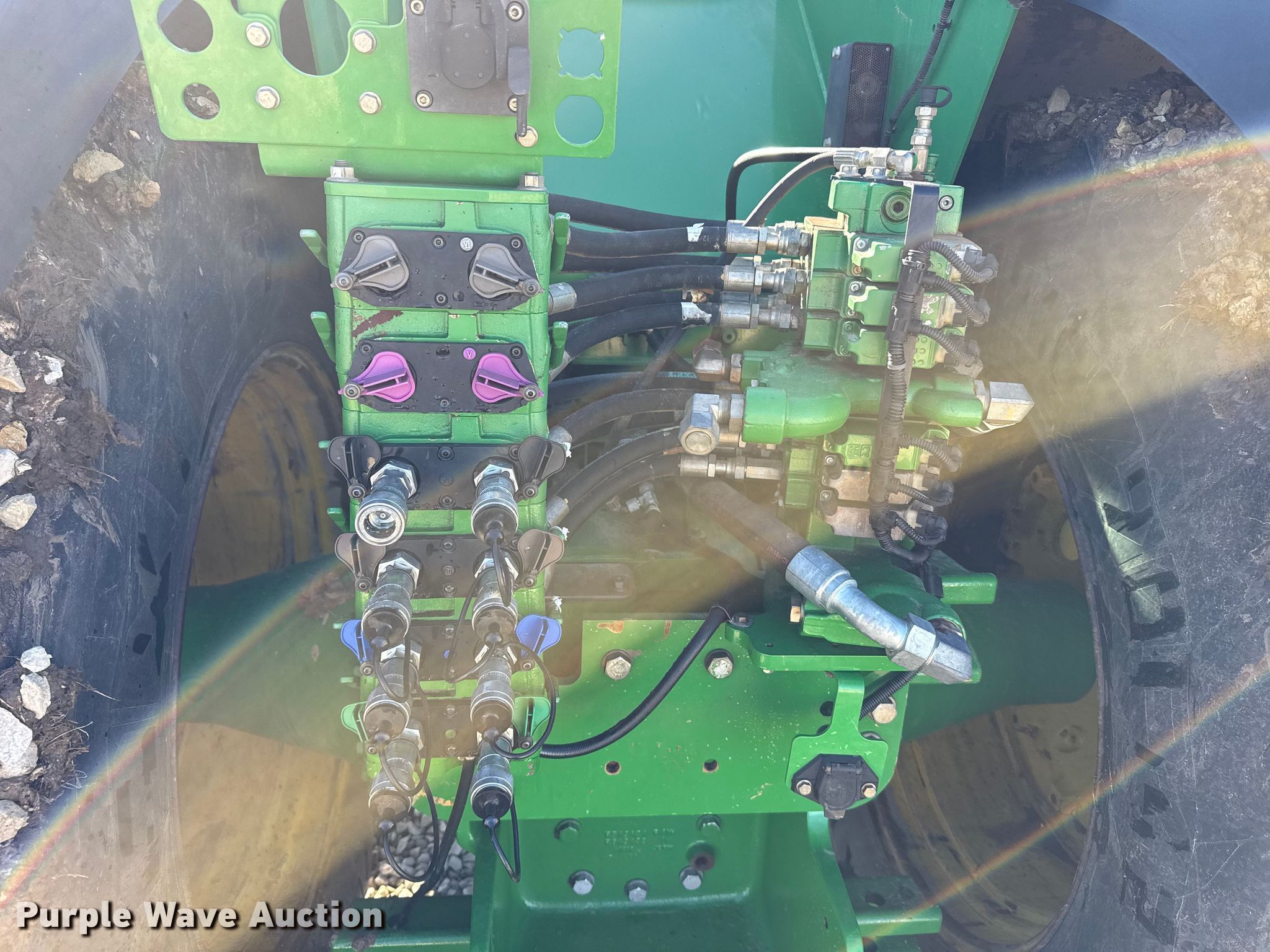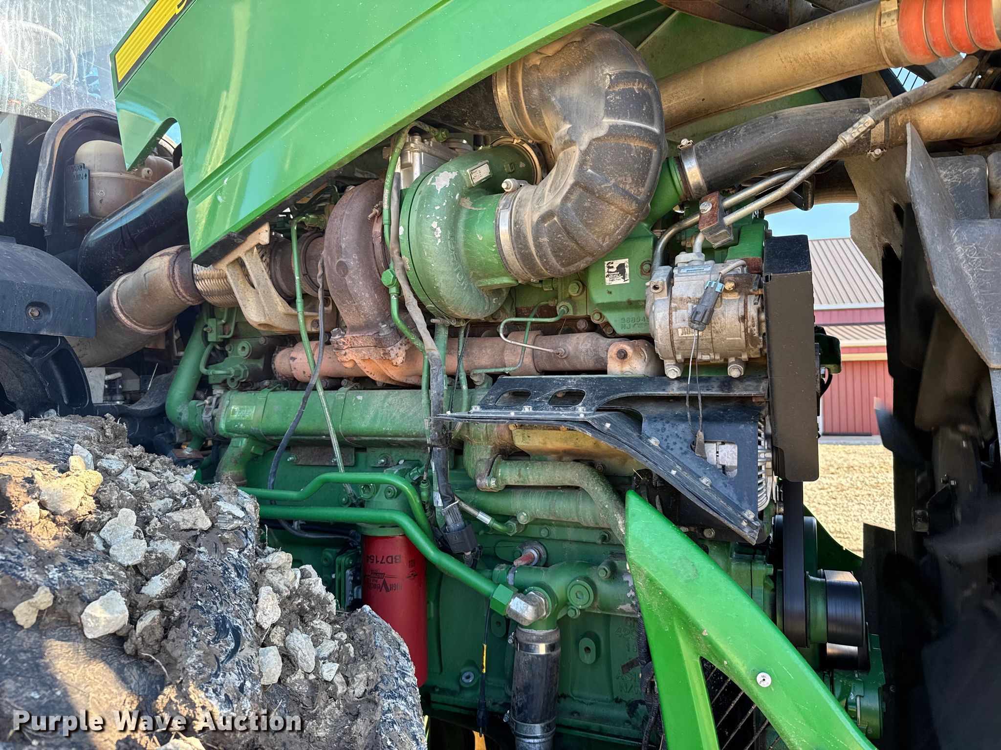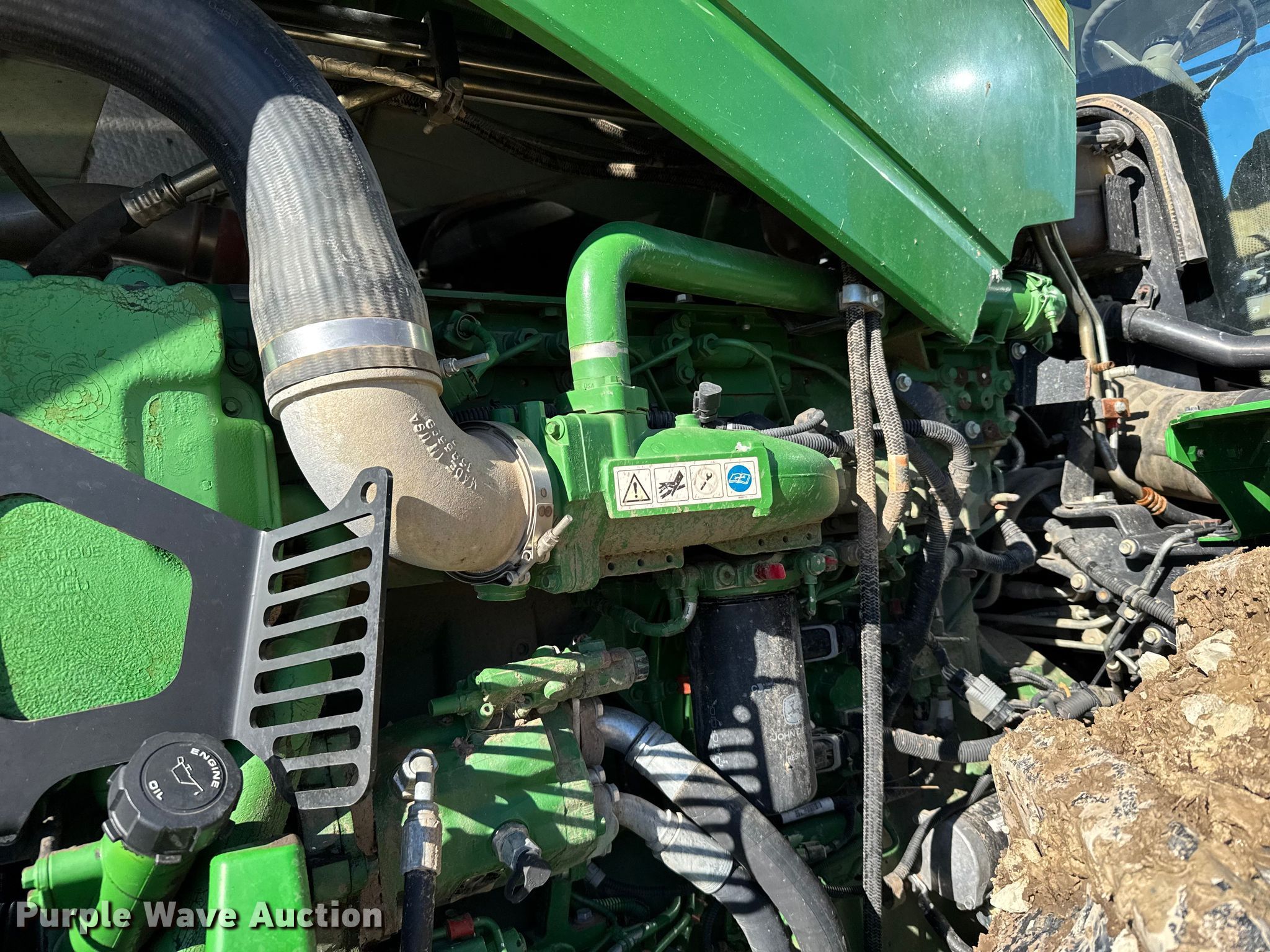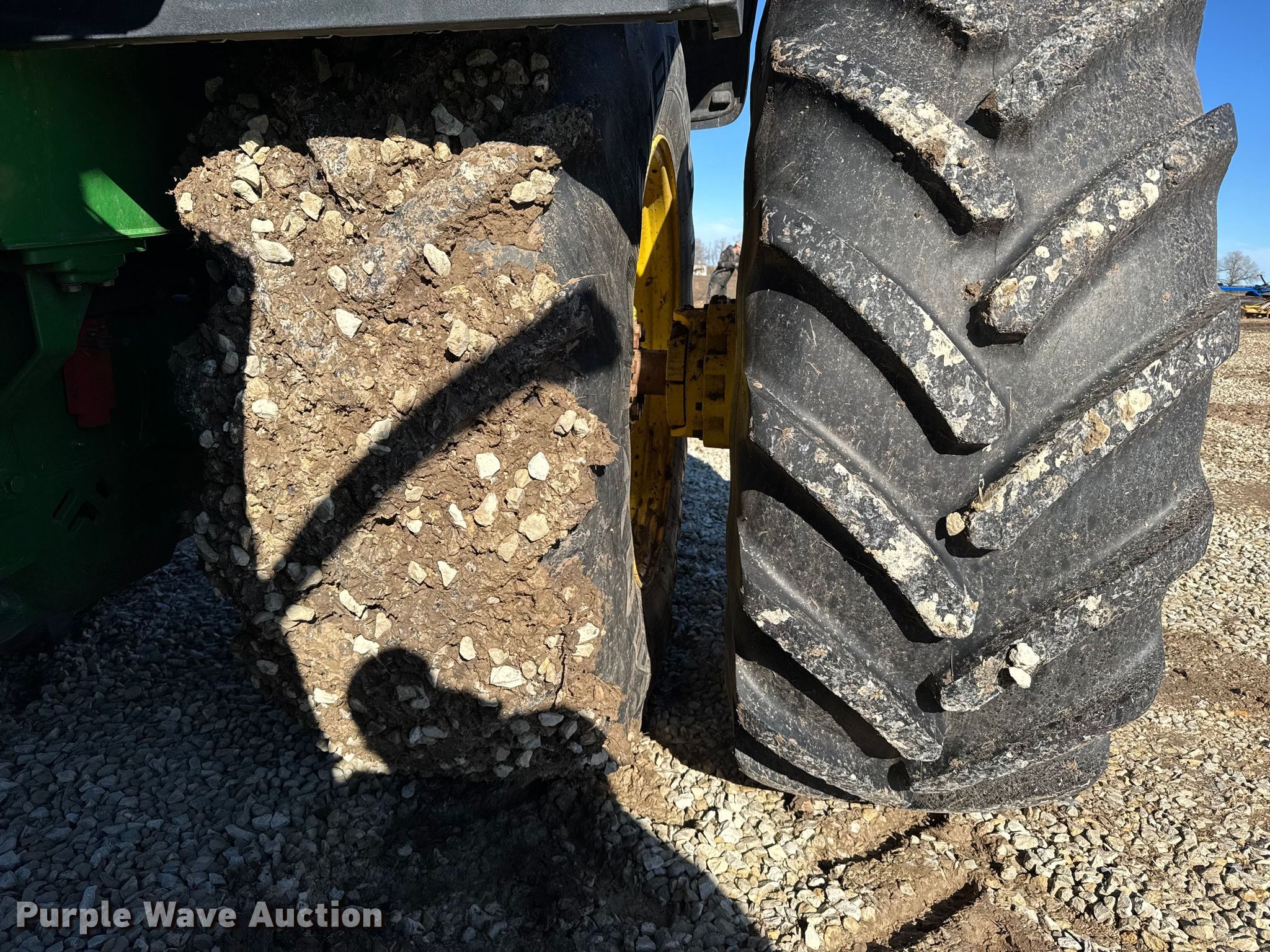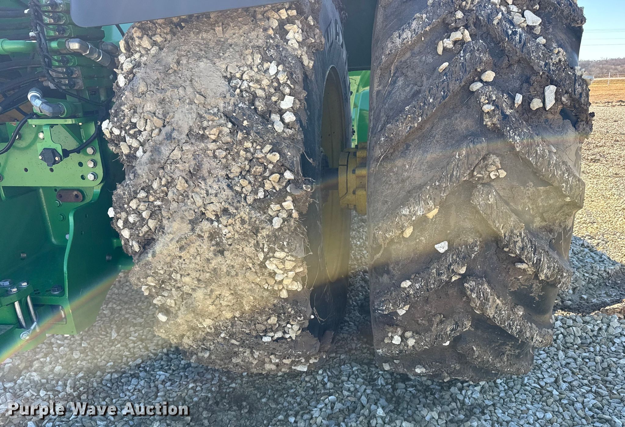 2015 John Deere 9620R Scraper Special 4WD tractor. Hours: 5,856 on meter, Serial: 1RW9620REFE052031. Engine Cylinders: 6, Fuel type: Diesel. Transmission Powershift, 18F - 6R, Differential lock. Operators station AC, Heat, GPS receiver John Deere, Display John Deere. Features Seven pin outlet, ISOBUS outlet, Hydraulic remote sets Rear: 6, Suitcase weights: 36. Tires Size: 710/79R42, Wheel weights: 6, Duals, Front duals. Notes Seller-provided outer-dual removal available upon request. Pursuant to Kansas law, Purple Wave will not be collecting sales taxes on any of the purchases made in this business liquidation auction. Ingermanson Farms-Open Inspection Wednesday December 17 and Monday December 29 from 9:00 a.m. to 3:00 p.m. 3504 East Magnolia Road. Salina, KS 67401